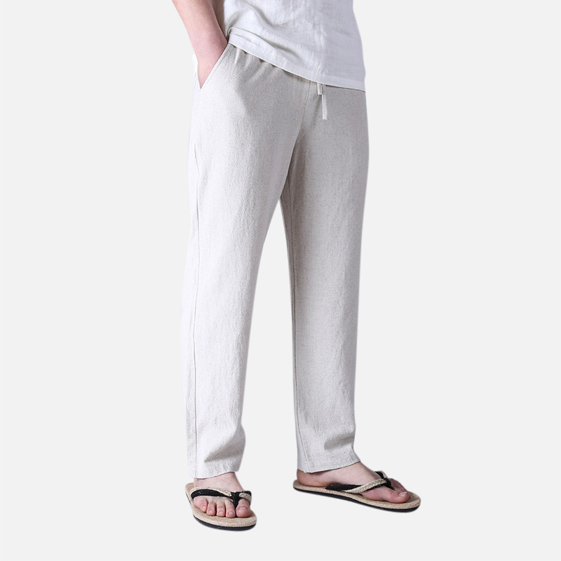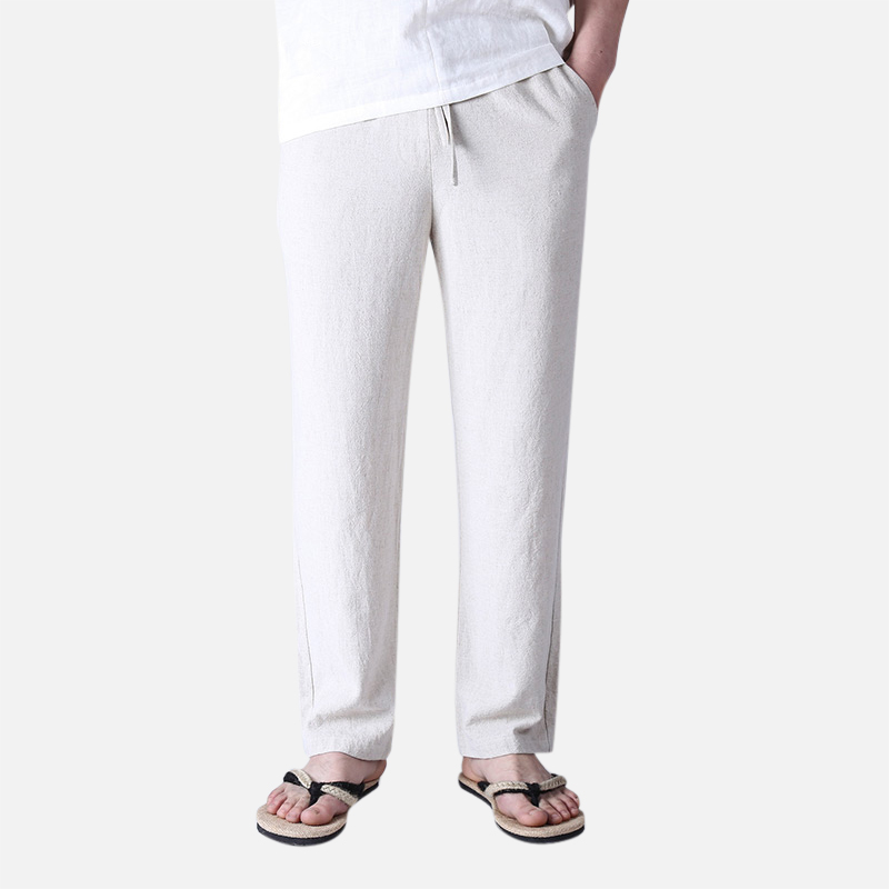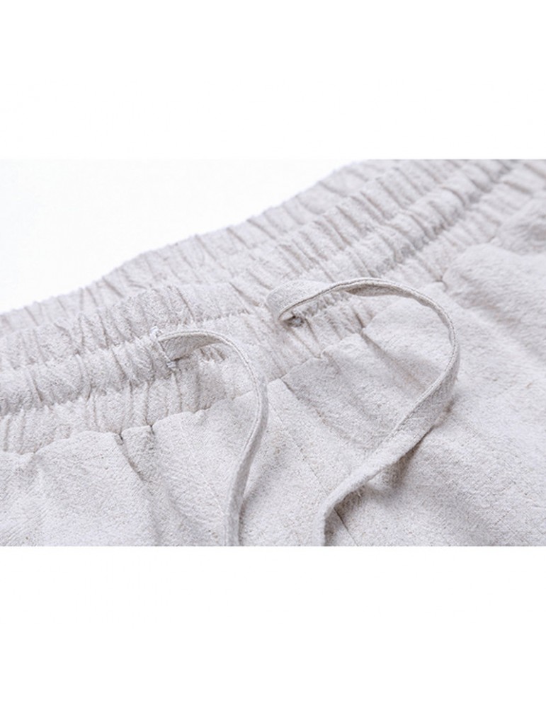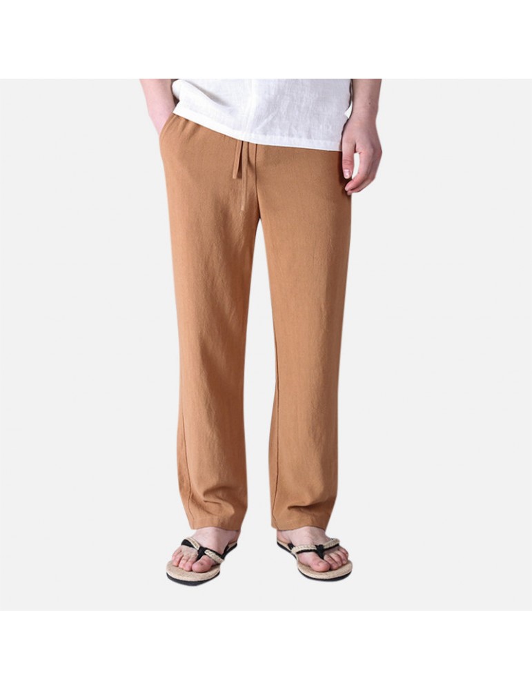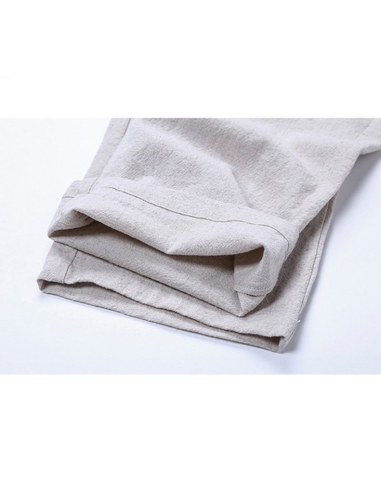 Mens Casual Loose Straight Pants Elastic Waist Retro Cotton Pants