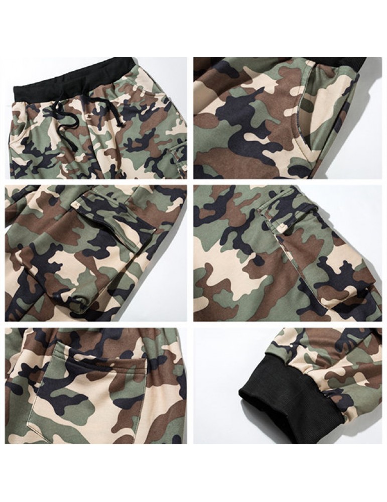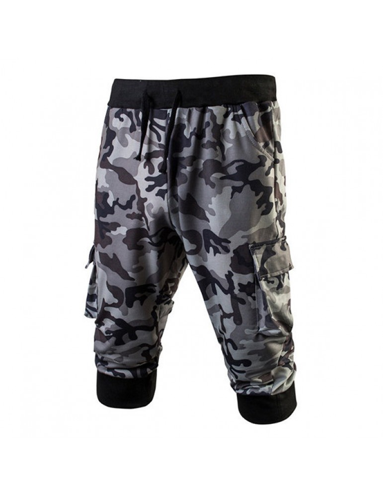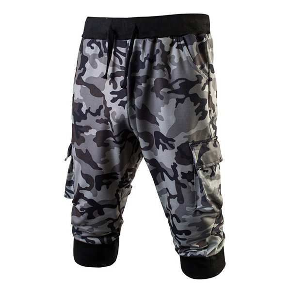 Mens Camo Printing Knitted Drawstring Zipper Pocket Casual Sport Shorts