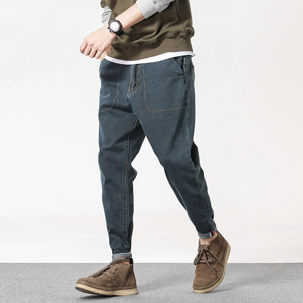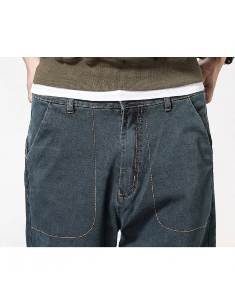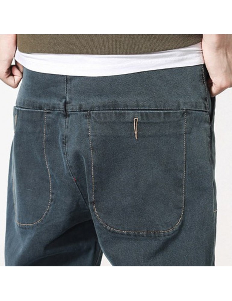 Loose Solid Color Casual Harem Pants Big Pockets Jean for Men
