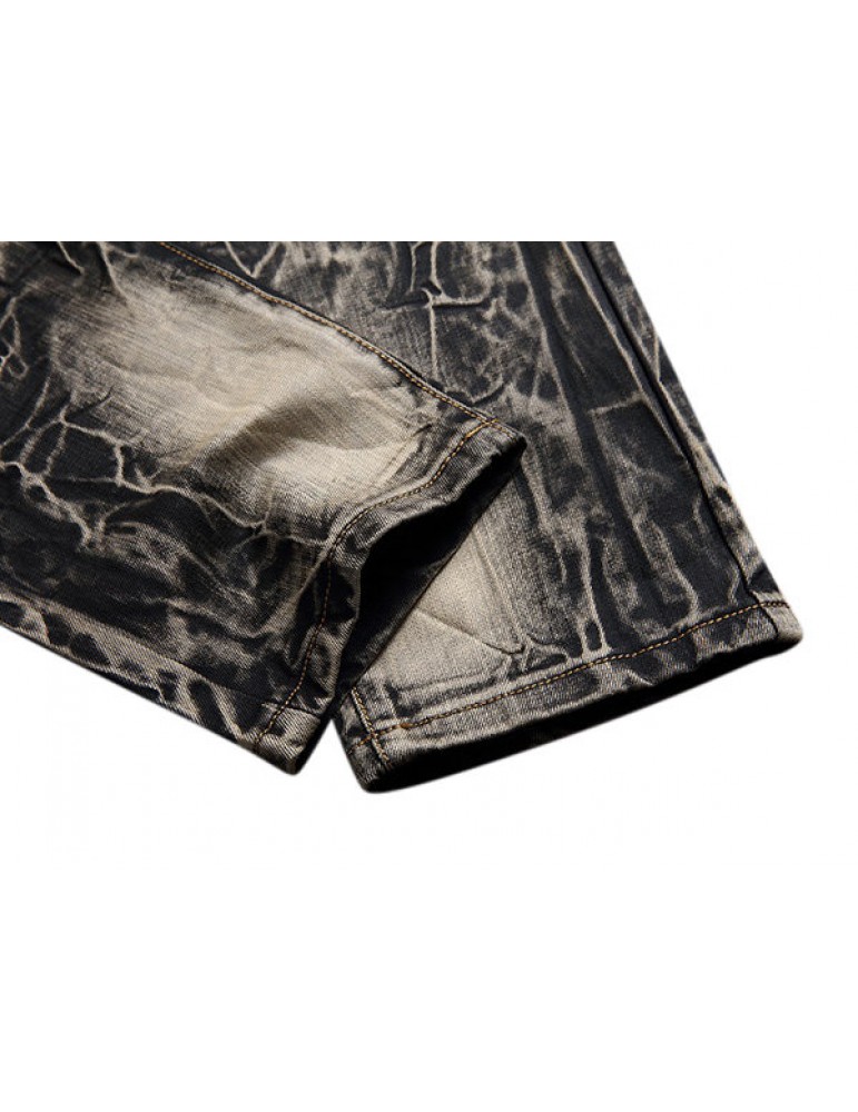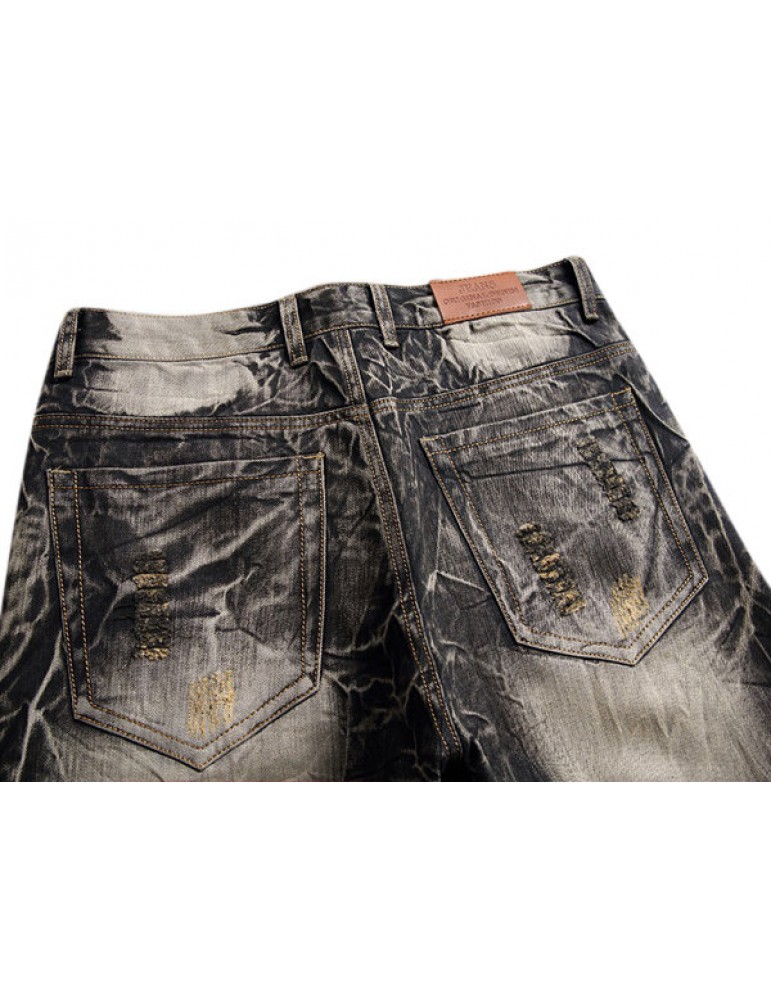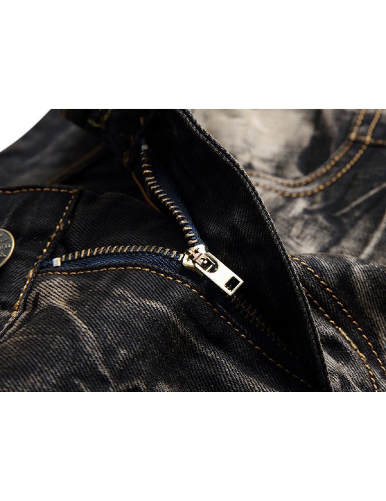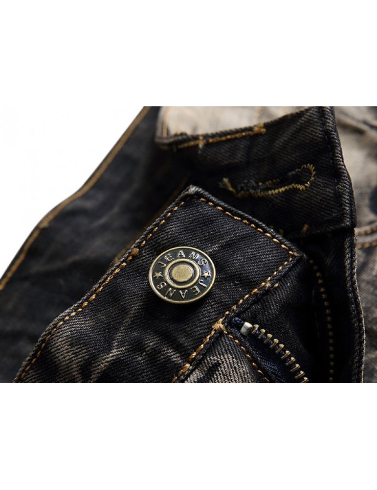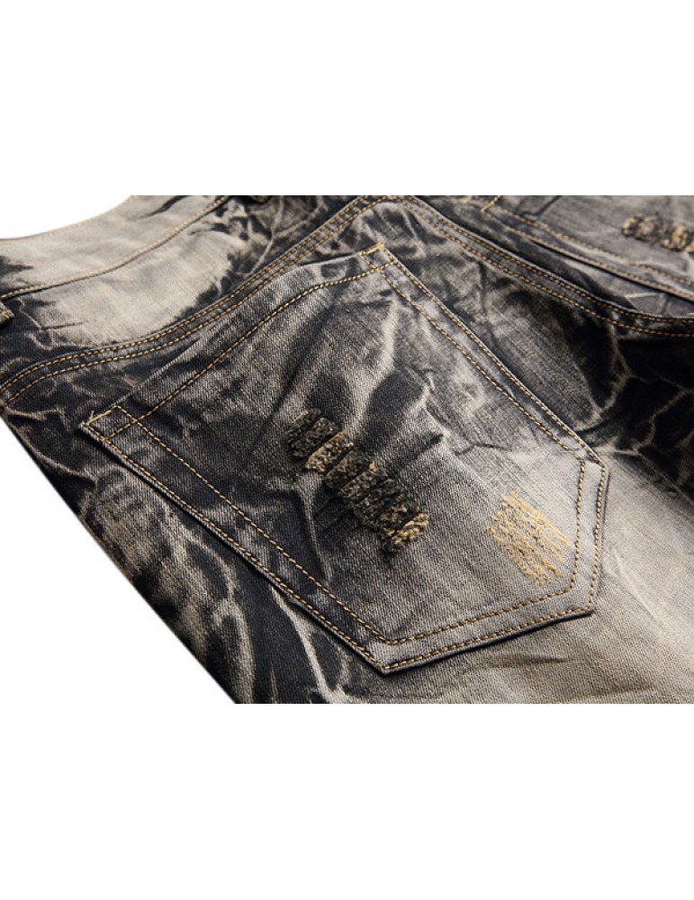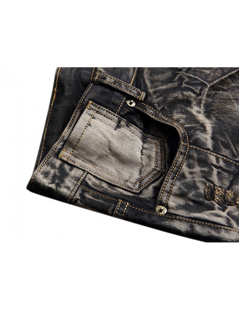 Casual Vintage Holes Embroidered Wings Stone Washed Jeans for Men