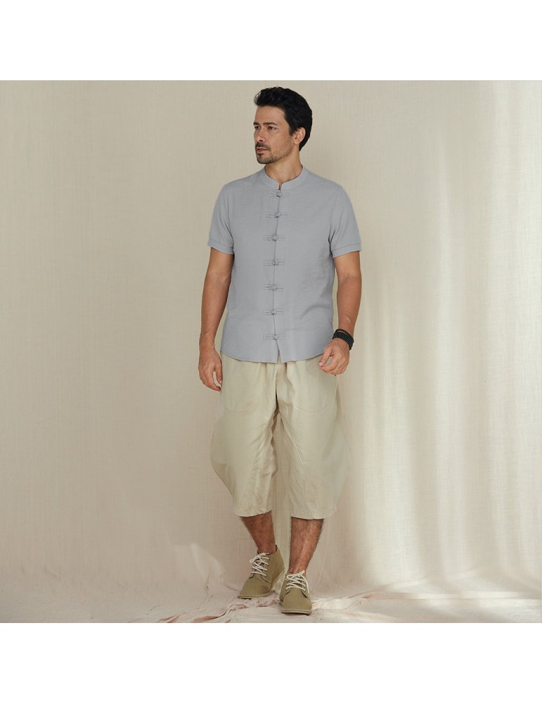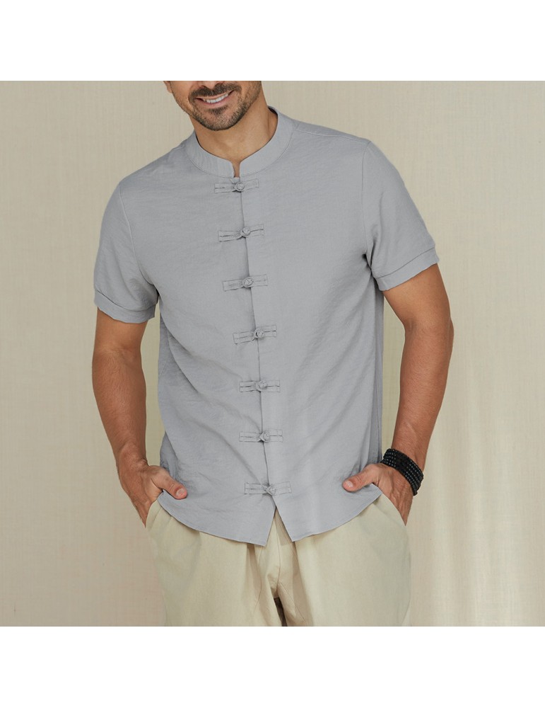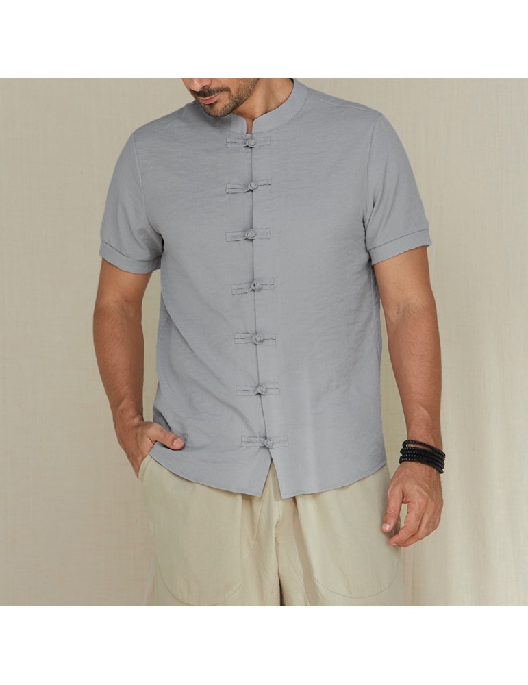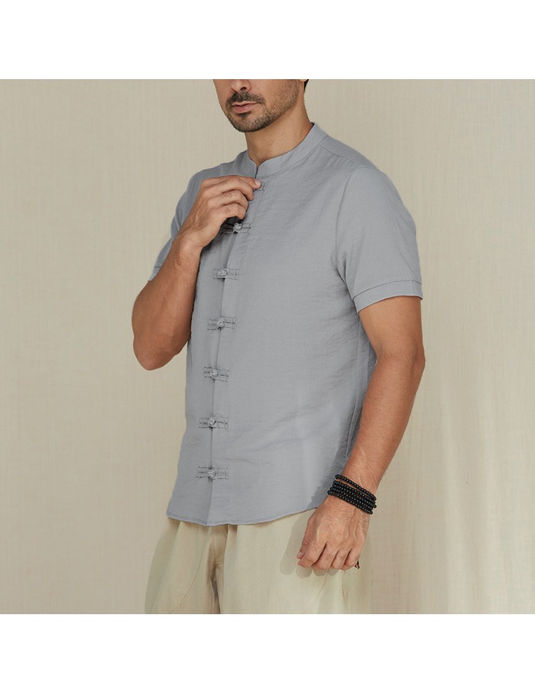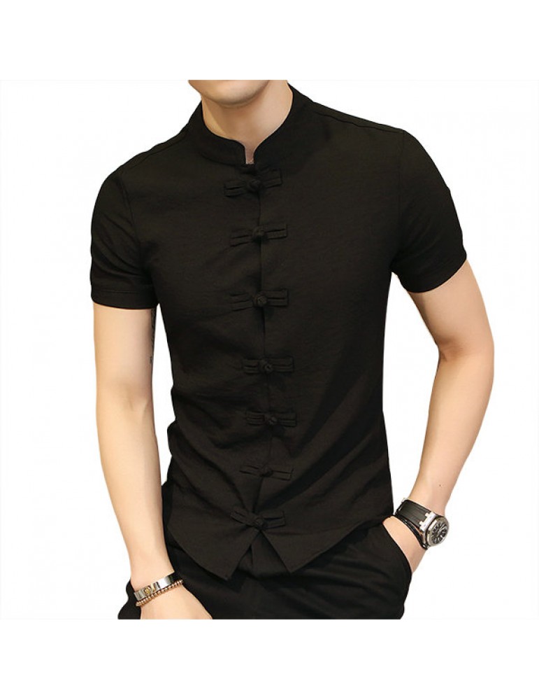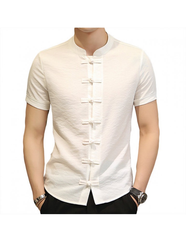 Chinese Style Single Breasted Chinese Buttons Slim Fit Retro Shirts for Men