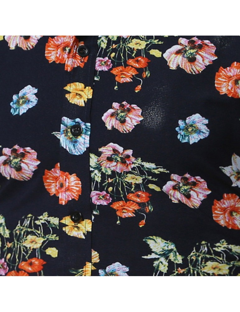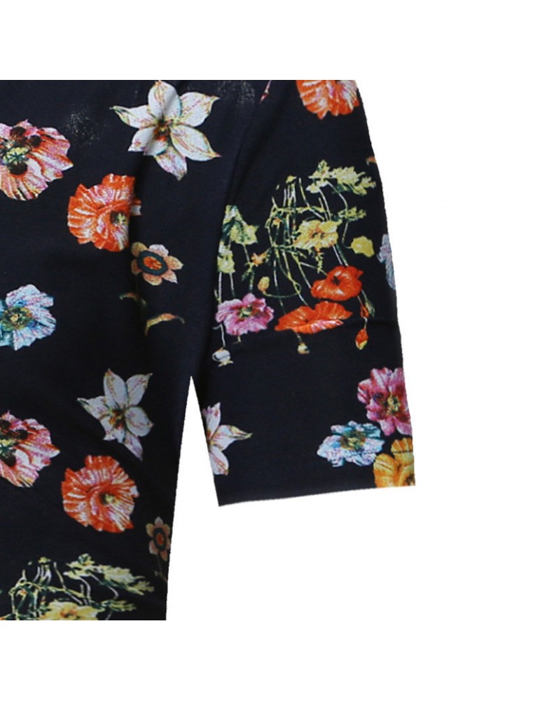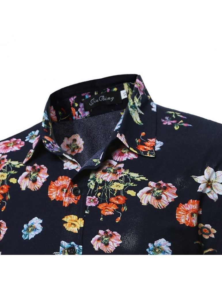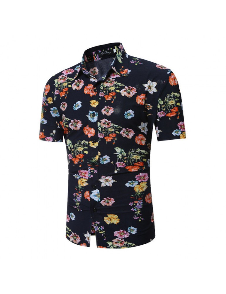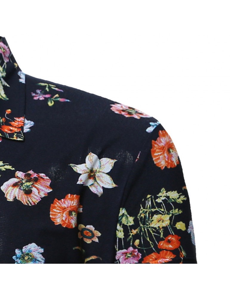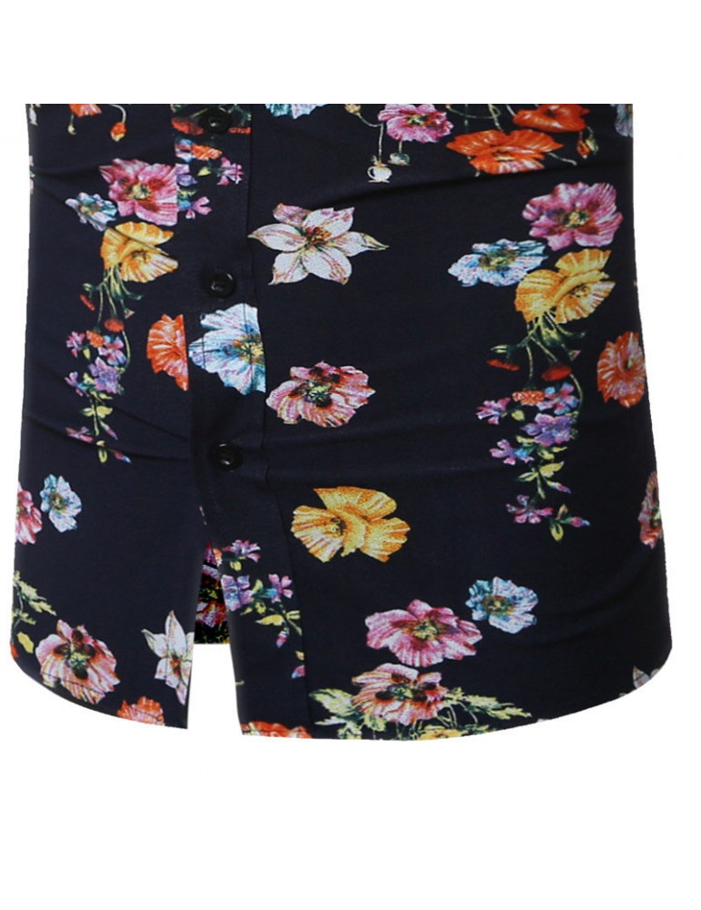 Casual Floral Printing Slim Fit Short Sleeve Dress Shirts For Men