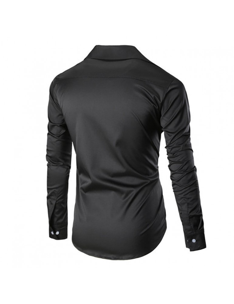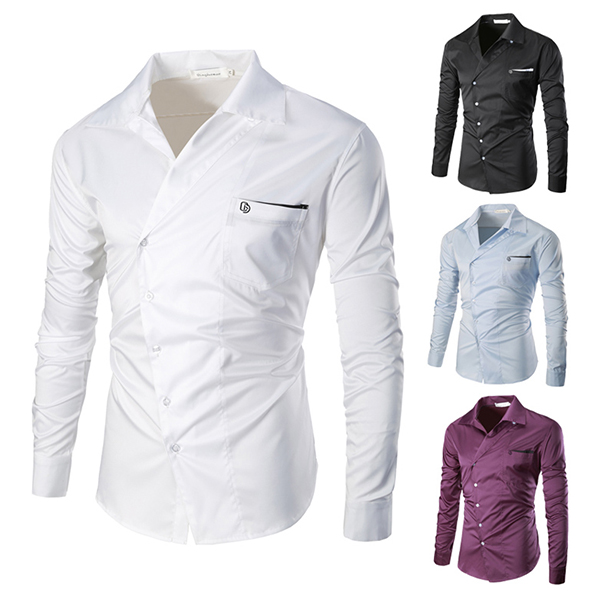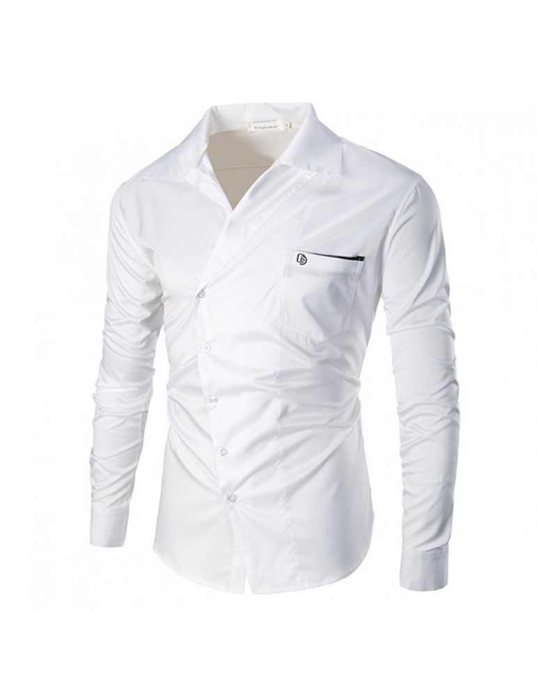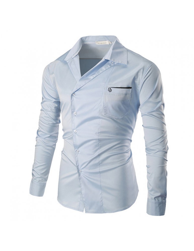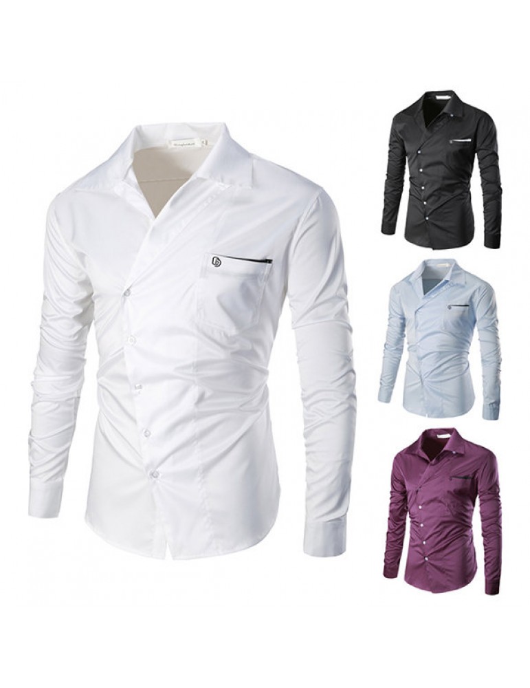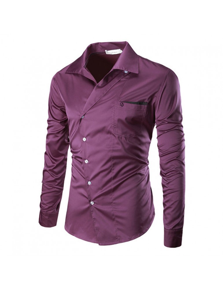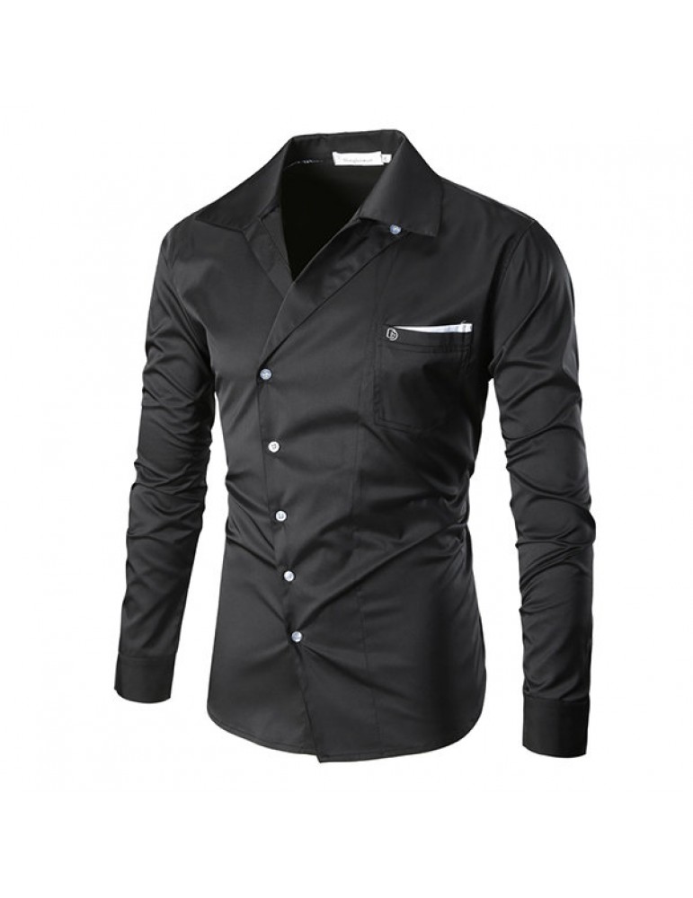 Casual Business Pocket Solid Color Band Collar Designer Shirts for Men