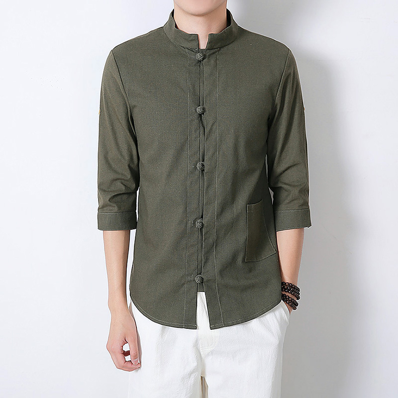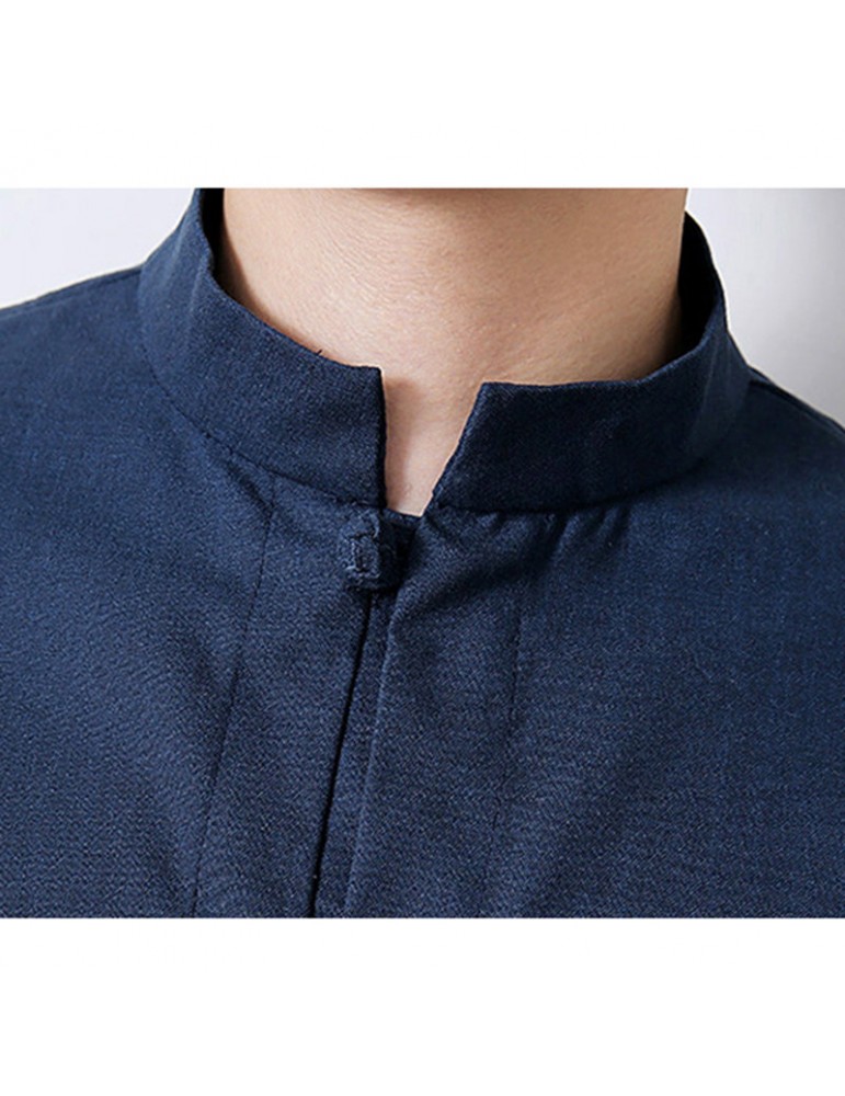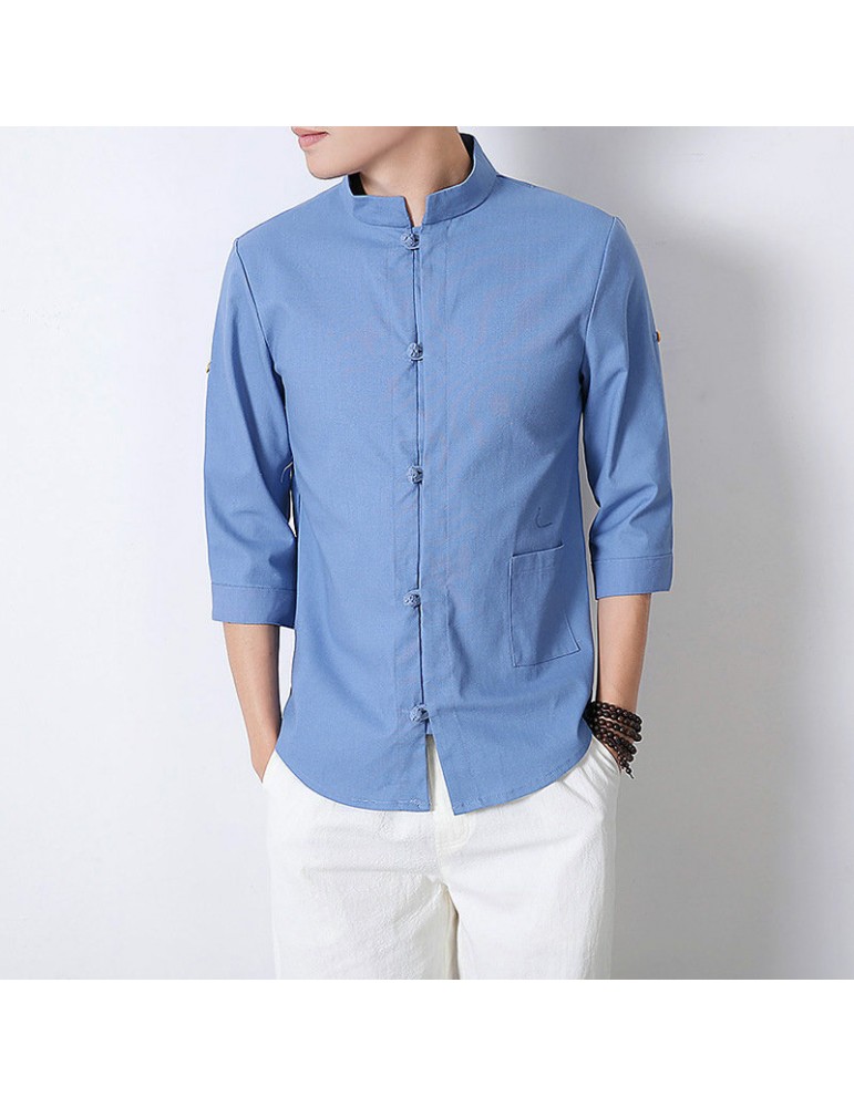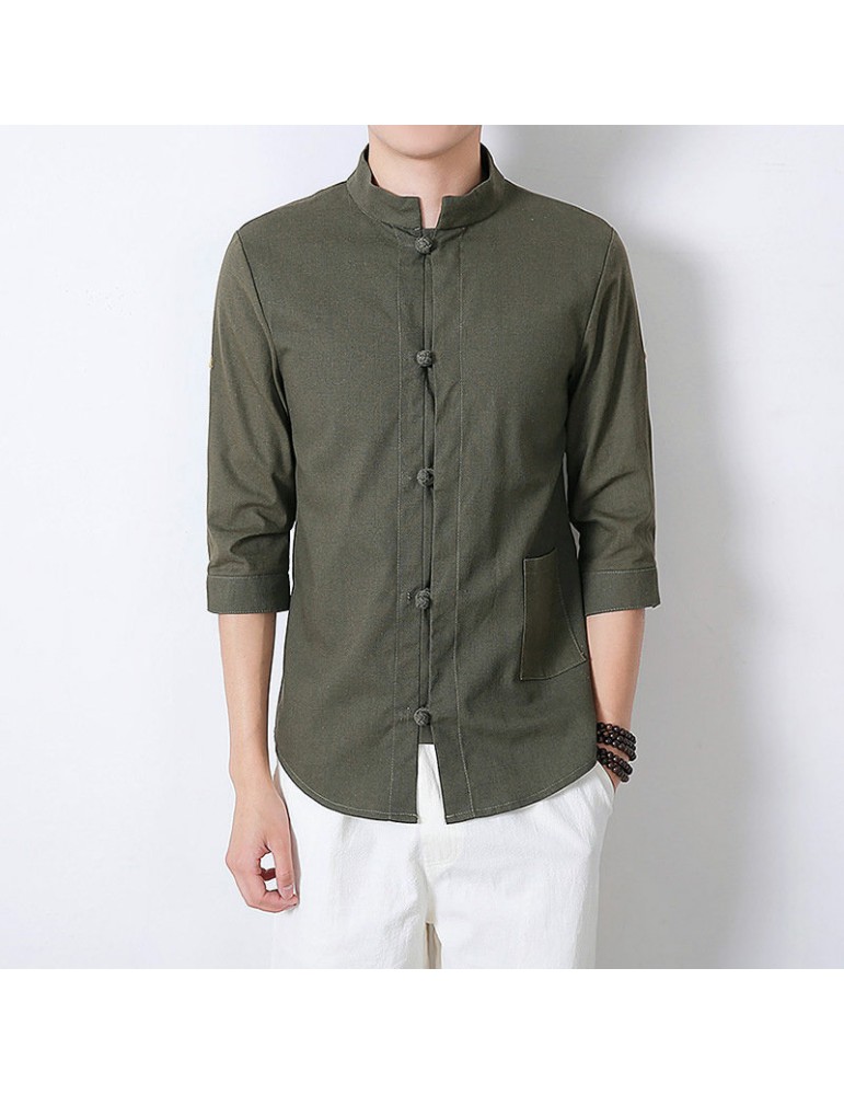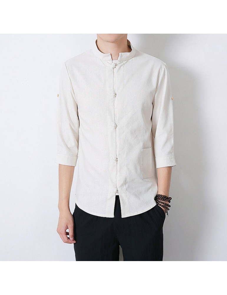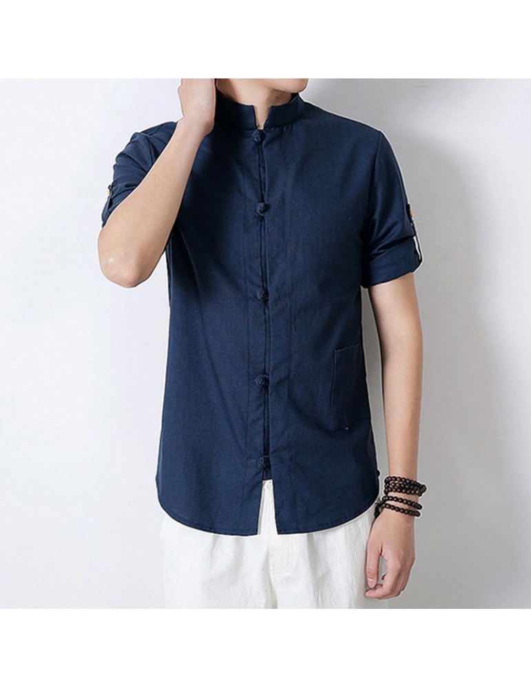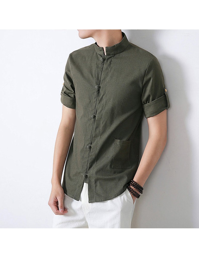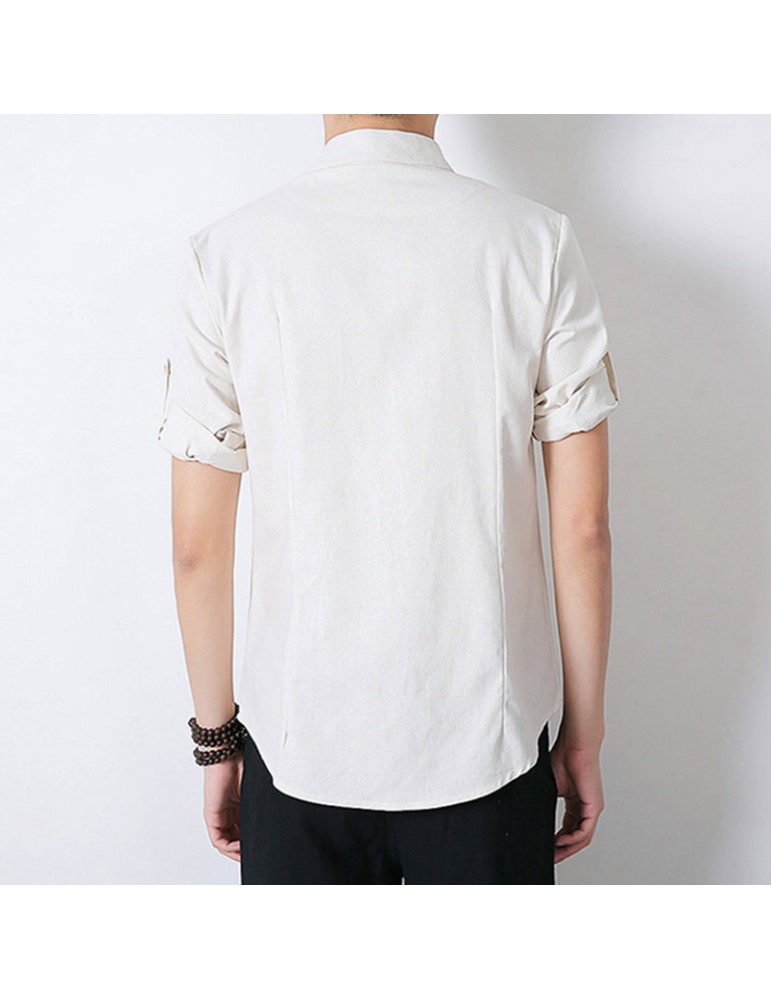 Men Chinese Style Retro Design Linen Shirts With Pocket
