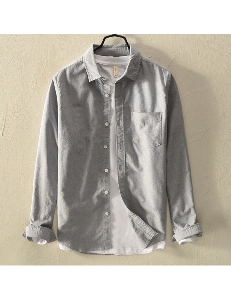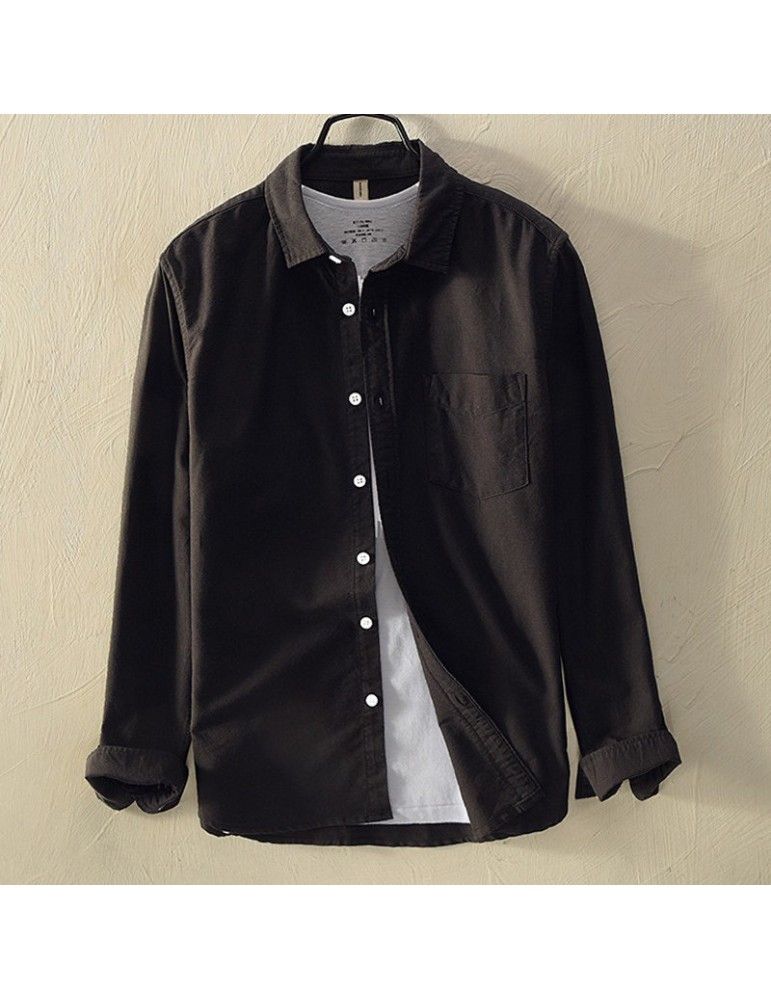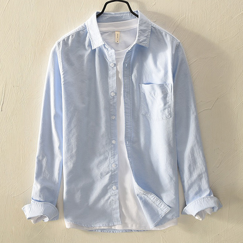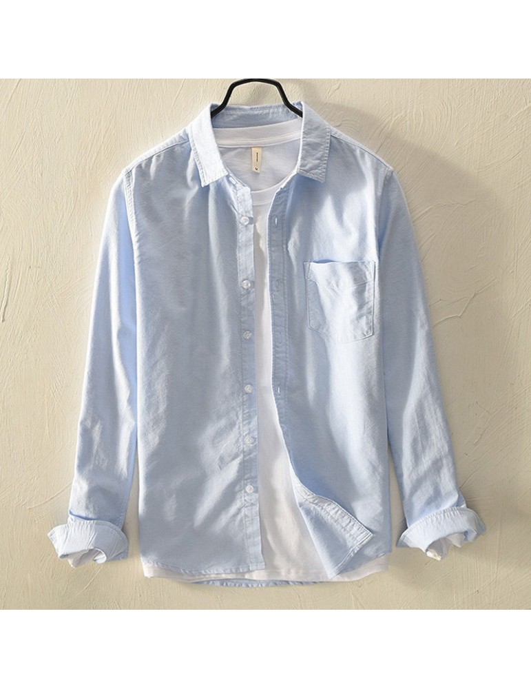 100% Cotton Casual Solid Color Turn Down Collar Long Sleeve Business Shirt