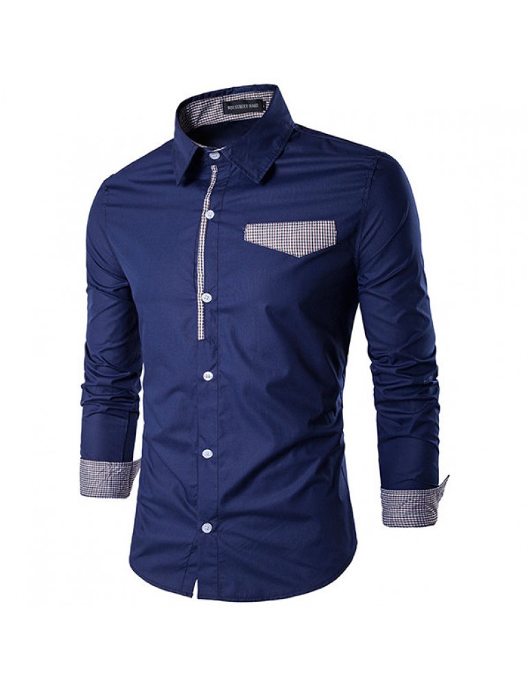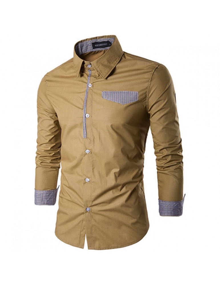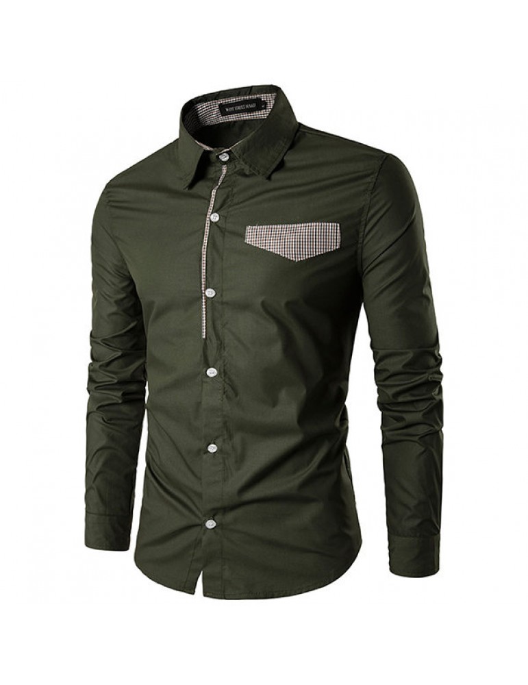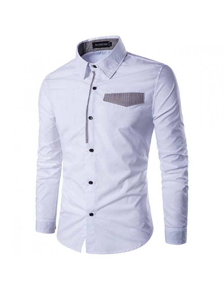 Fashion Patchwork Slim Band Collar Designer Shirts for Men