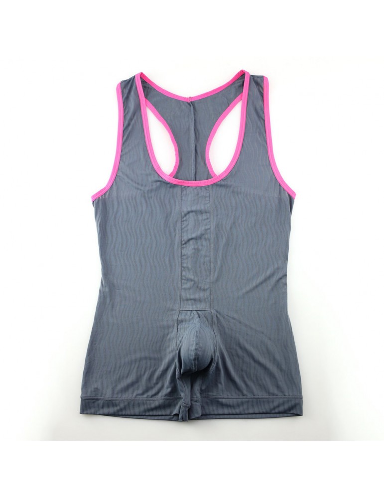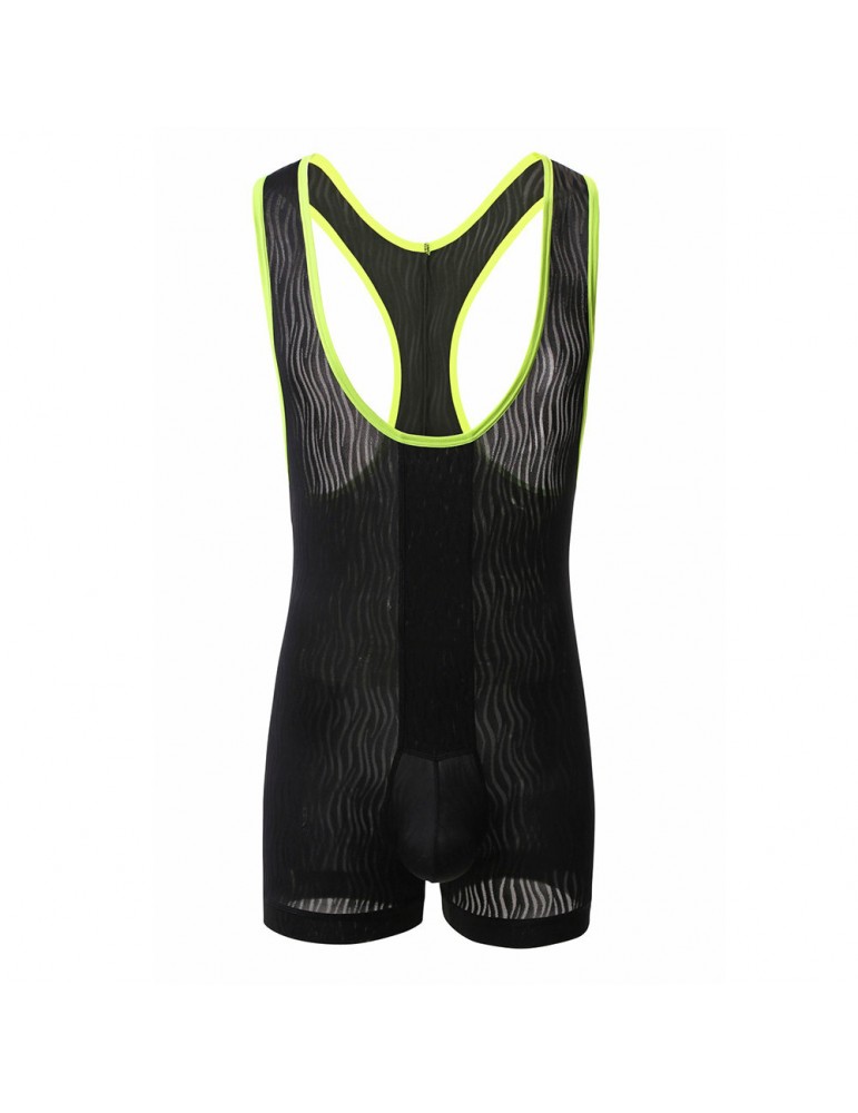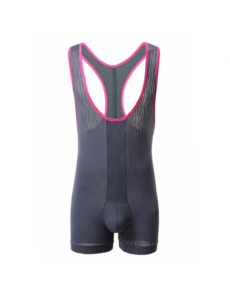 Sexy Mesh Water Pattern Printing Thin U Convex Fitness Wrestling Underwear Conjoined Clothes for Men