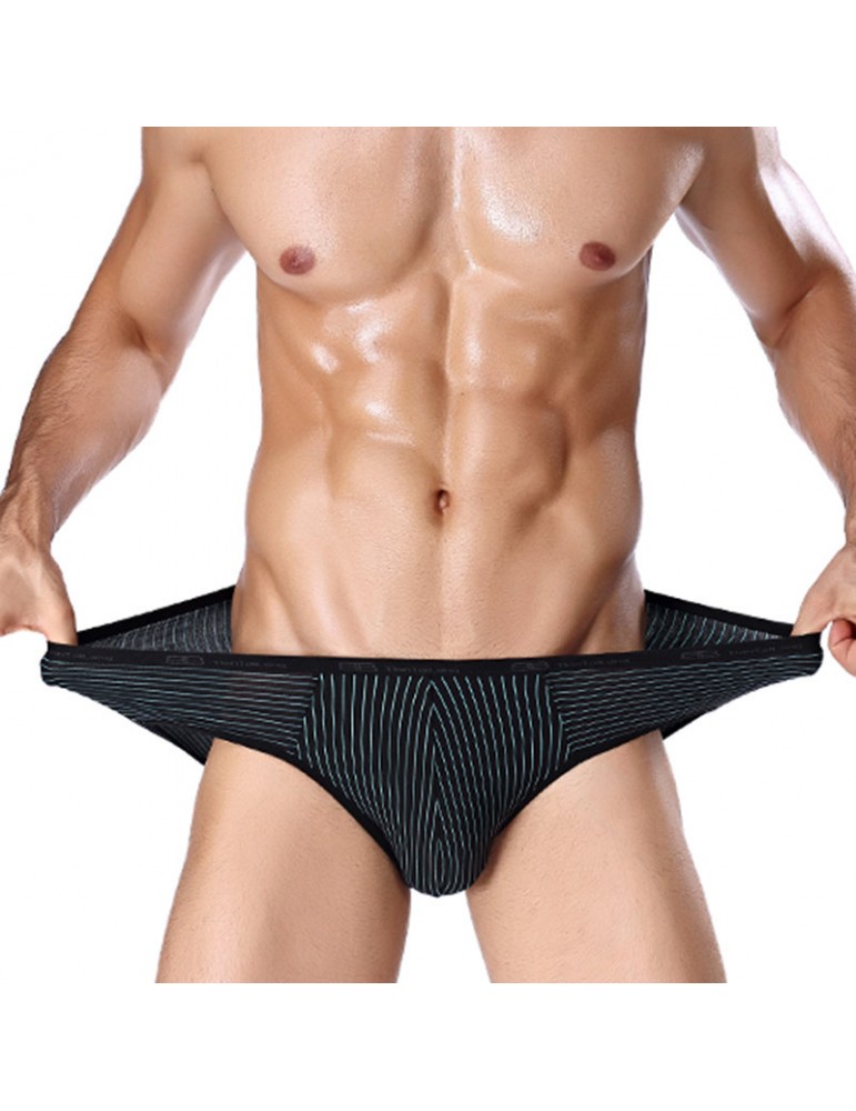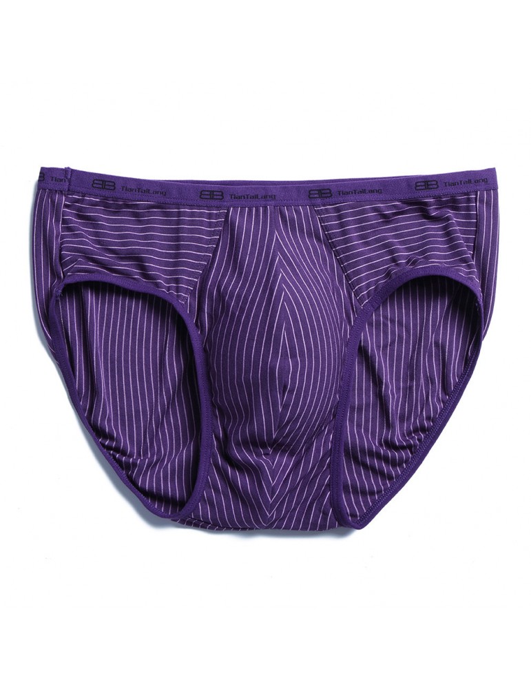 Mens 100%Modal Stripe Elasticity Low Waist Sexy U Convex Pouch Brief Underwear