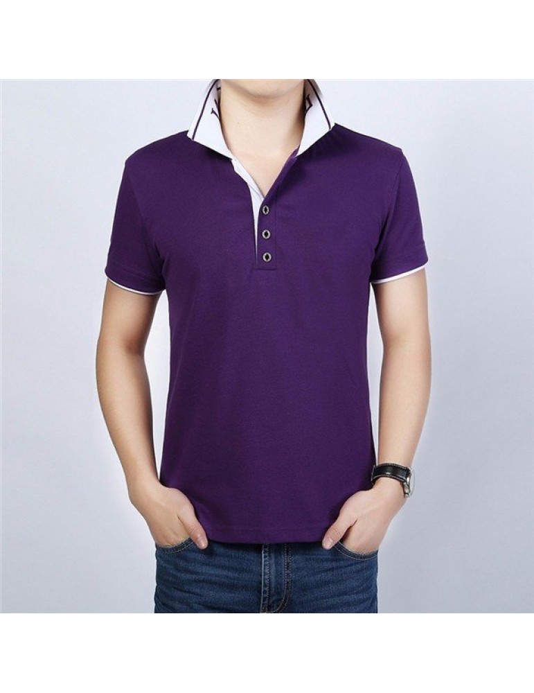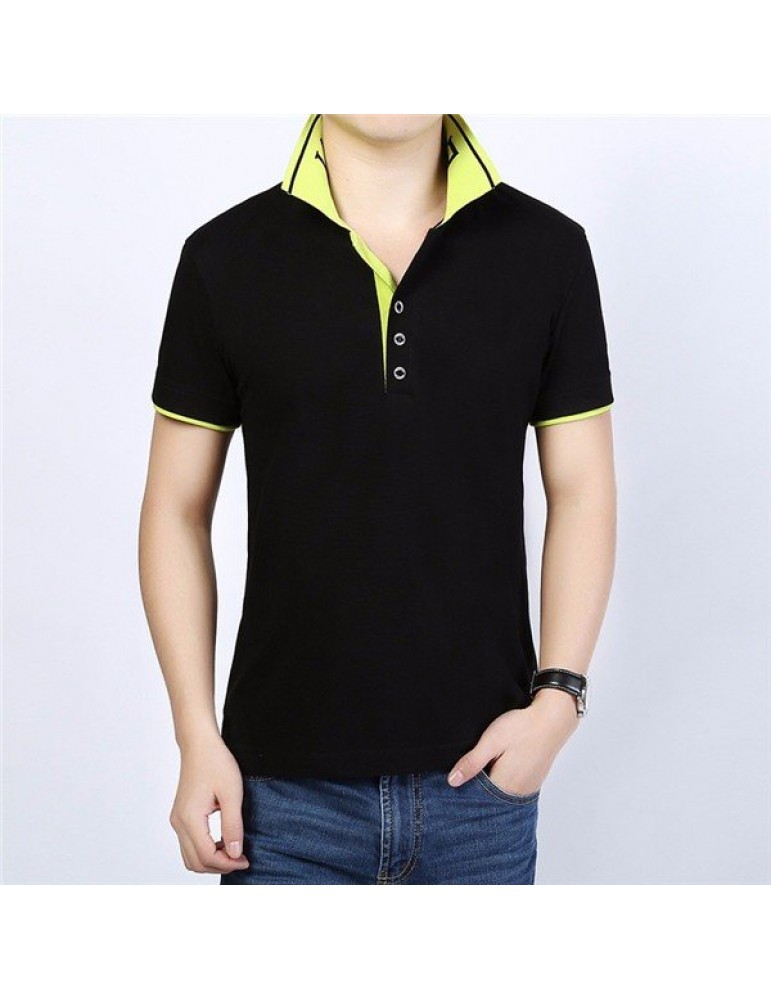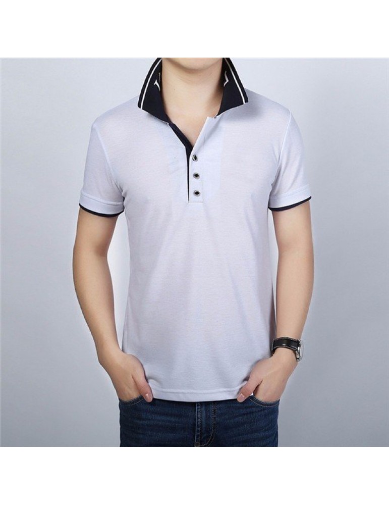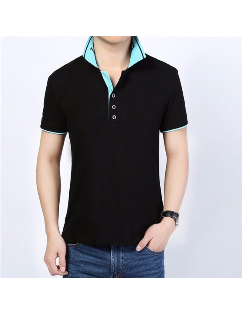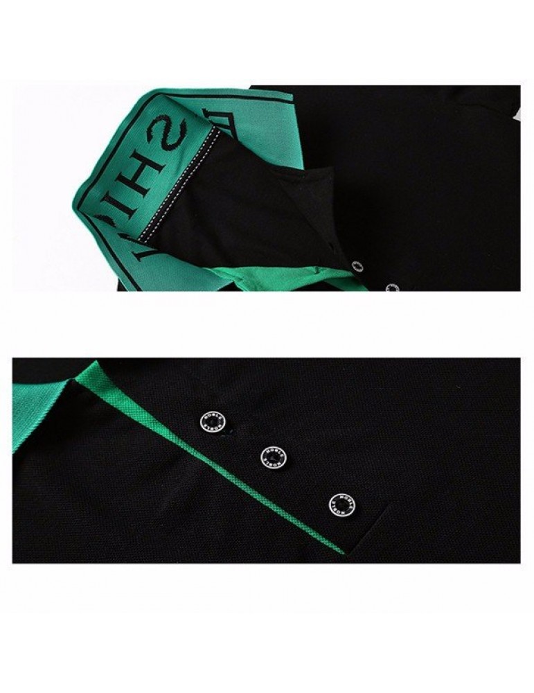 Mens Cool Summer Contrast Color Turn-down Collar Short Sleeve Golf Shirts