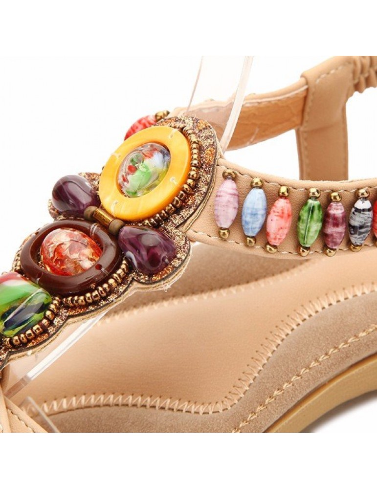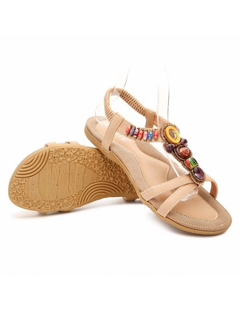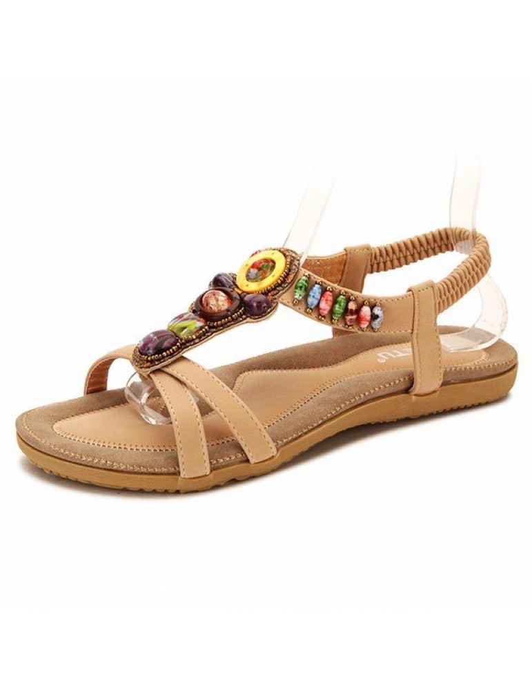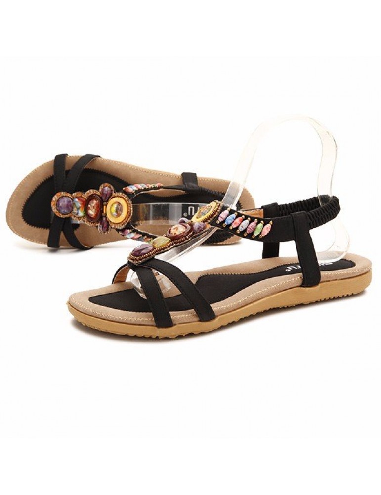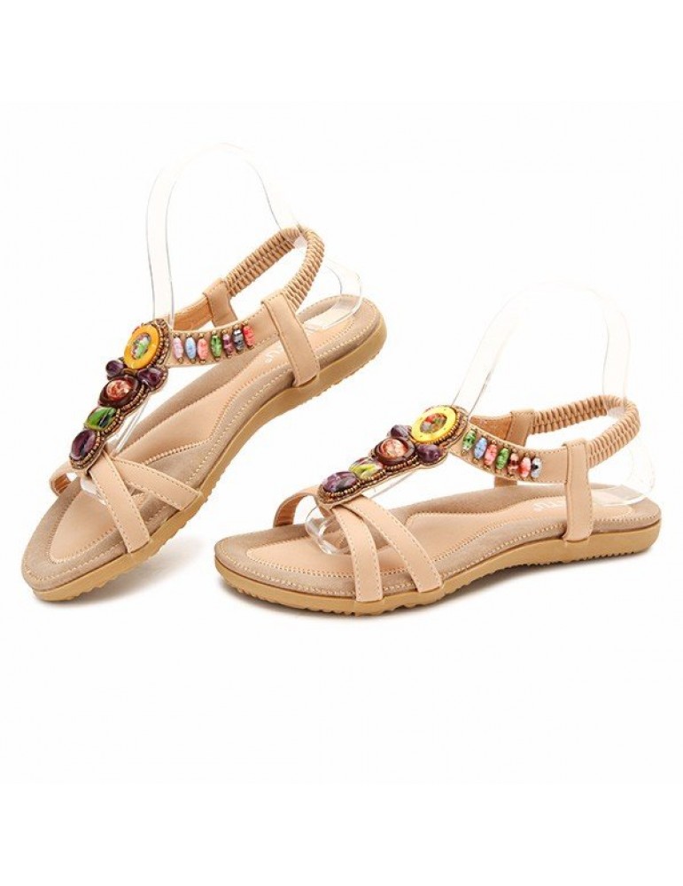 Big Size Bohemia Beaded Rhinestone Peep Toe Fish Mouth Flat Sandals