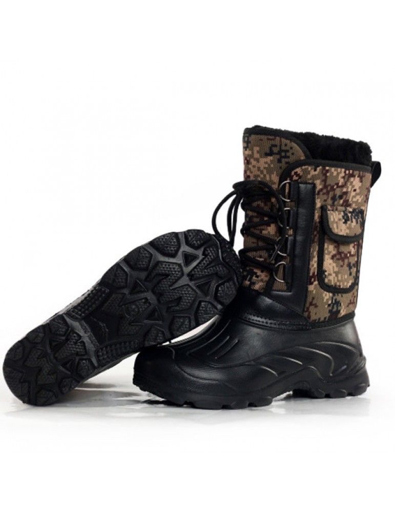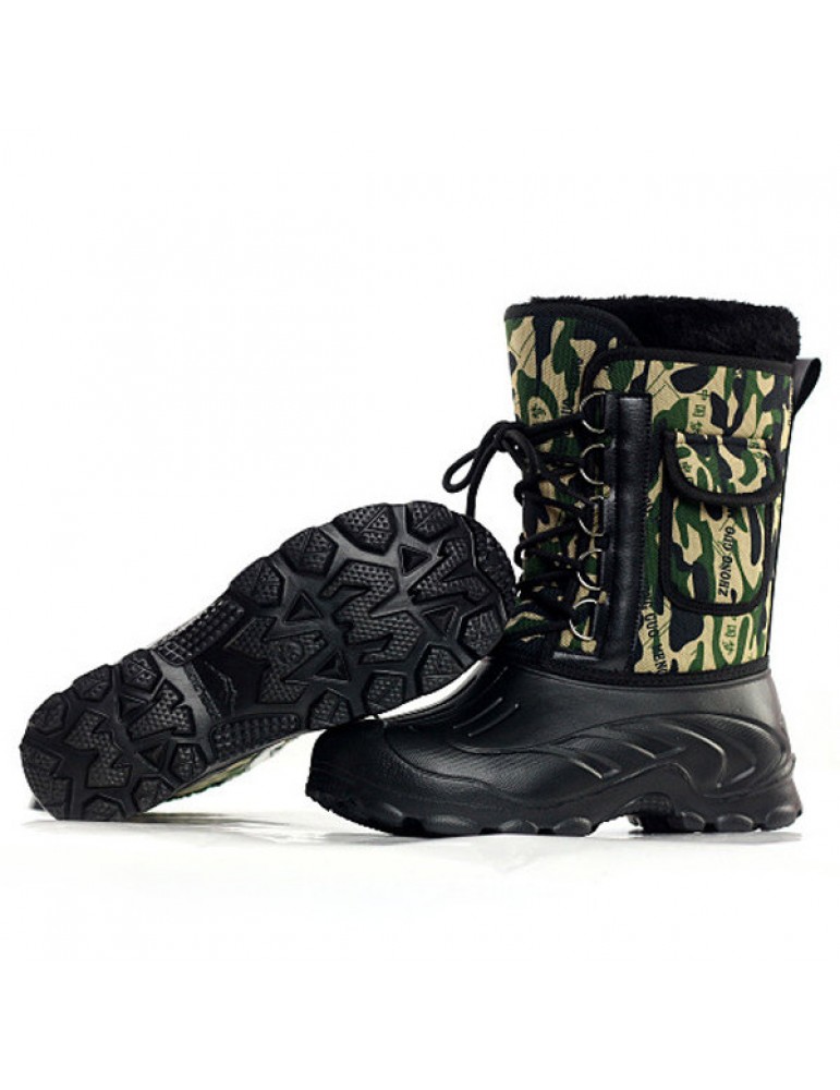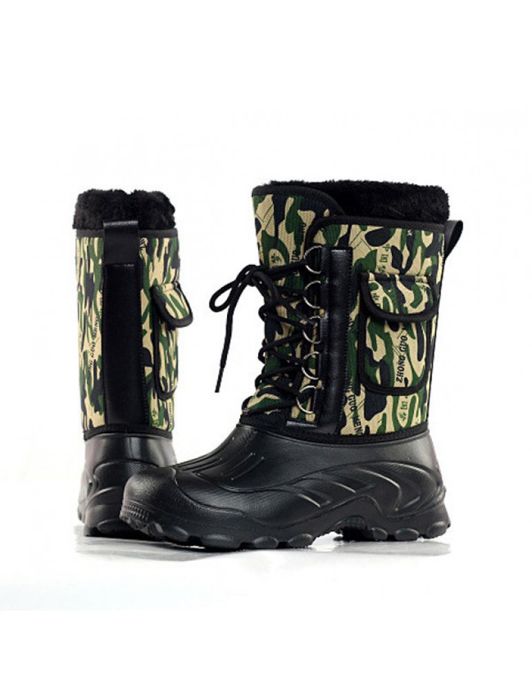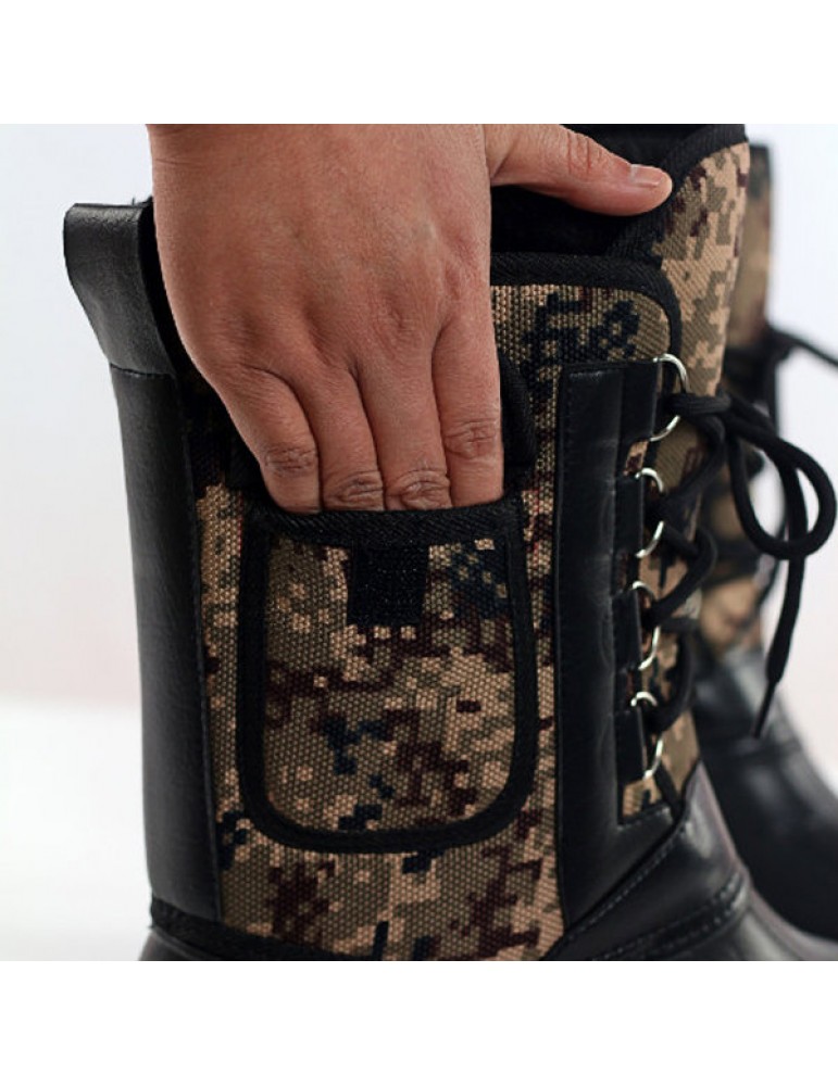 Camouflage Waterproof Fur Lining Removable Pocket Lace Up Mid Calf Boots