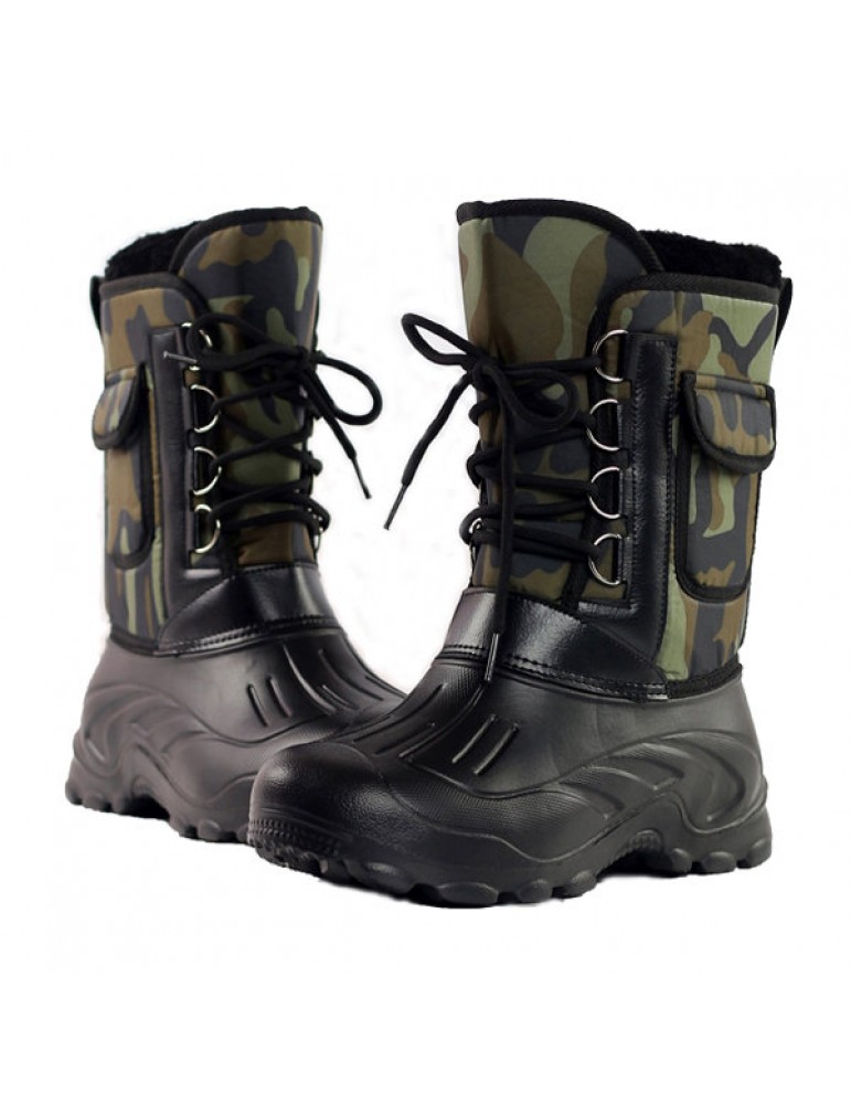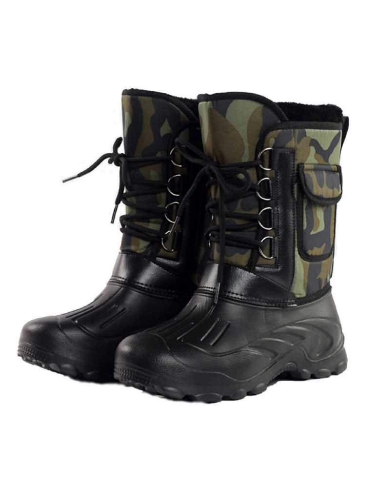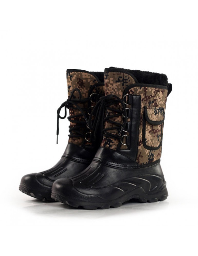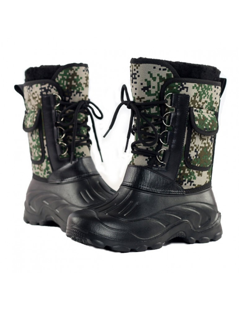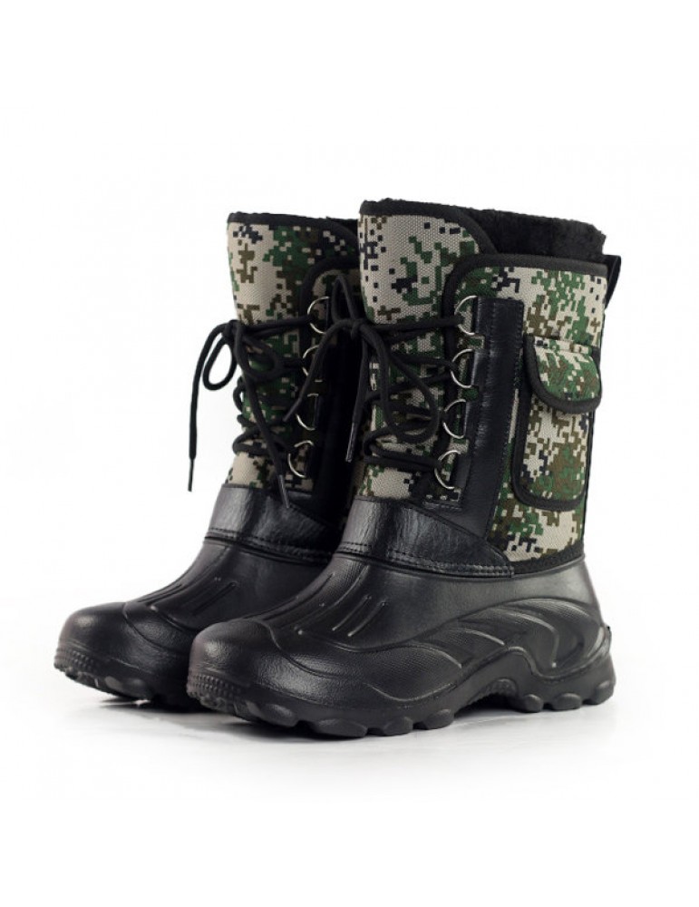 Camouflage Waterproof Fur Lining Removable Pocket Lace Up Mid Calf Boots