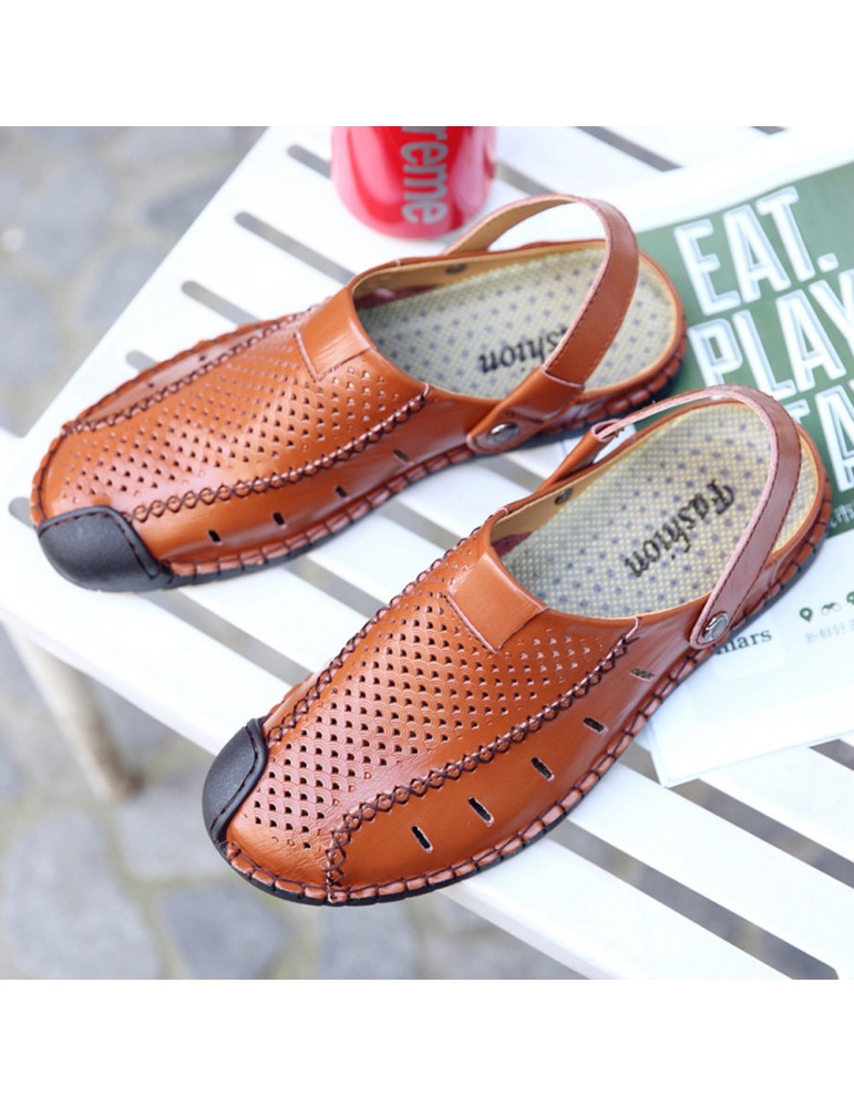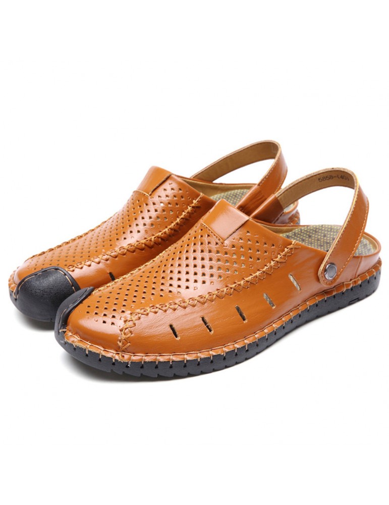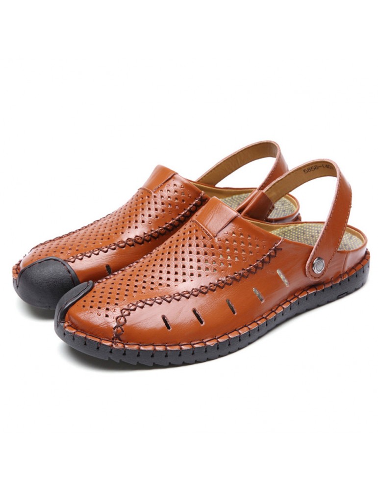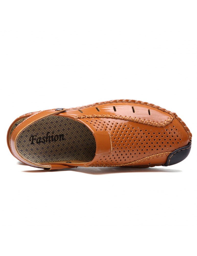 Men Hand Stitching Hole Breathable Water Friendly Leather Sandals