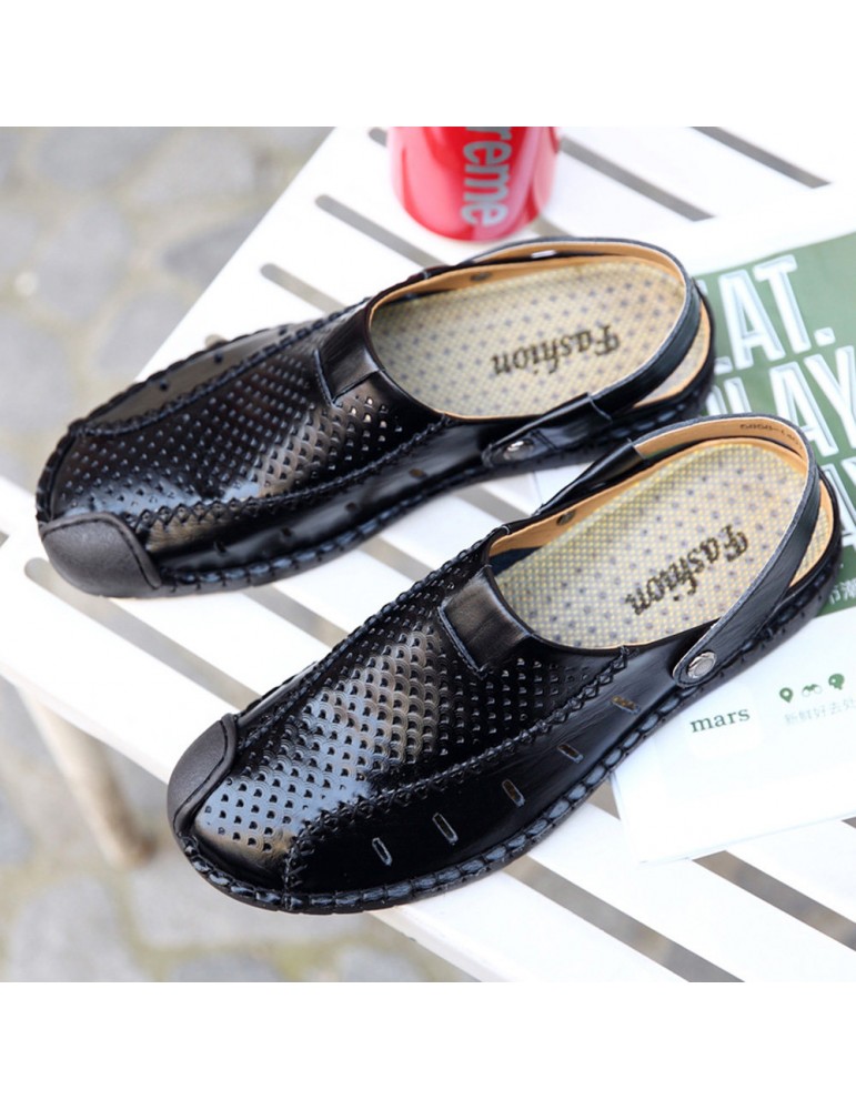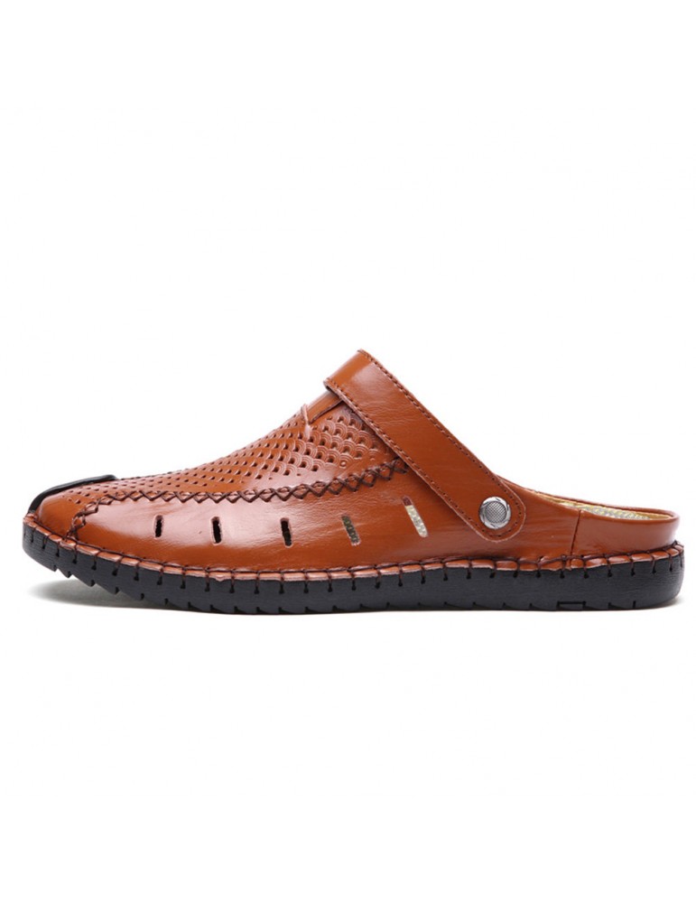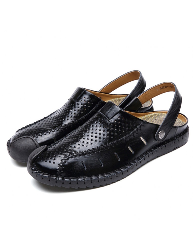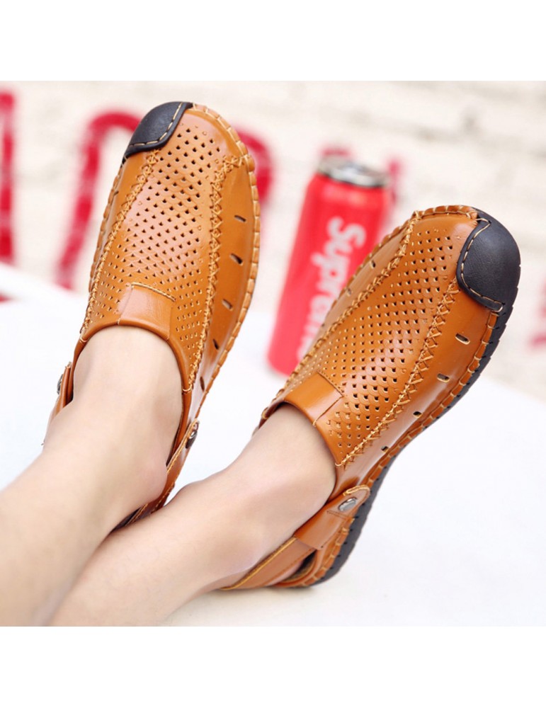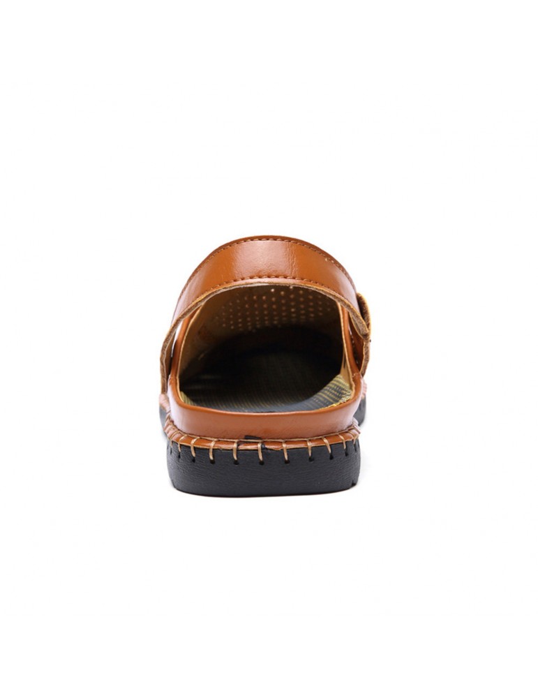 Men Hand Stitching Hole Breathable Water Friendly Leather Sandals