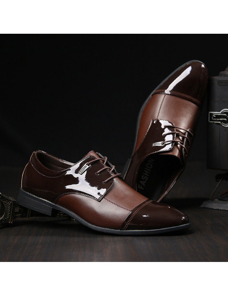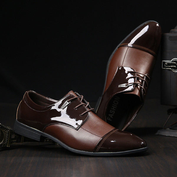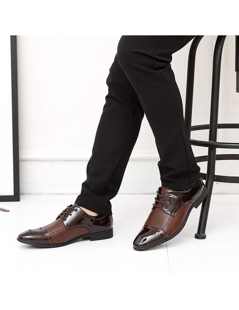 Big Size Men Color Match Ponited Toe Business Lace Up Flat Formal Shoes