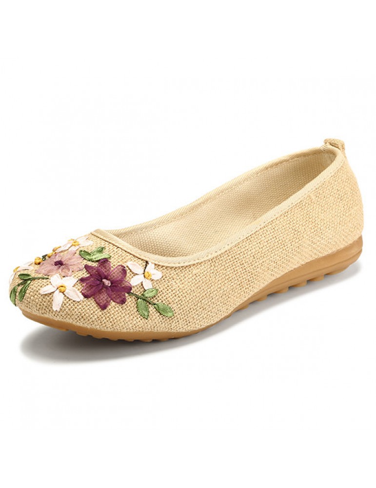 Big Size Flower Print National Wind Slip On Flat Shoes