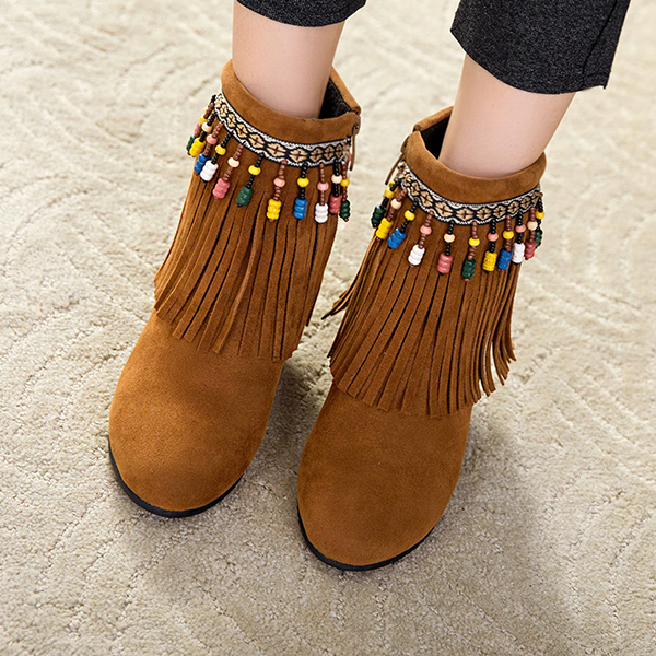 Large Size Women Casual Bohemia Beading Tassel Heigth Increasing Zipper Boots