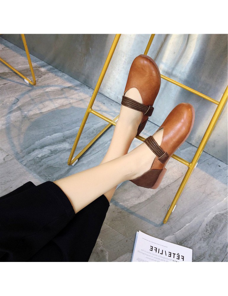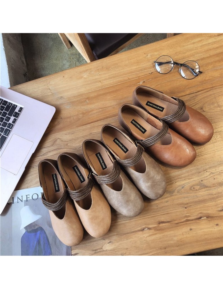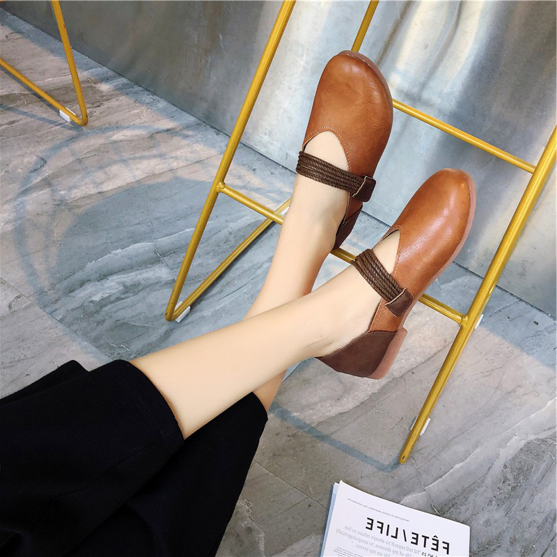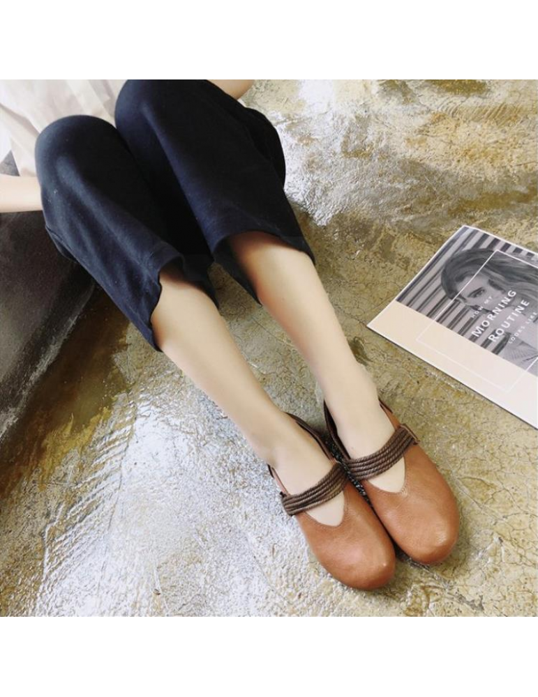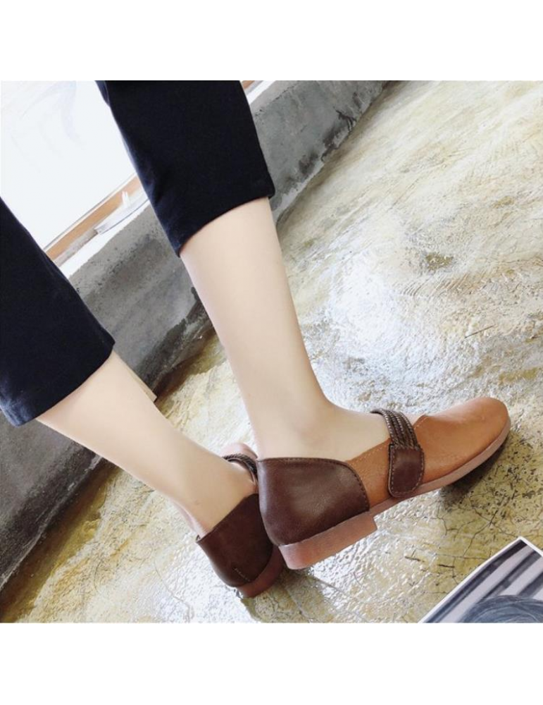 Retro Stitching Comfy Hook Loop Soft Flat Shoes For Women