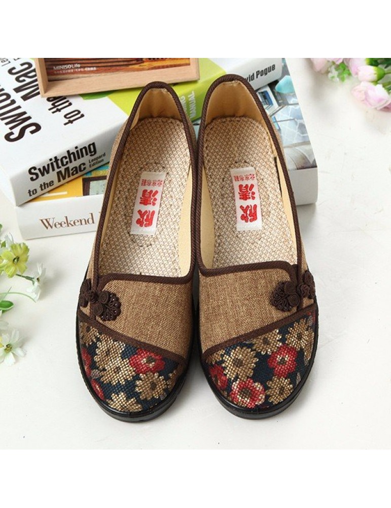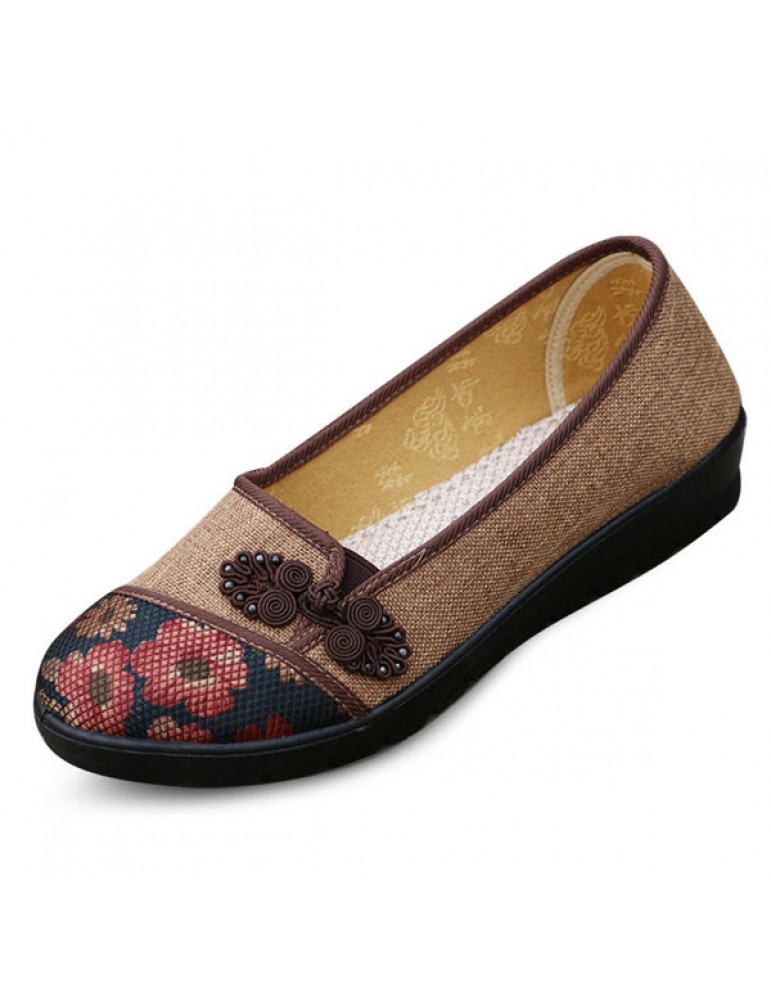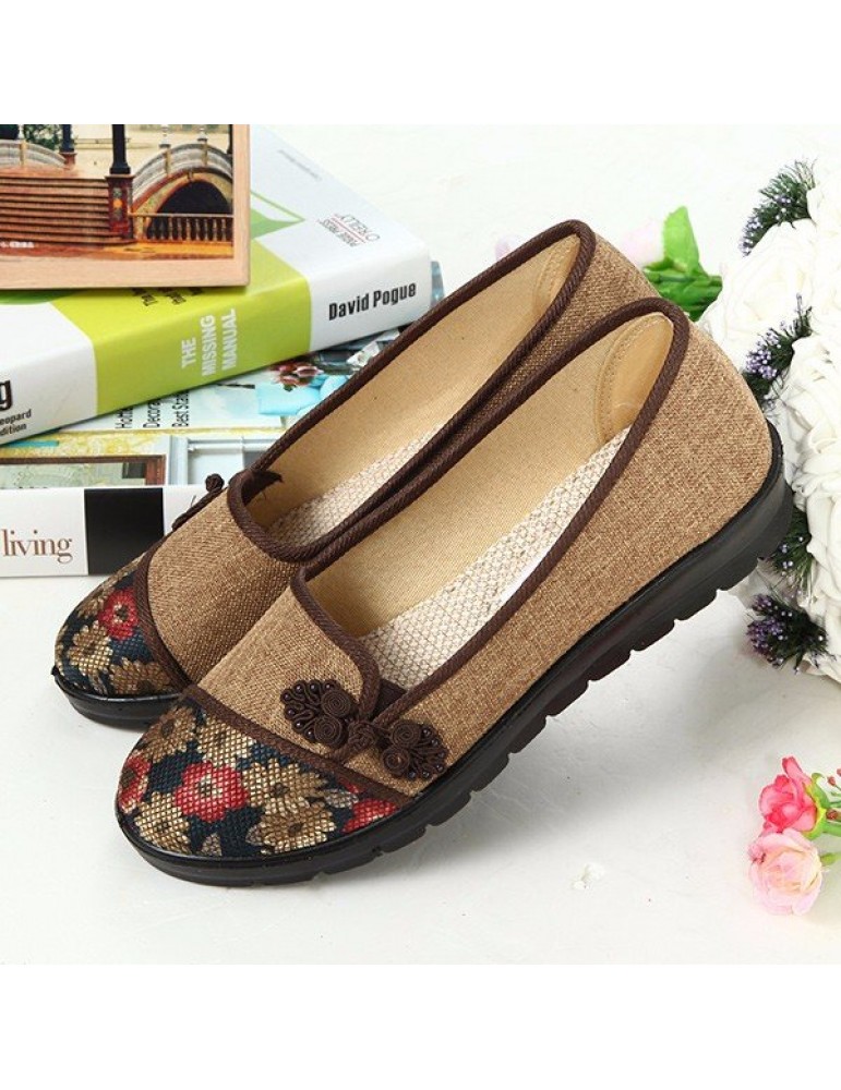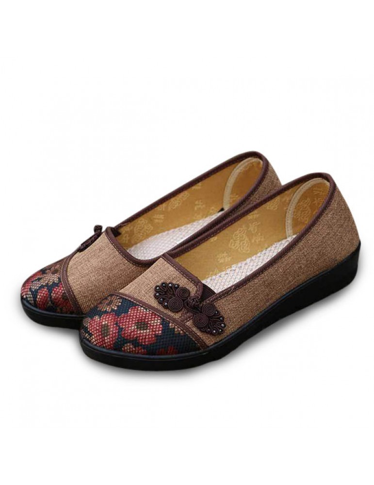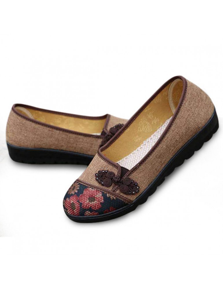 Floral Chinese Knot National Style Vintage Cotton Slip On Flat Shoes
