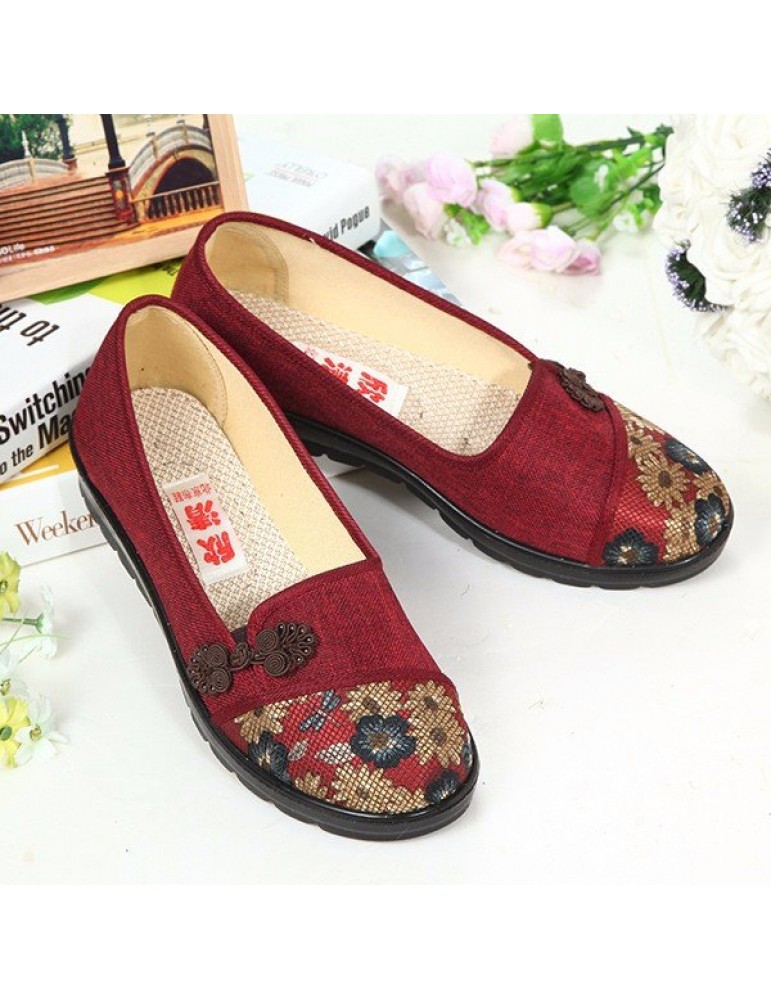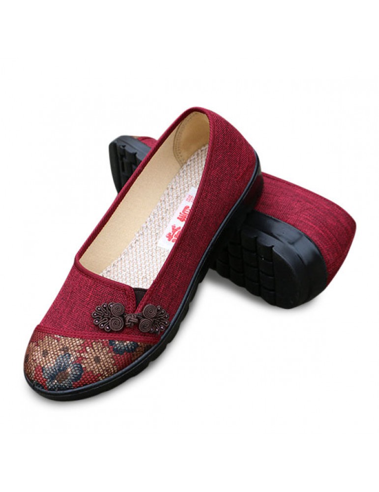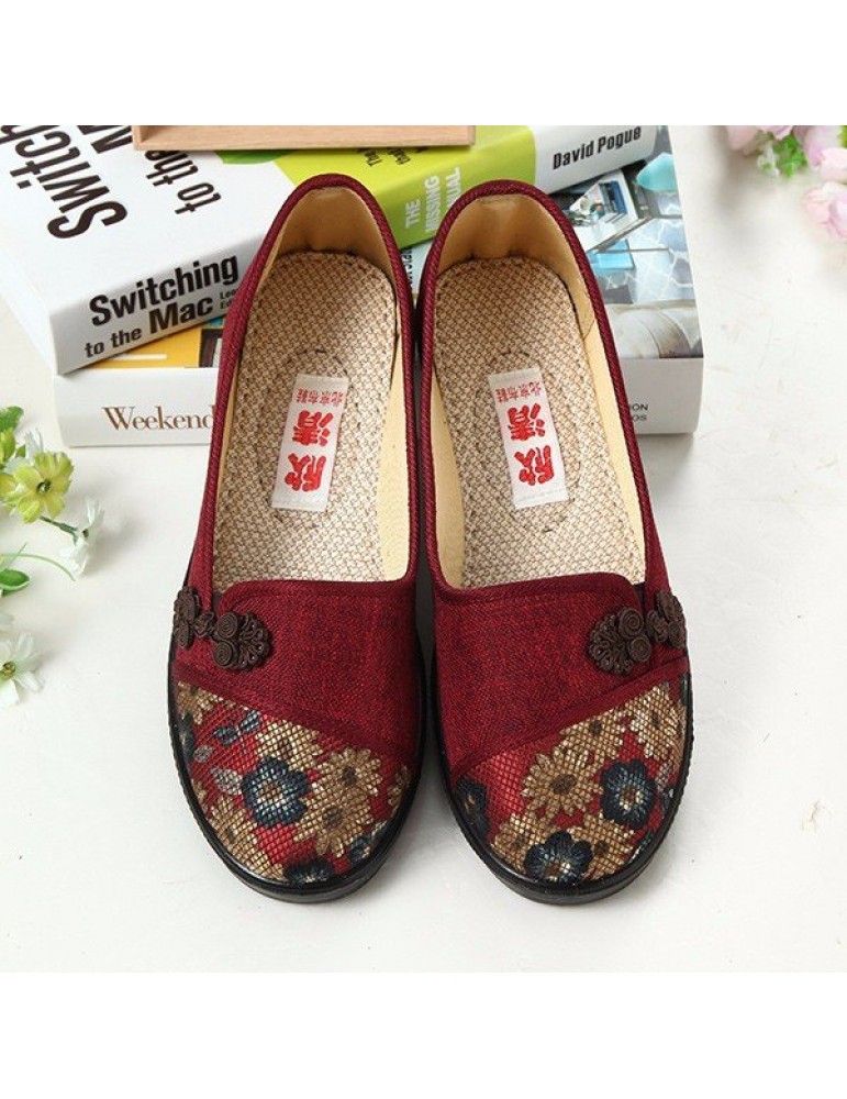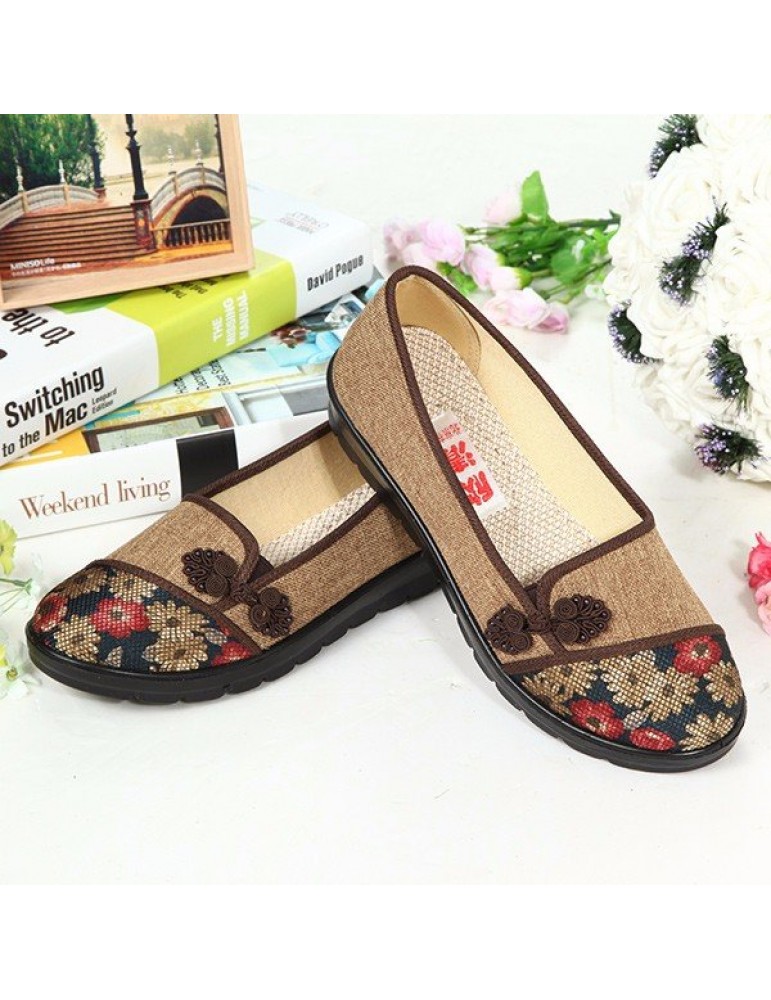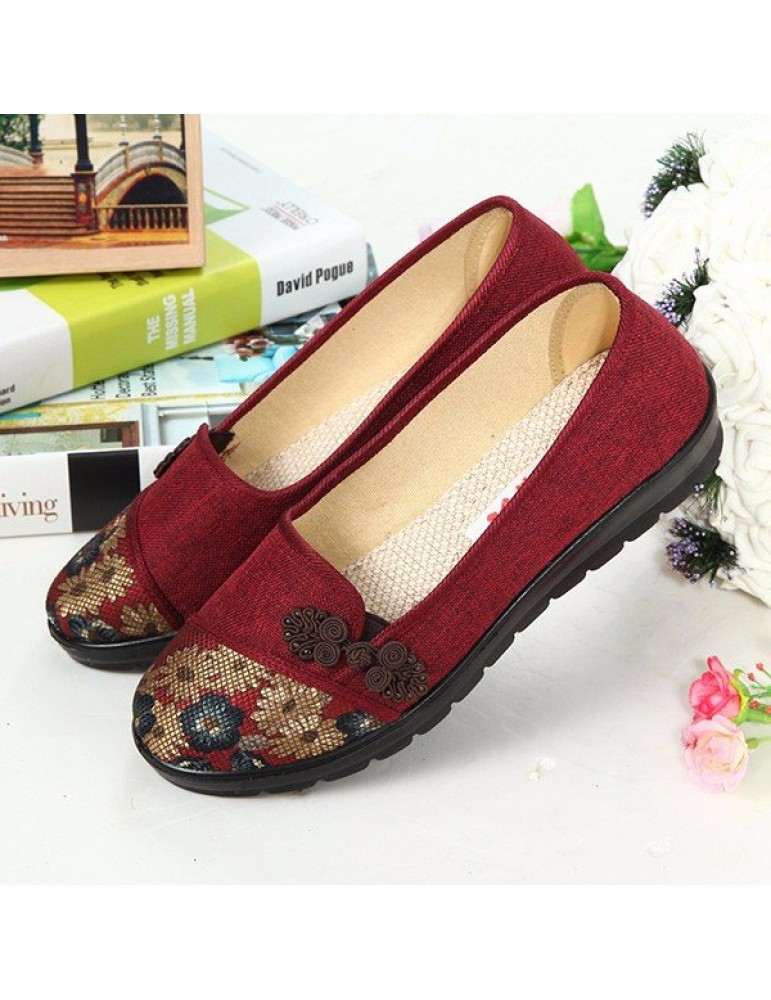 Floral Chinese Knot National Style Vintage Cotton Slip On Flat Shoes