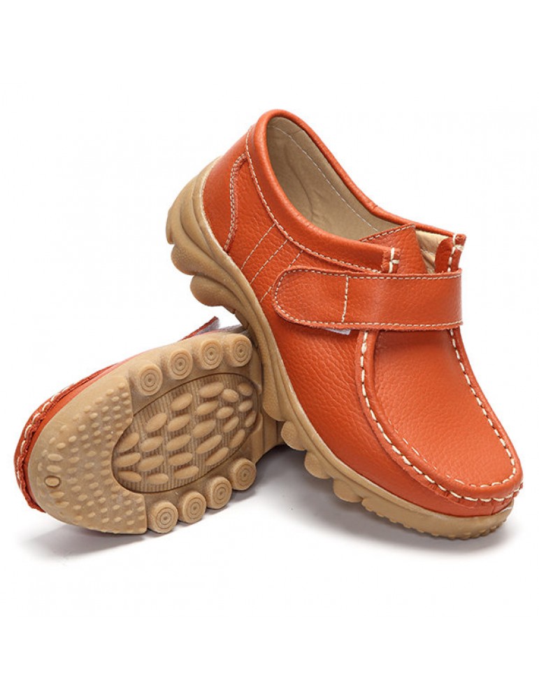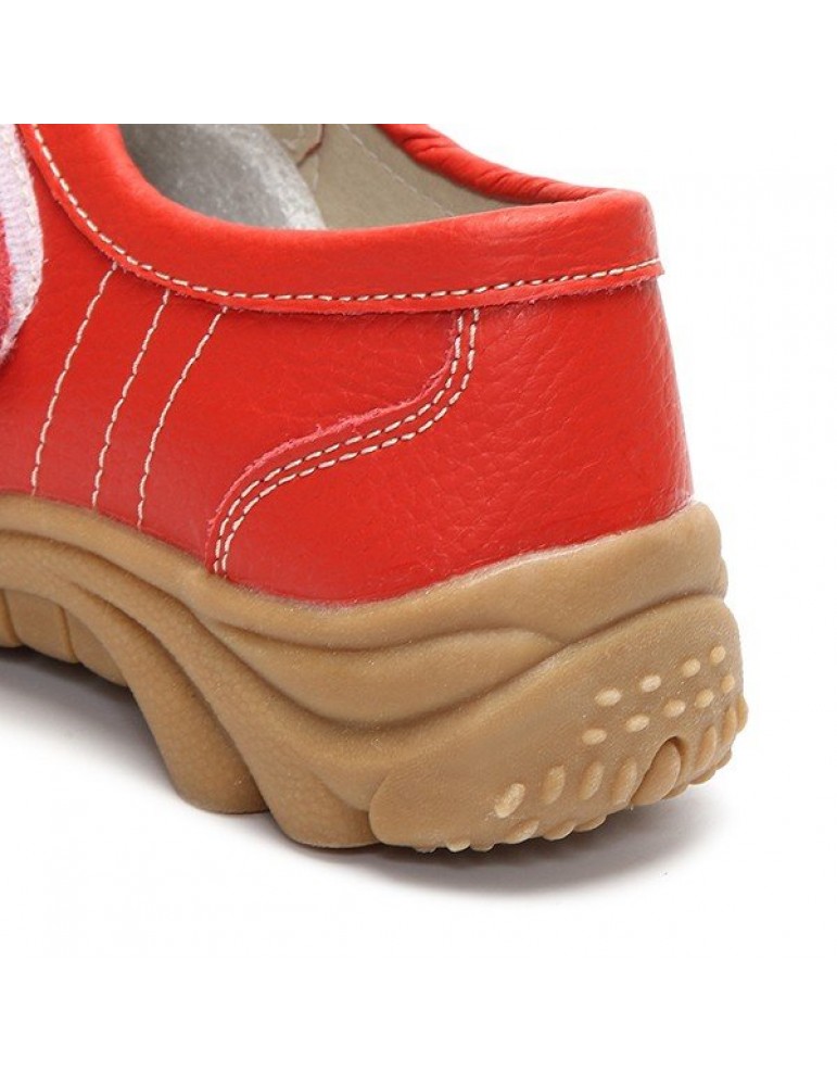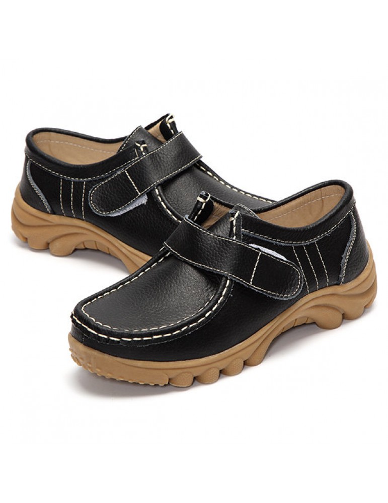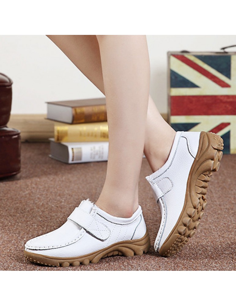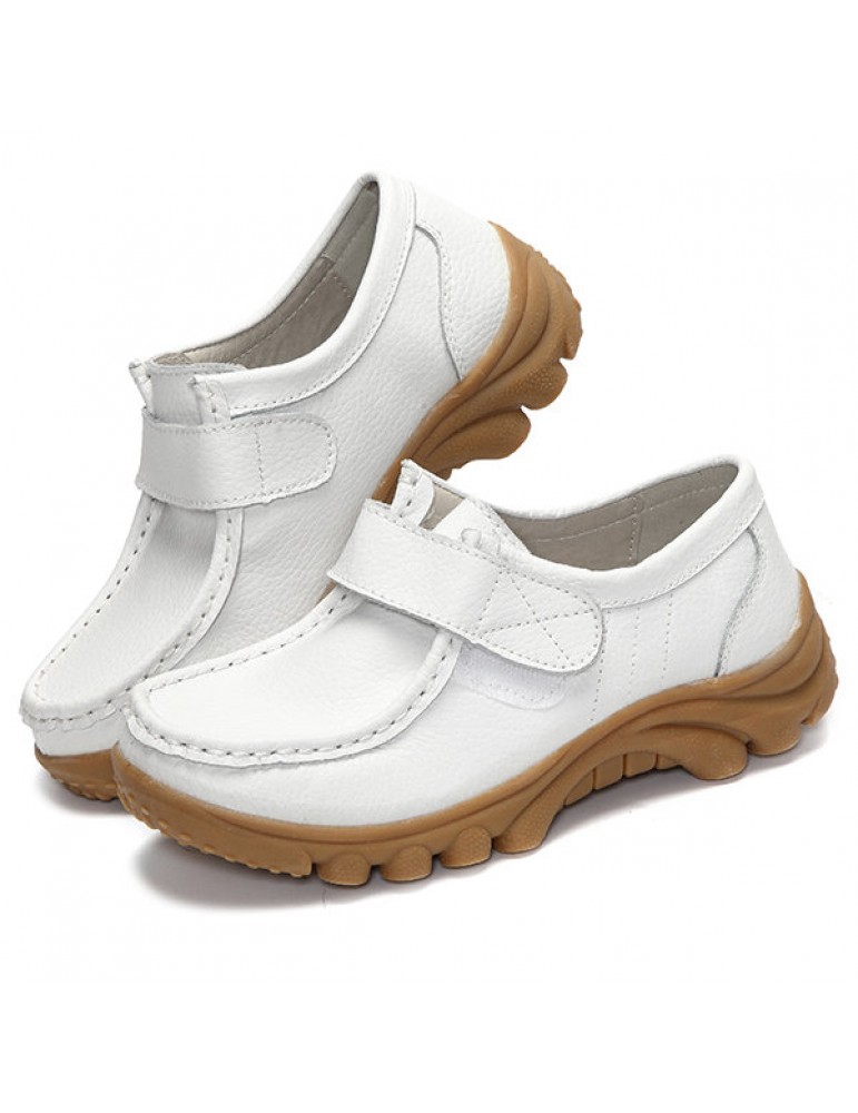 Big Size Hook Loop Casual Leather Flat Sport Soft Comfortable Shoes For Women