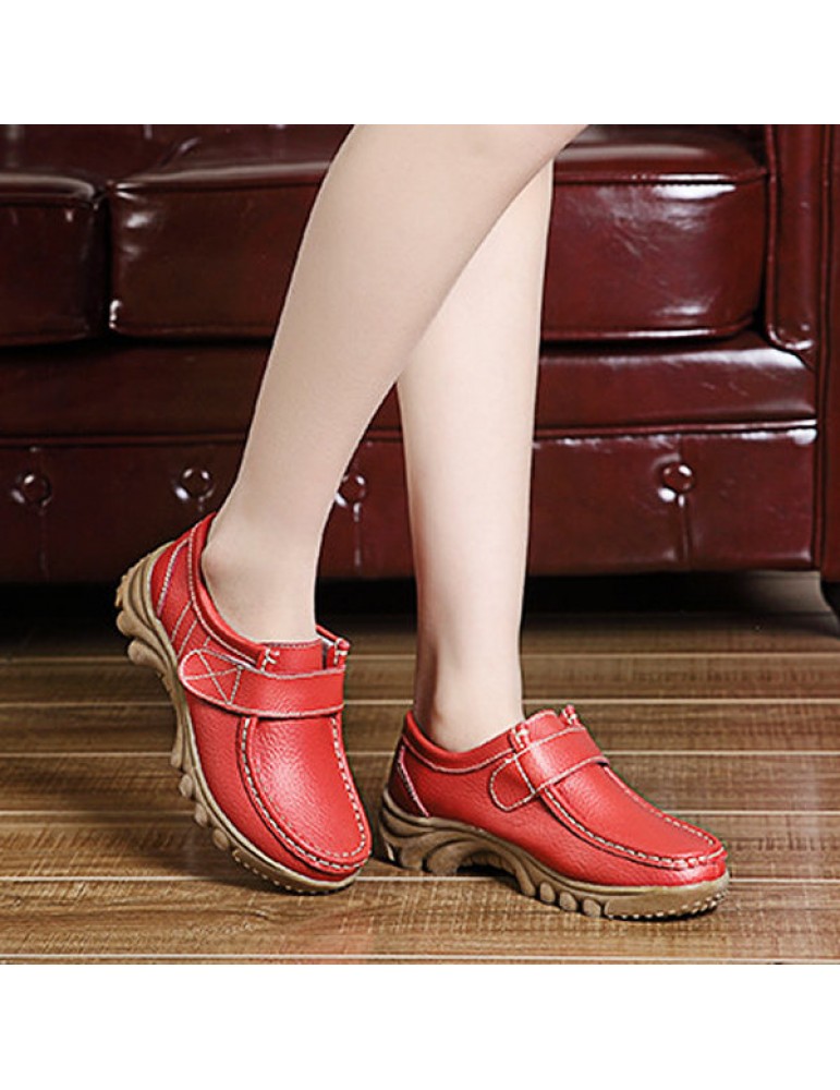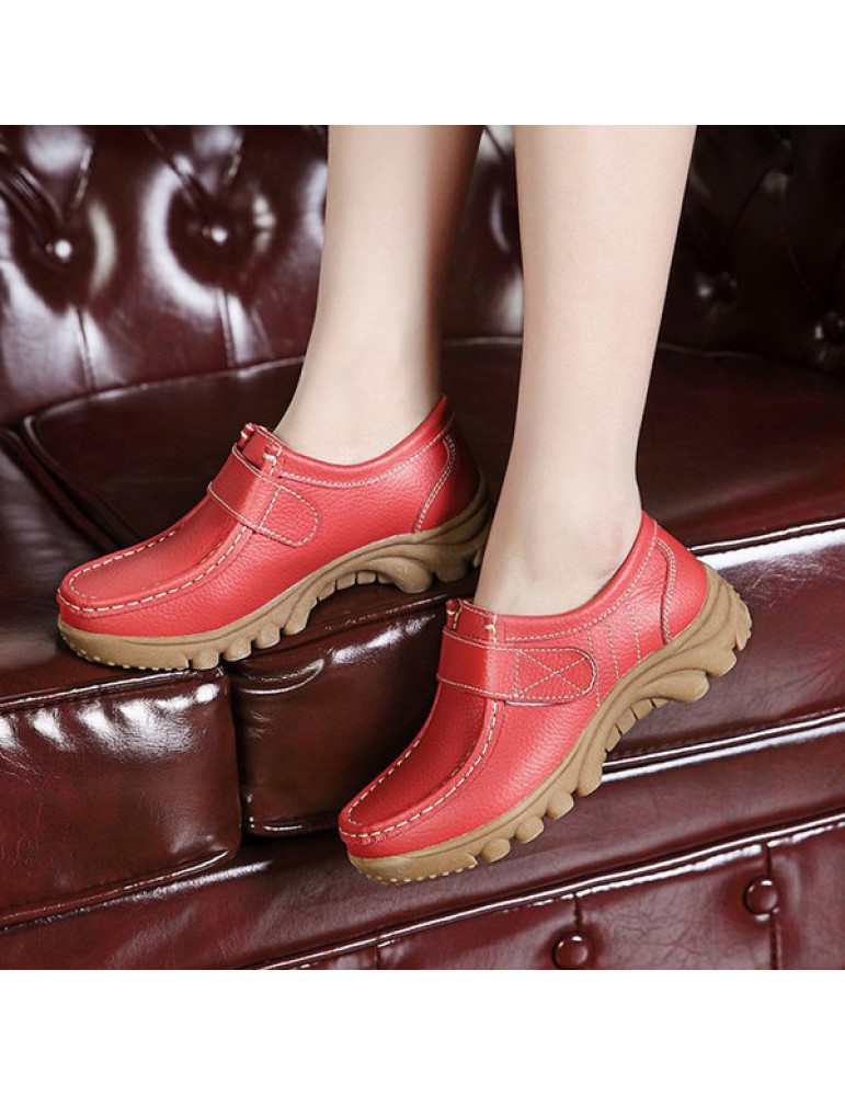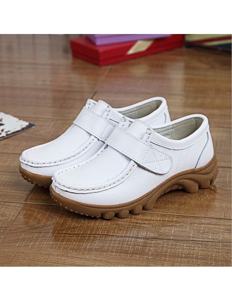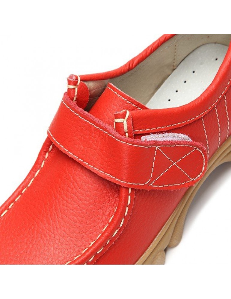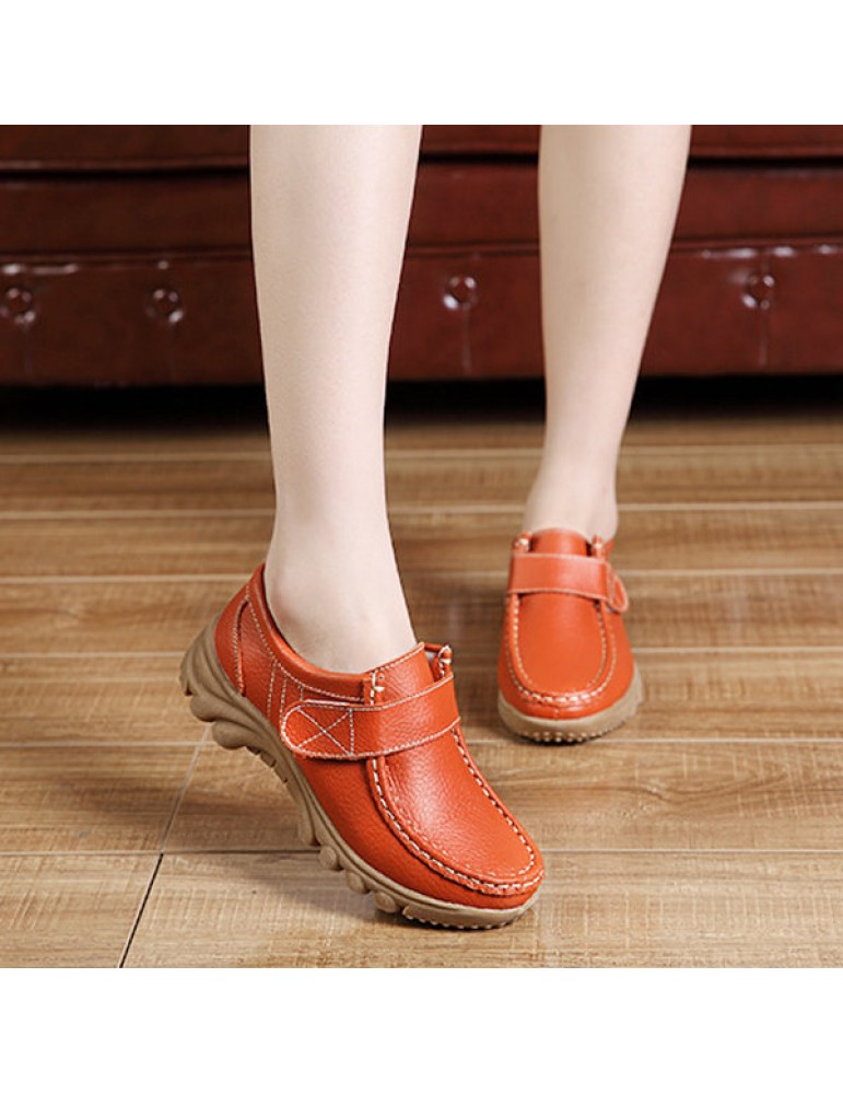 Big Size Hook Loop Casual Leather Flat Sport Soft Comfortable Shoes For Women