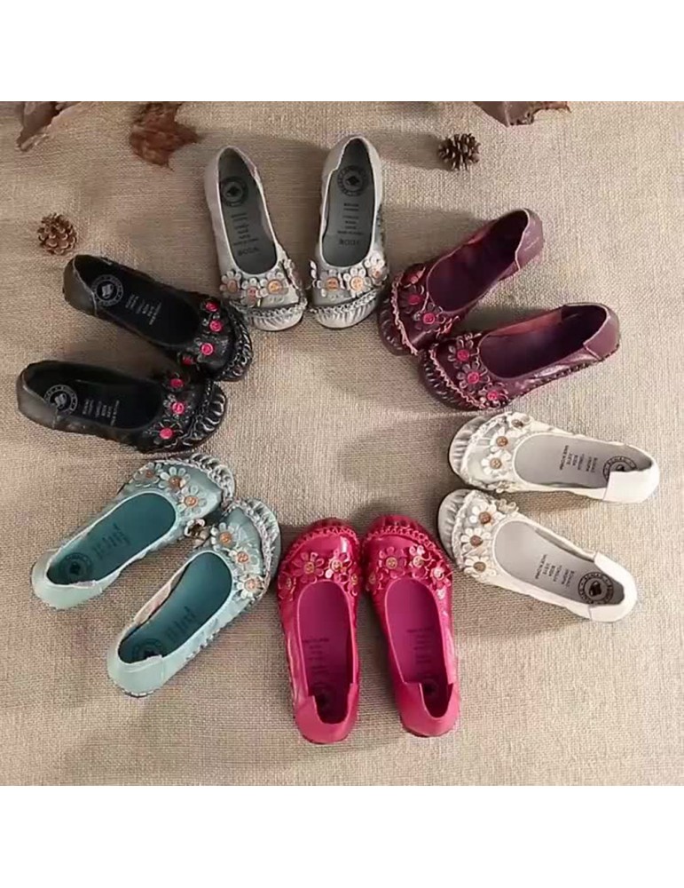 Flower Handmade Stitching Comfortable Vintage Flat Loafers