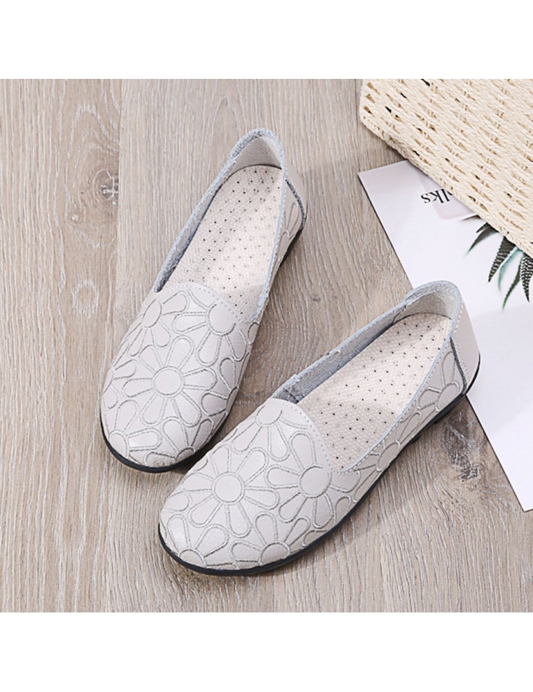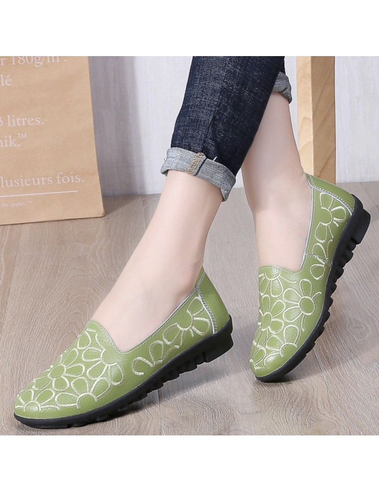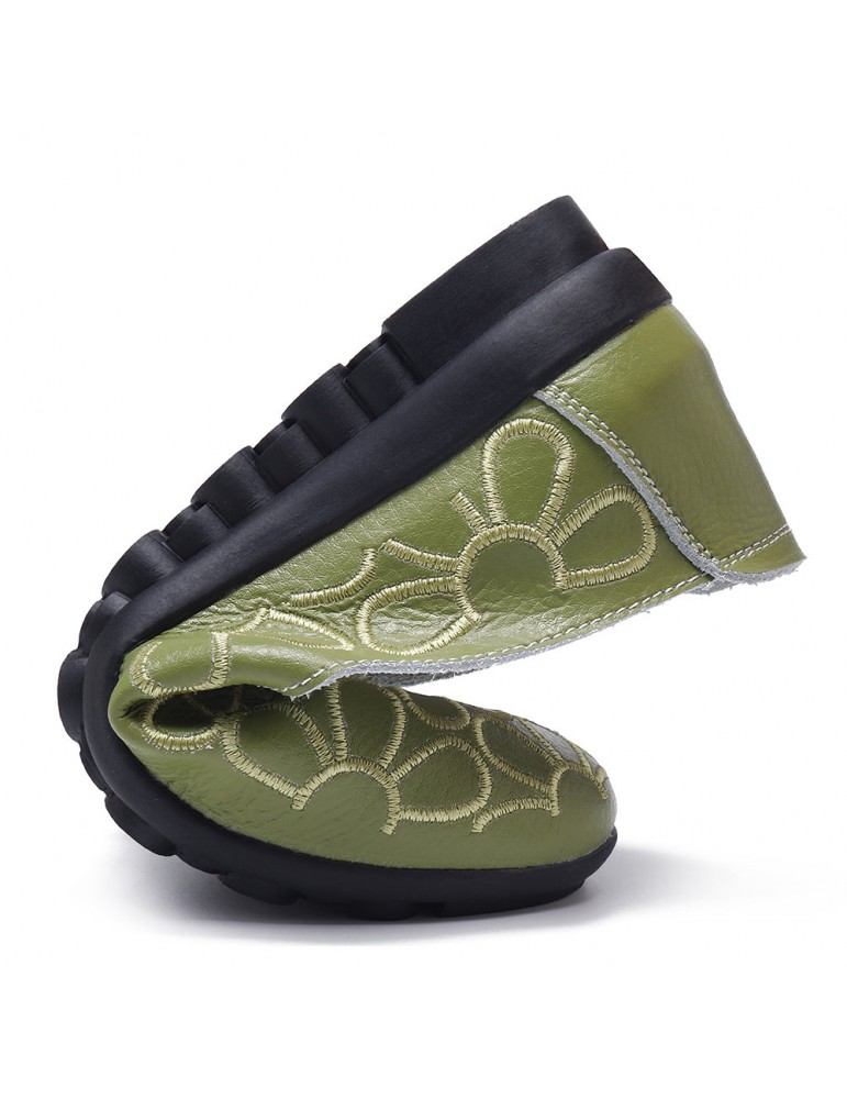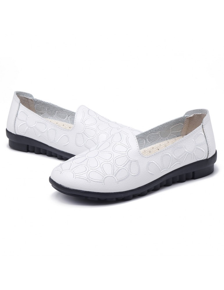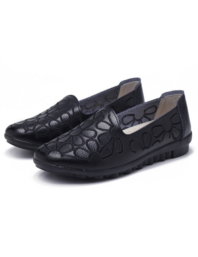 Women Casual Flowers Round Toe Genuine Leather Flats