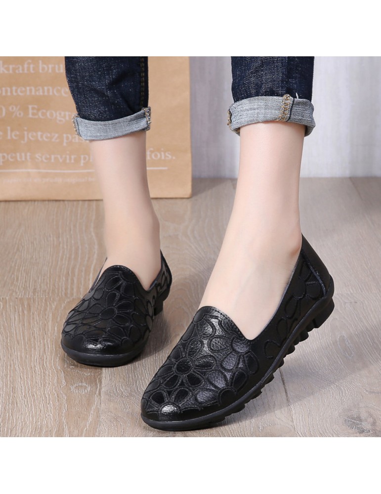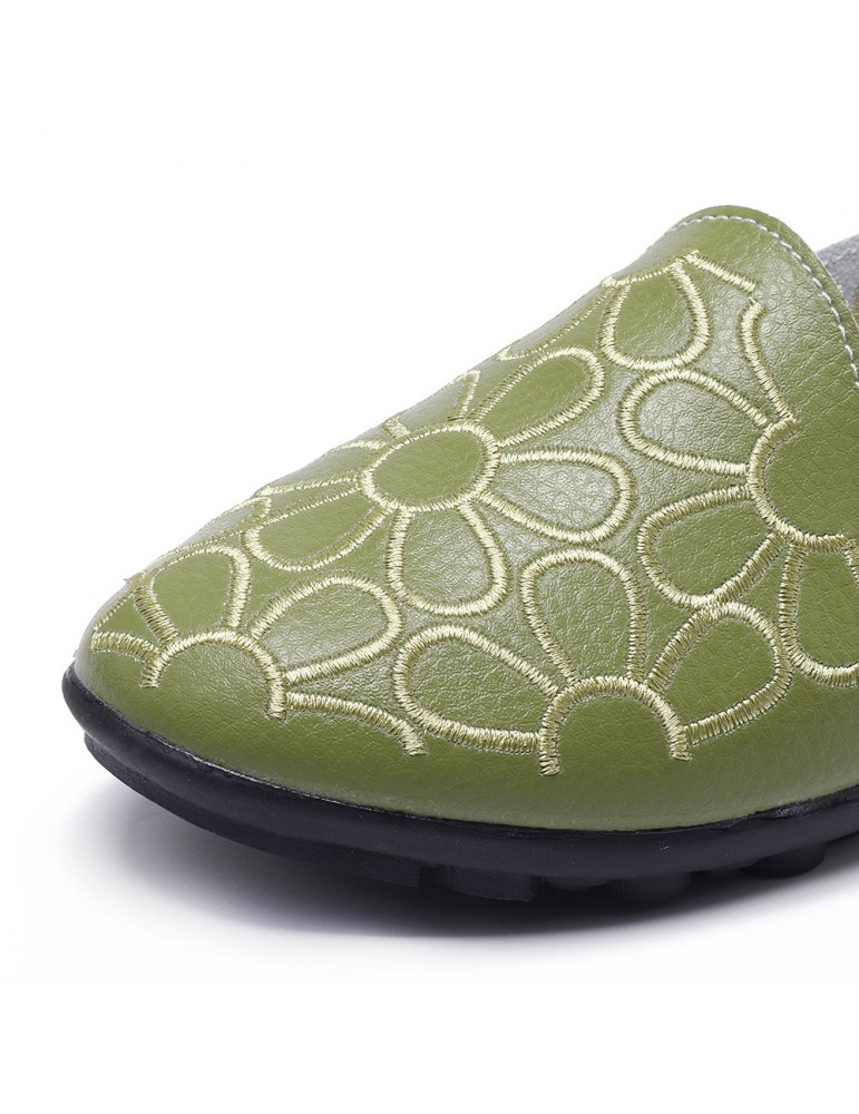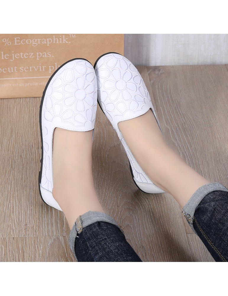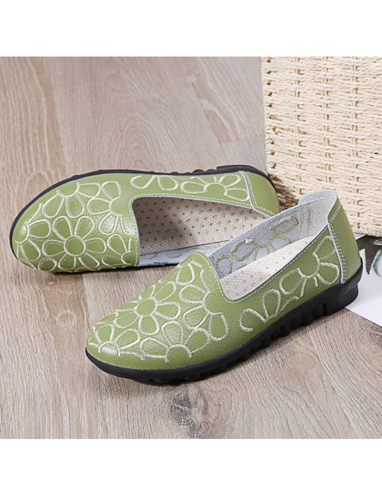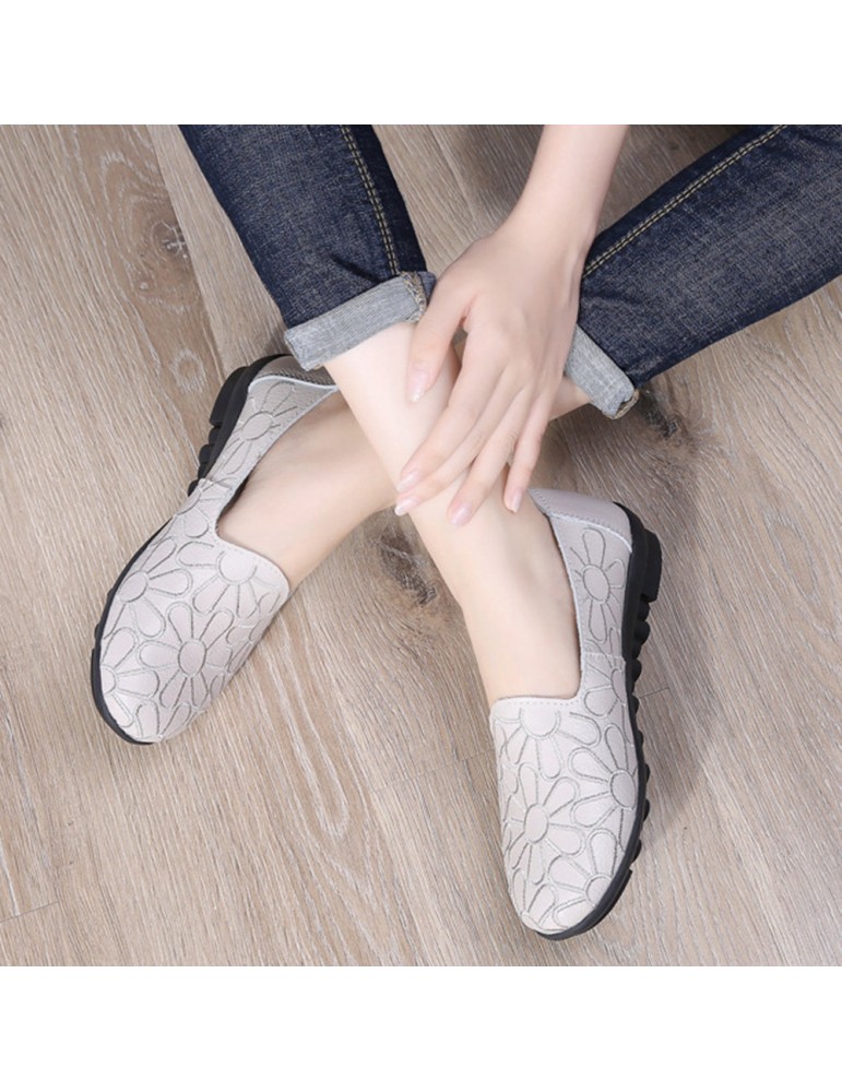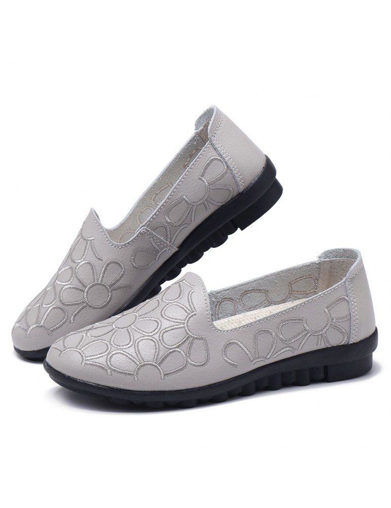Women Casual Flowers Round Toe Genuine Leather Flats