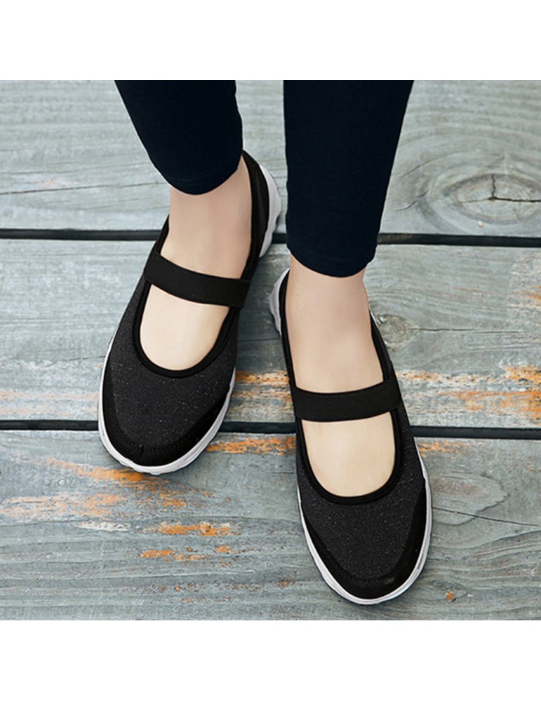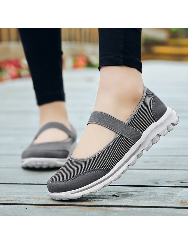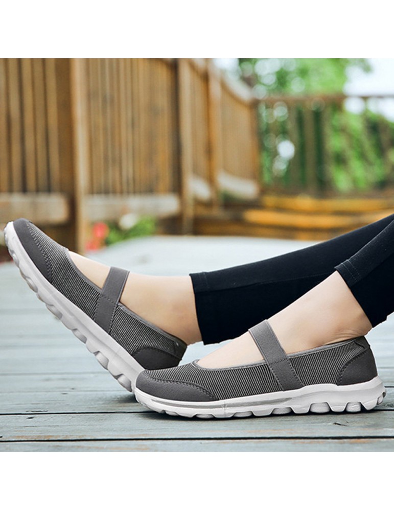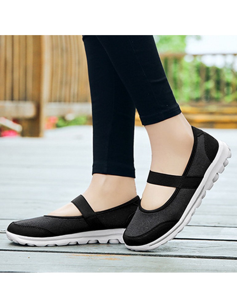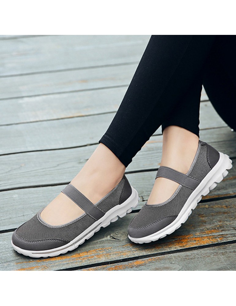 Elastic Band Breathable Mesh Casual Walking Flat Shoes