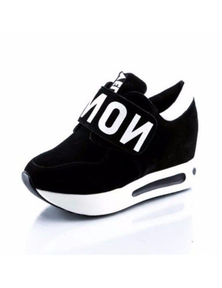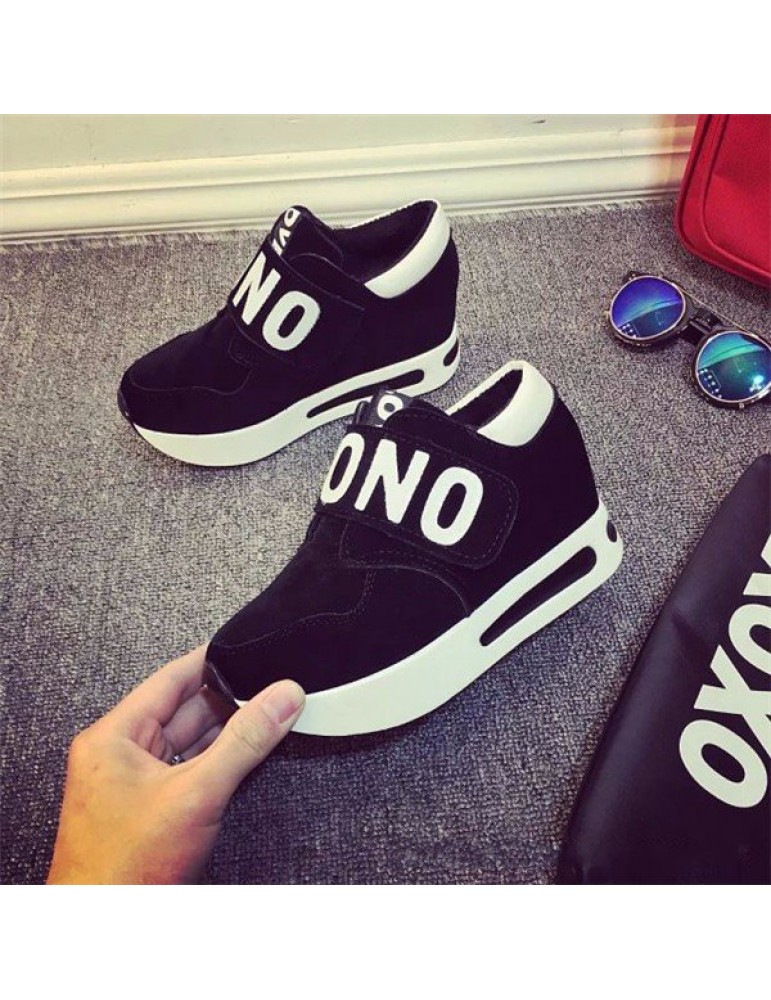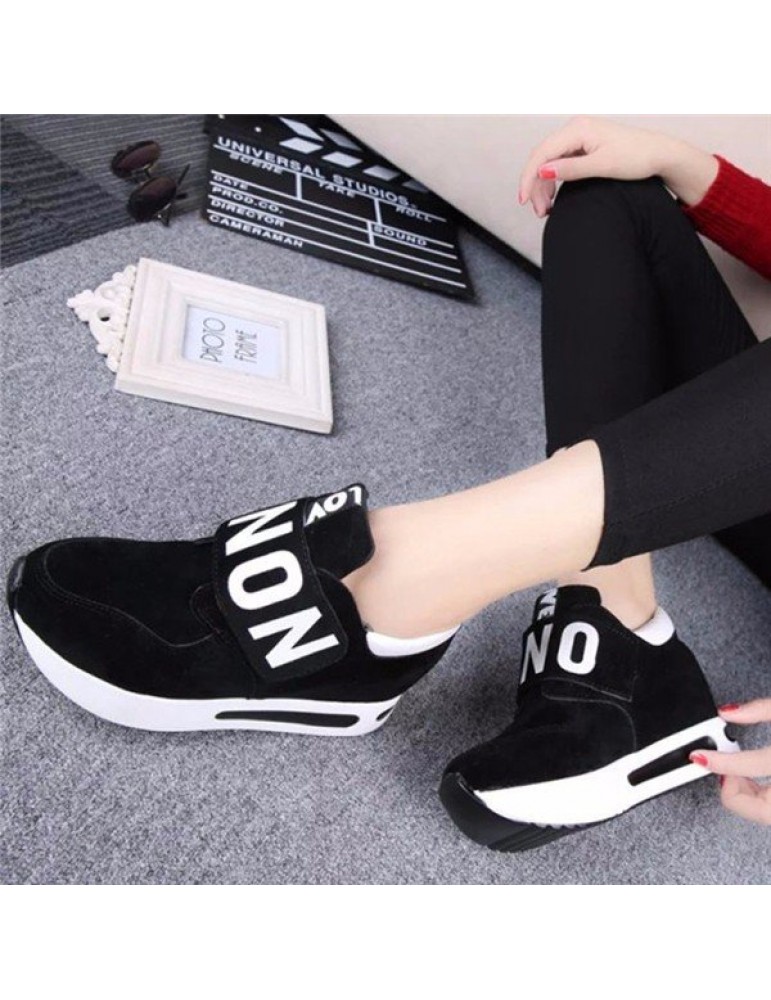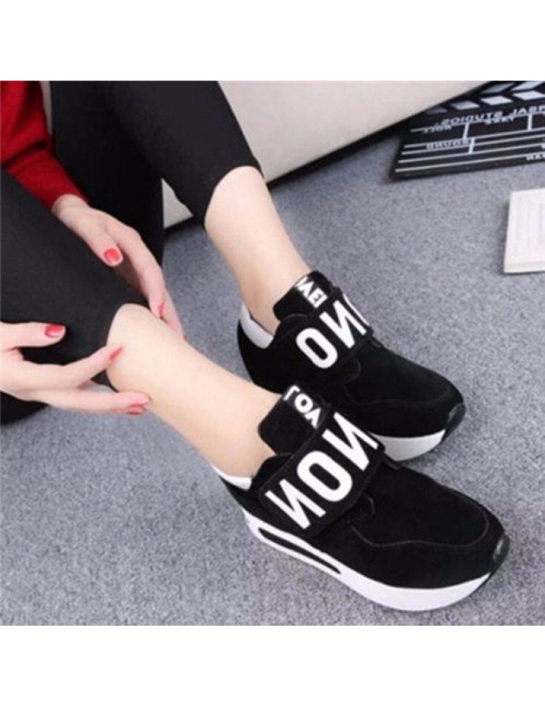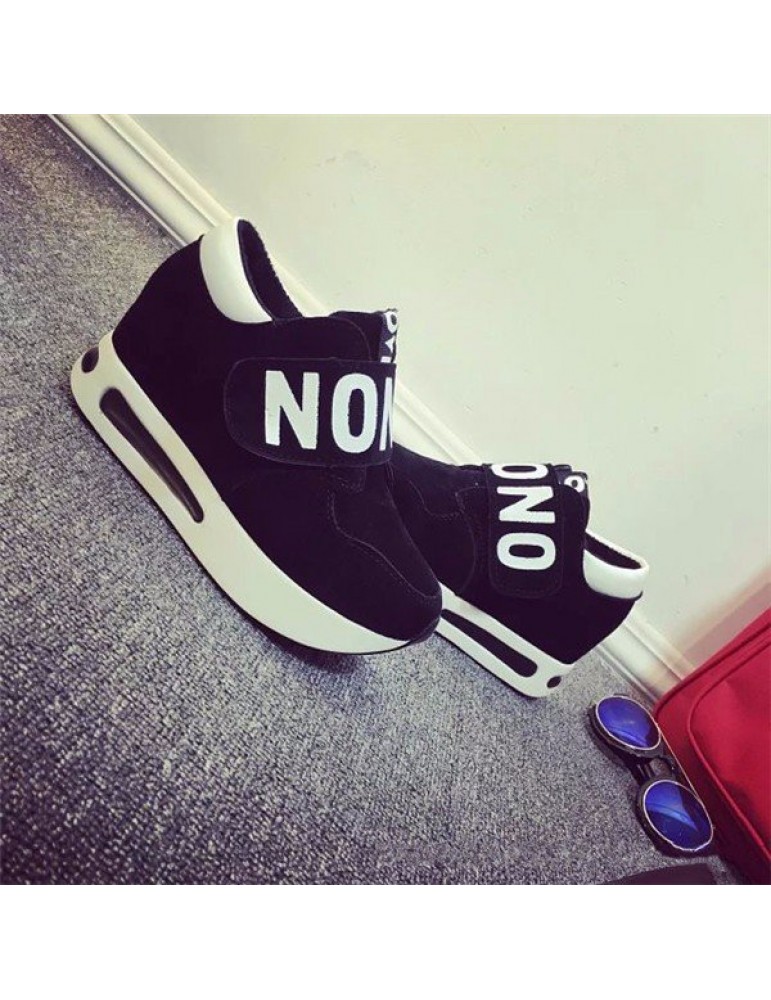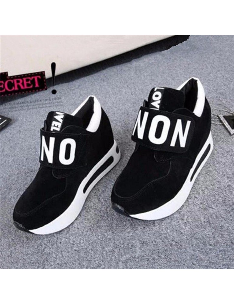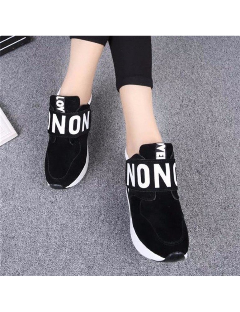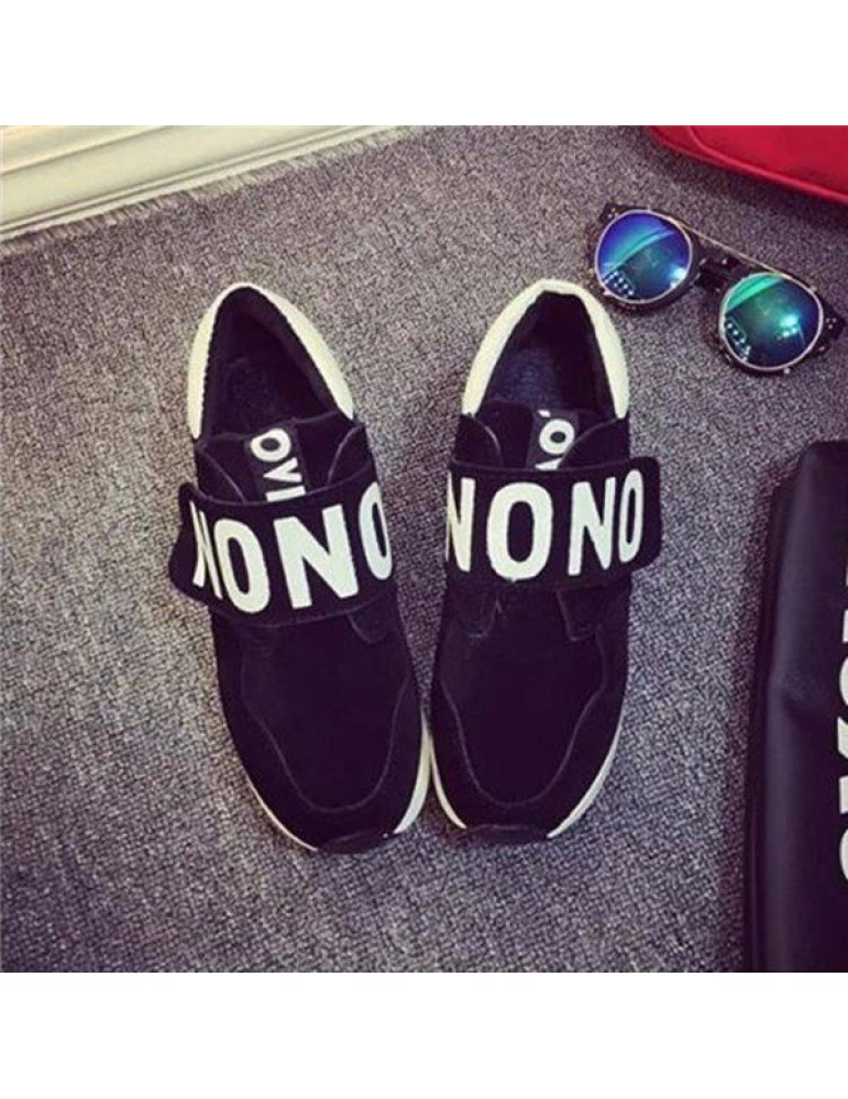 Black White Letter Cloth Hook Loop Flat Running Sport Casual Shoes