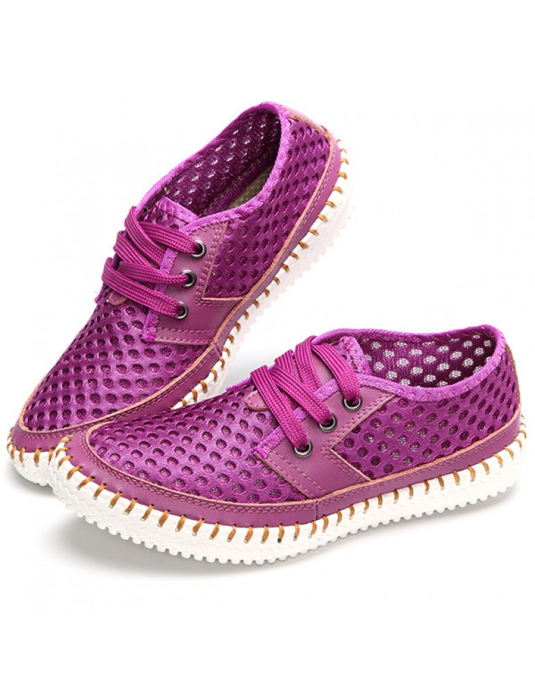 Breathable Mesh Lace Up Soft Sole Flat Casual Shoes For Women