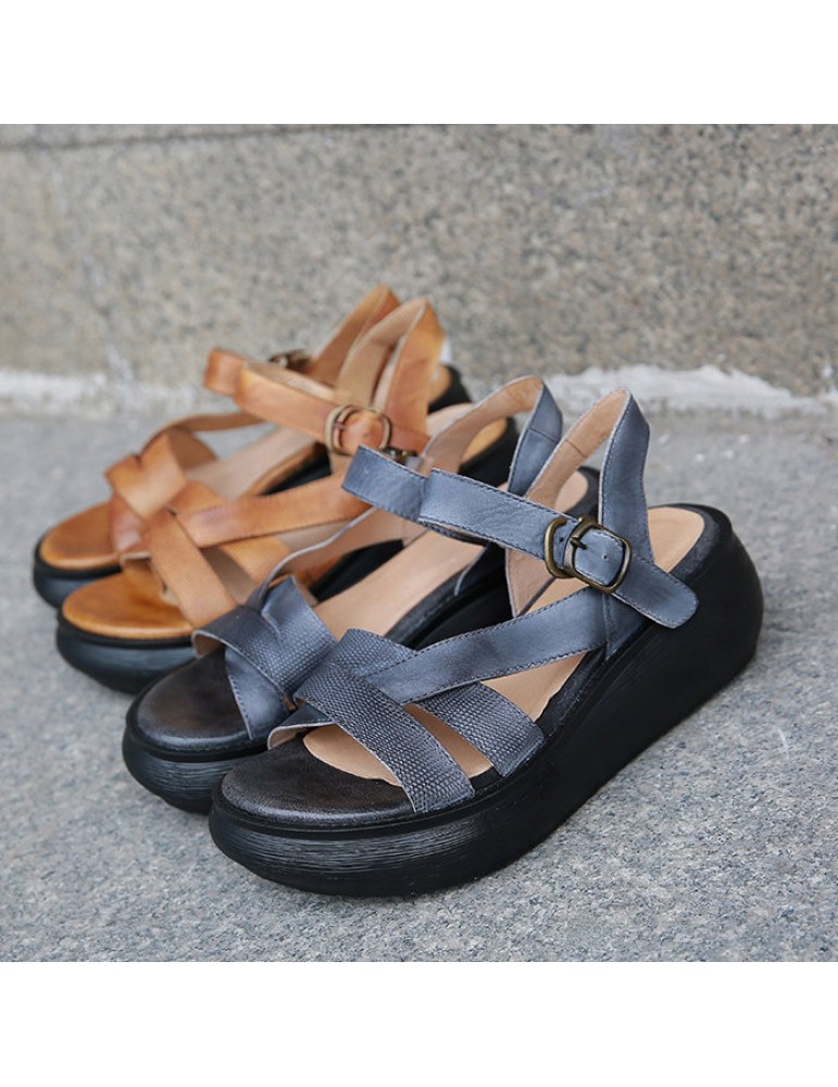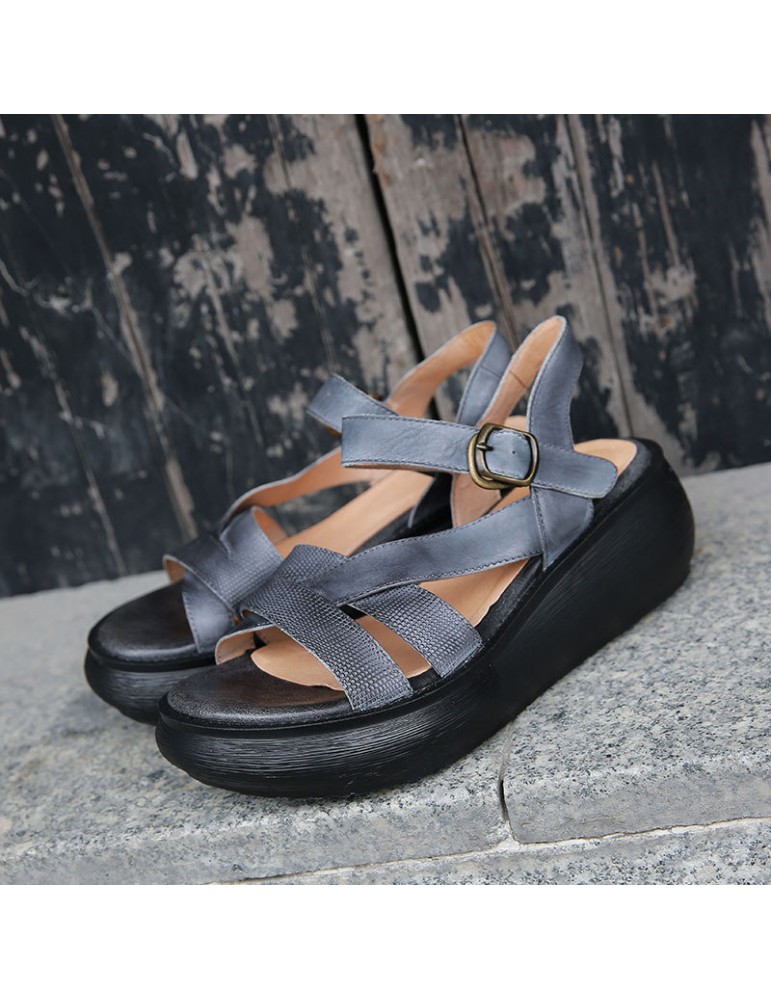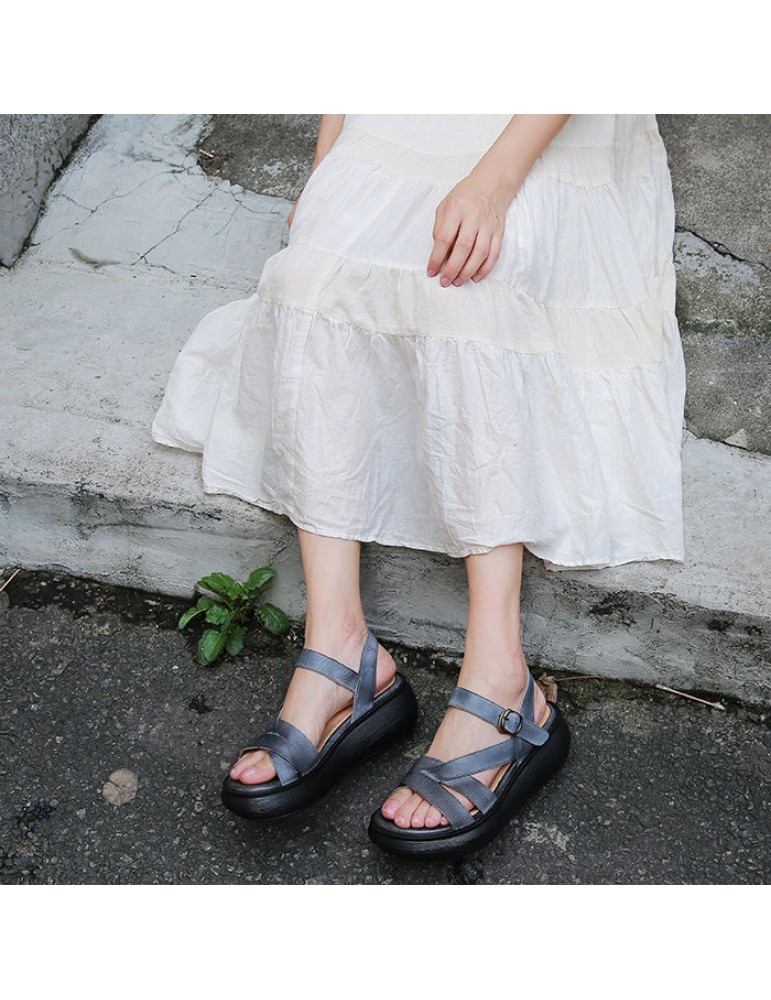 Strappy Buckle Platform Vintage Sandals