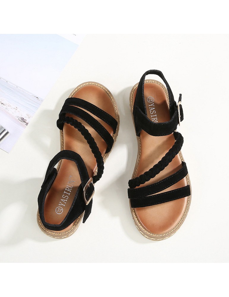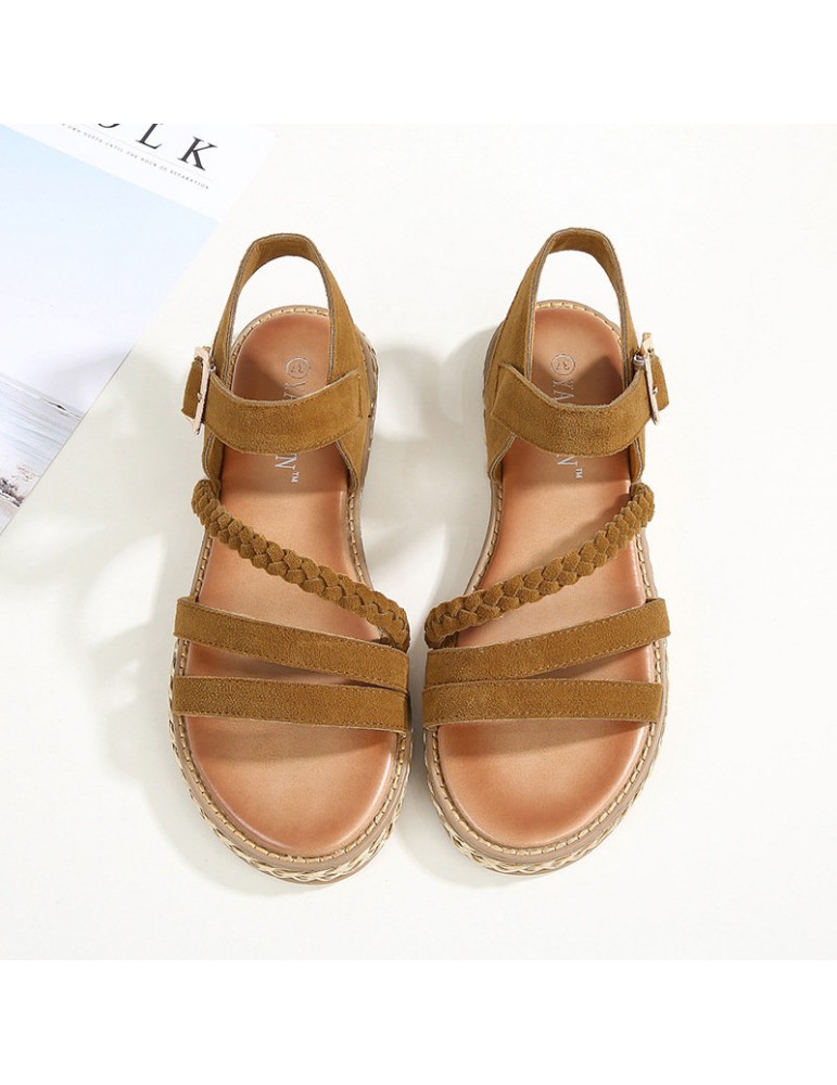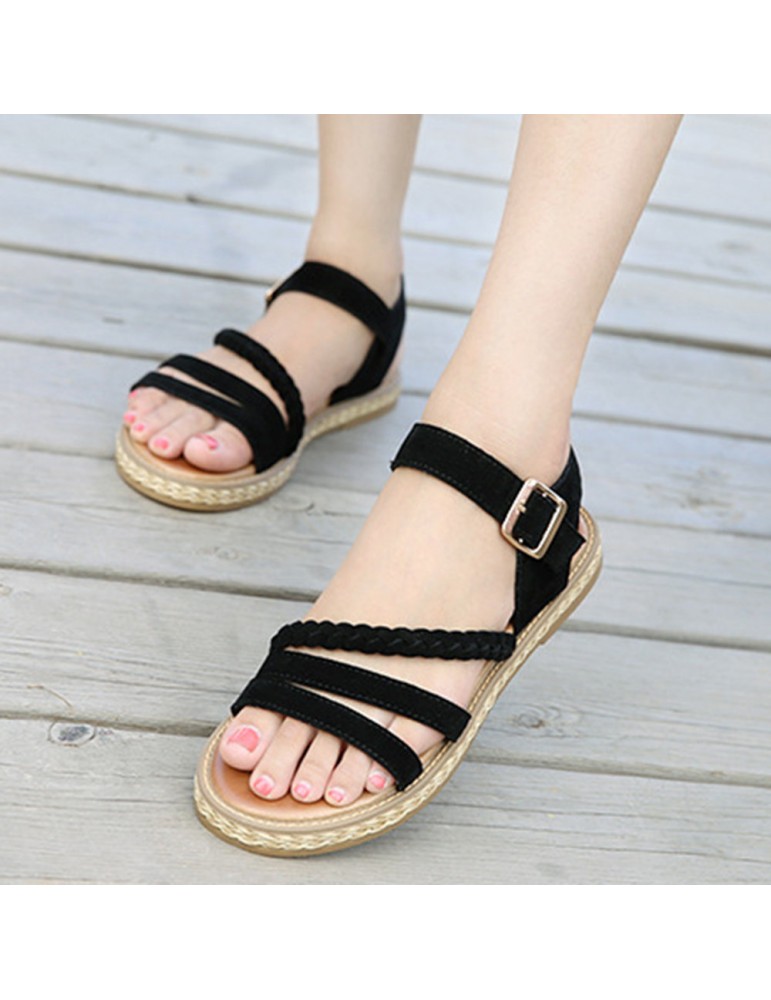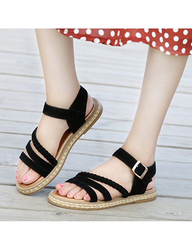 Suede Metal Buckle Opened Toe Flat Summer Sandals