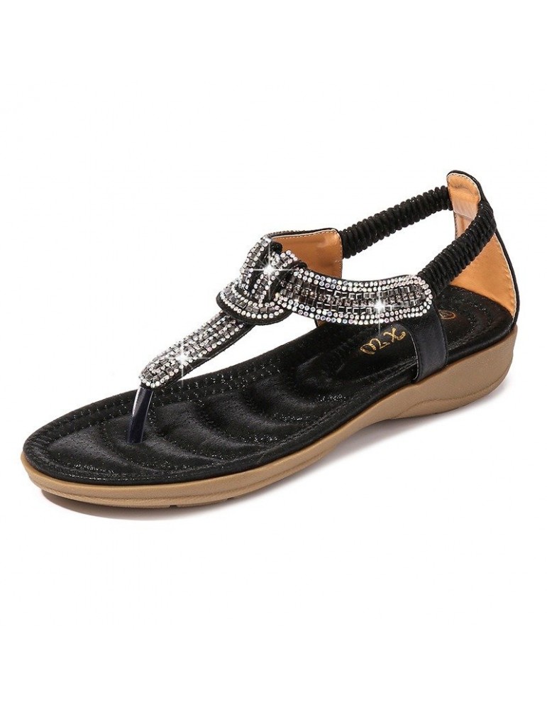 Rhinestone Clip Toe T Shape Slip On Beach Casual Flat Sandals