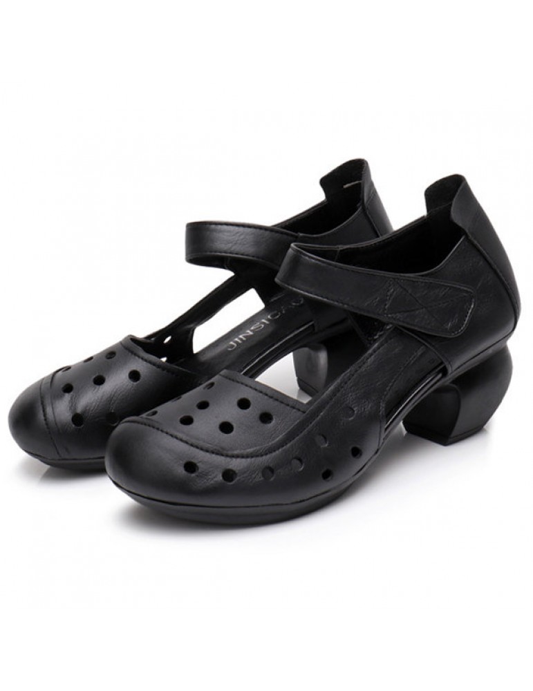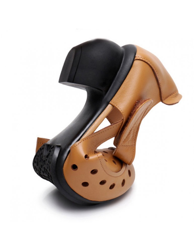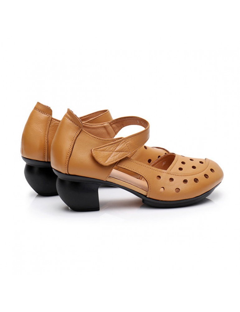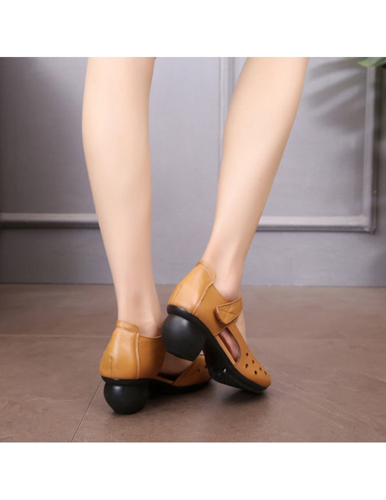 Leather Retro Pure Color Mid Heel Soft Pumps
