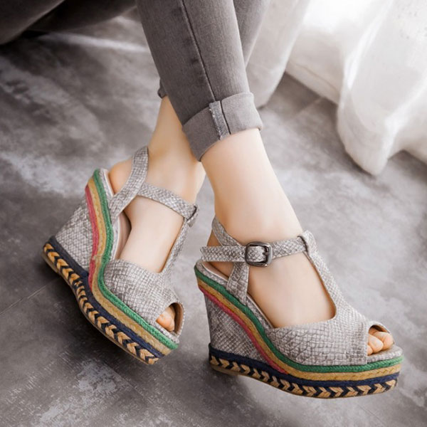 Extra Size Colorful Peep Toe Lady Platform Sandals