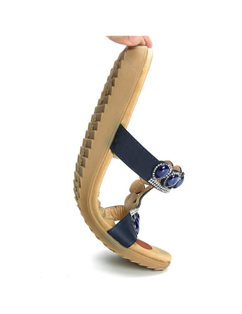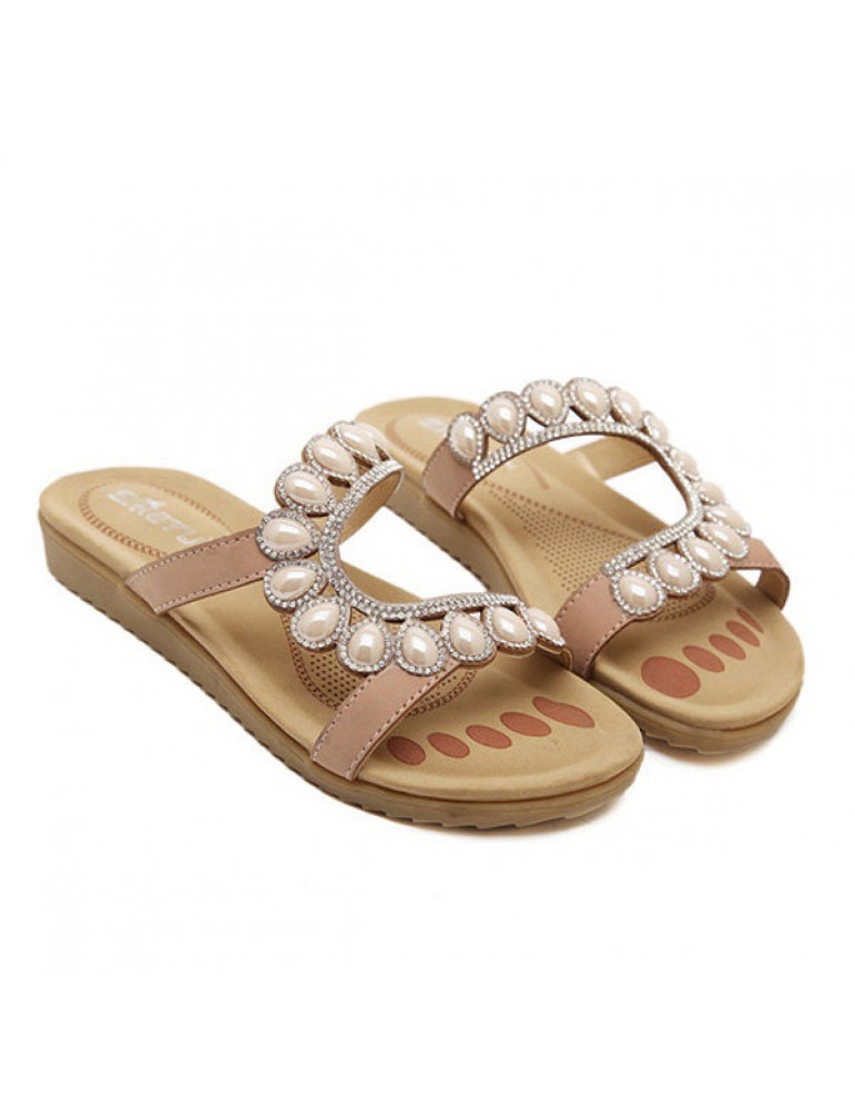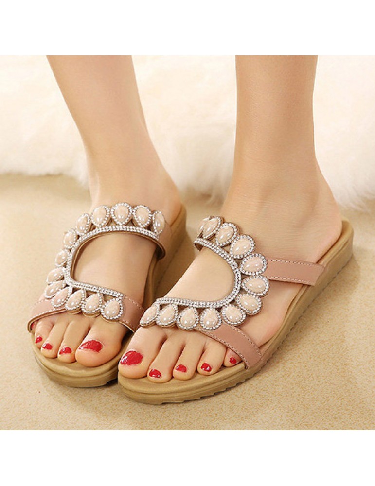 Bead Shiny Crystal Peep Toe Flat Lazy Sandals