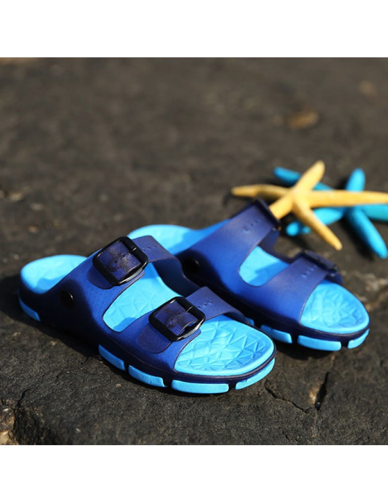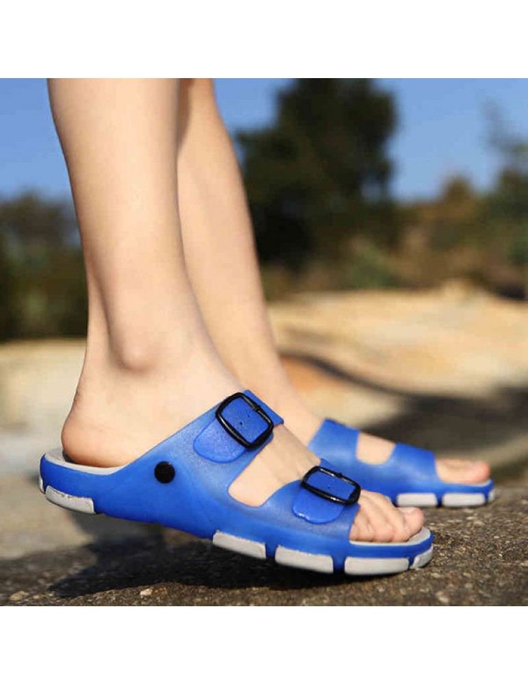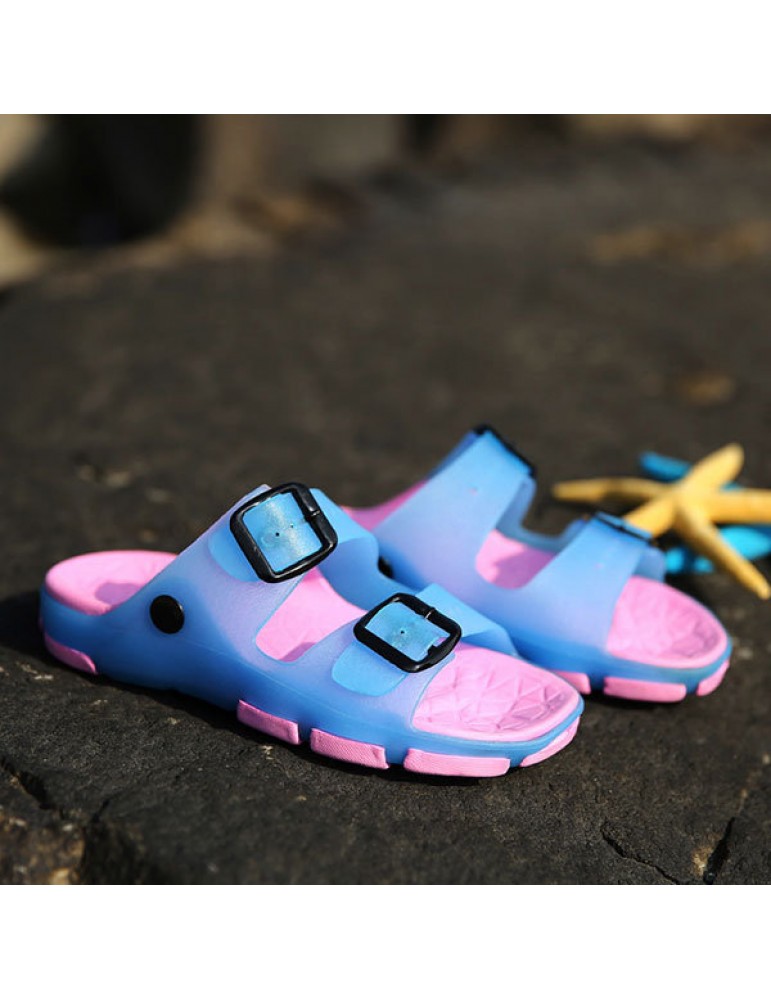 Big Size Double Buckle Color Match Slippers Comfortable Slip On Sandals