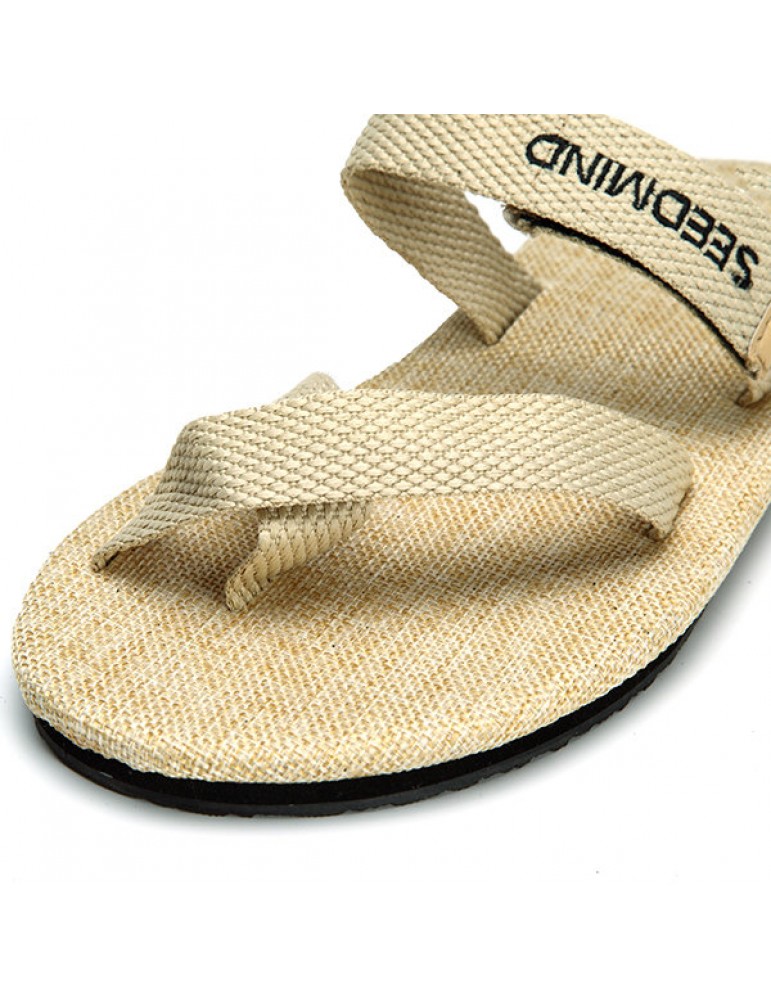 Big Size Flax Hook Loop Clip Toe Beach Casual Sandals