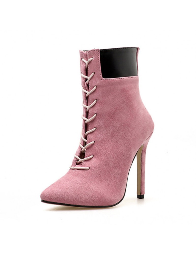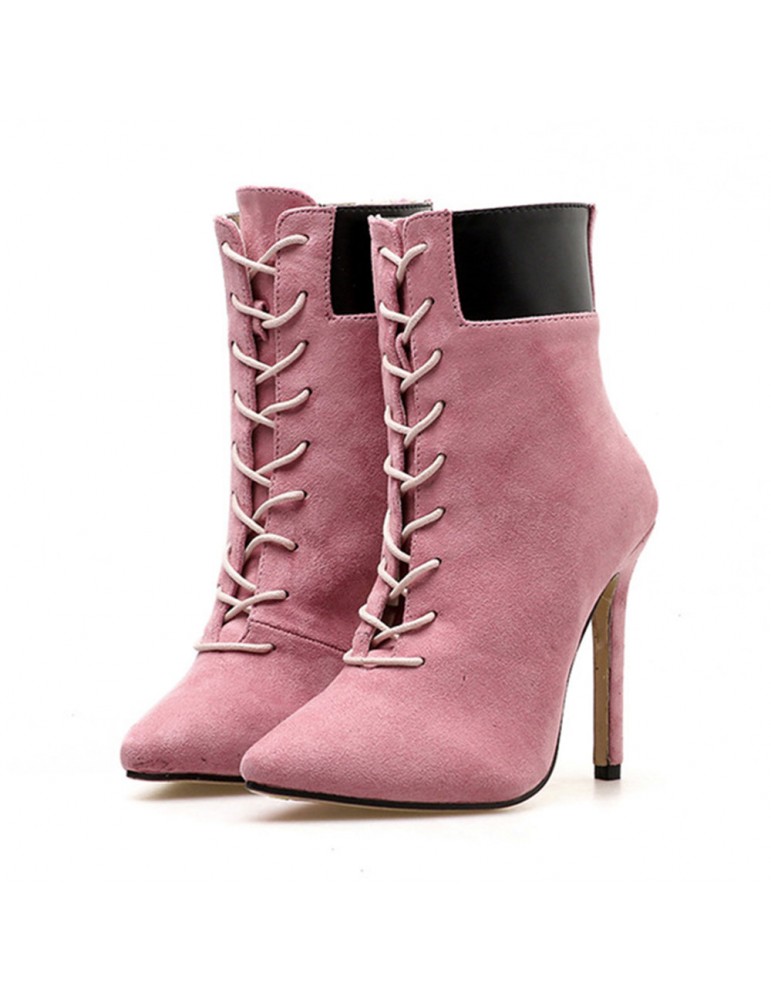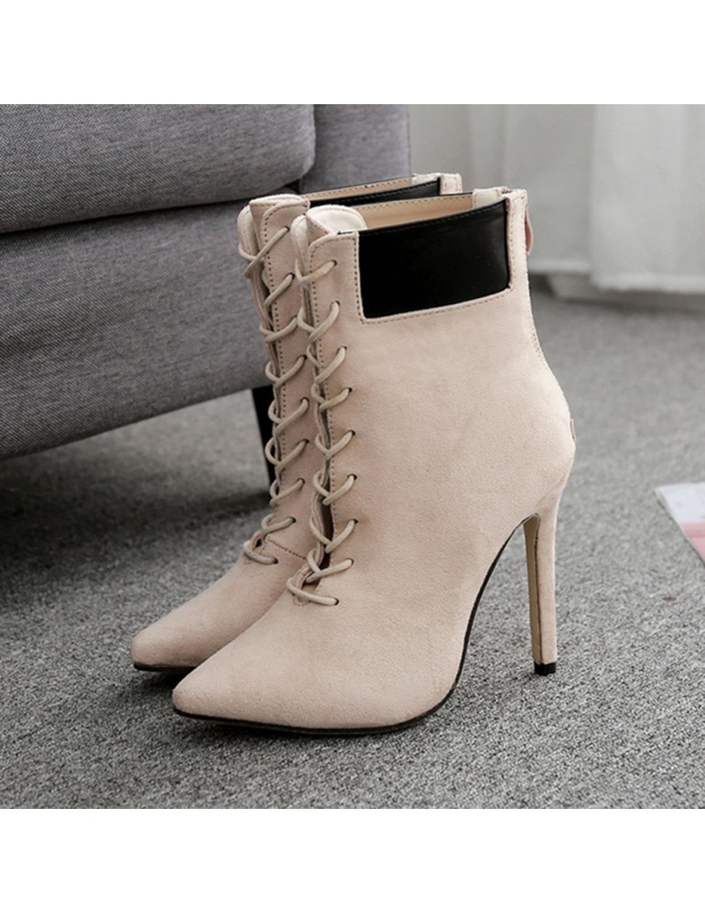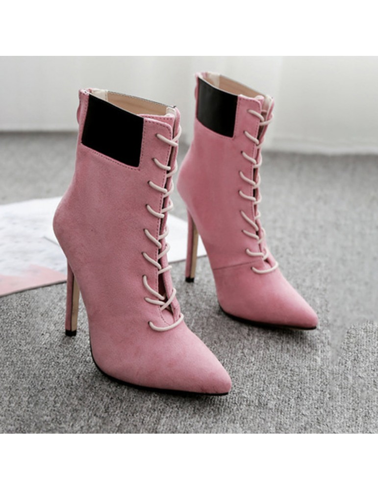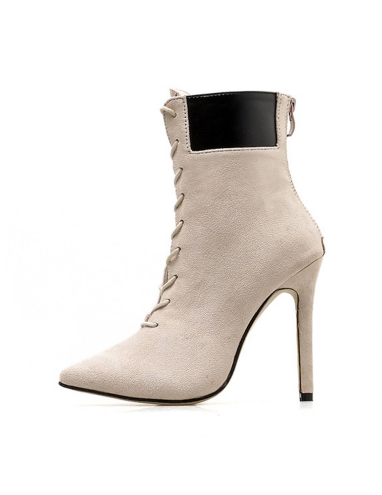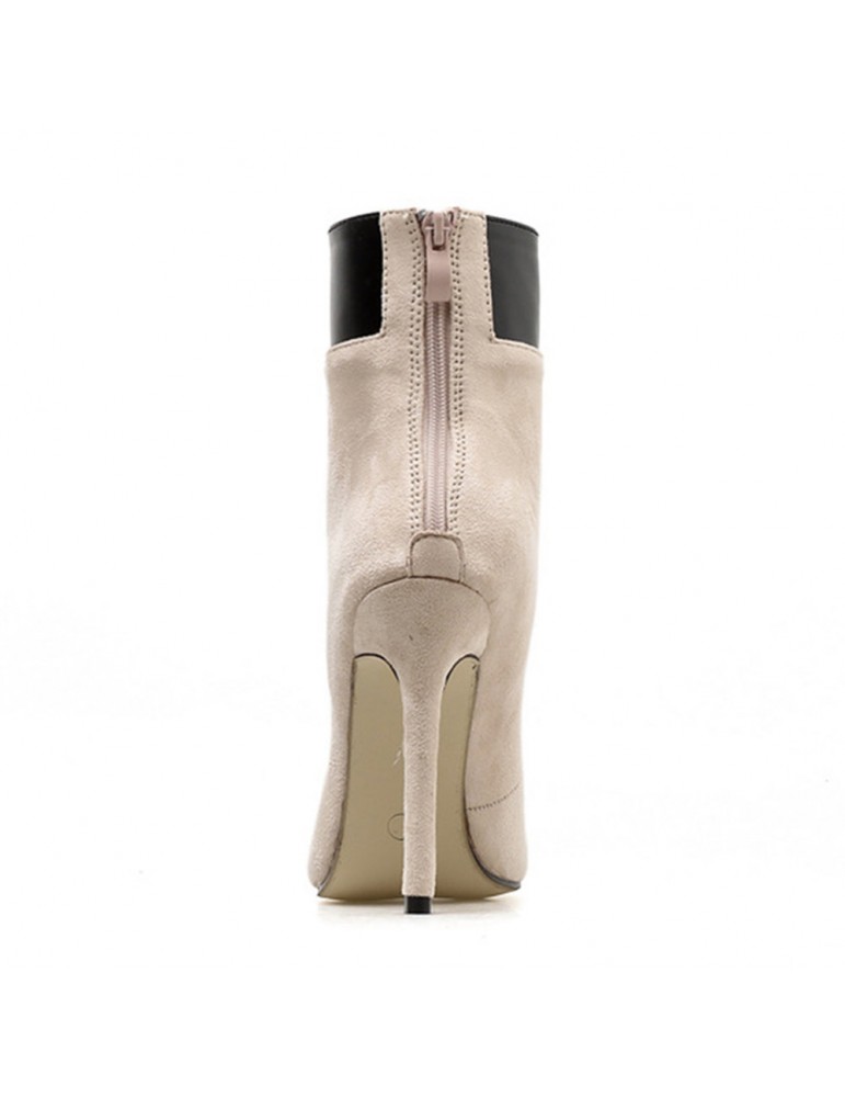 Leather Suede Stiletto Heel Zipper Boots