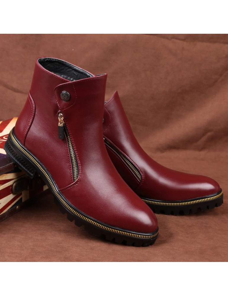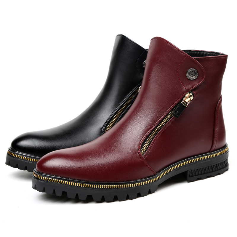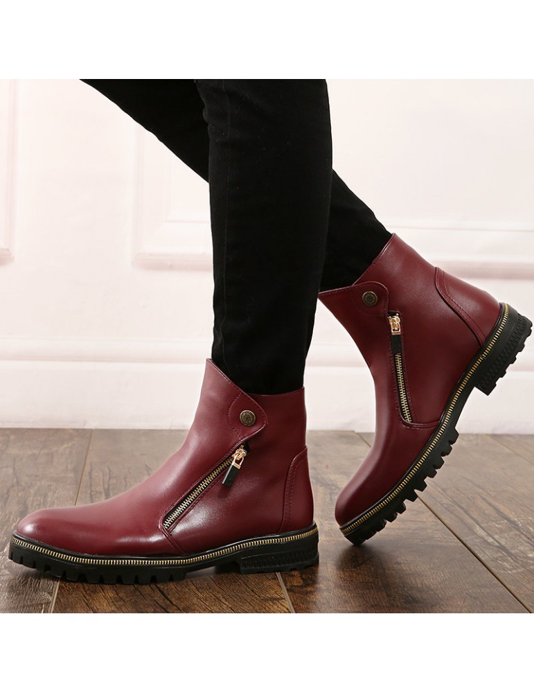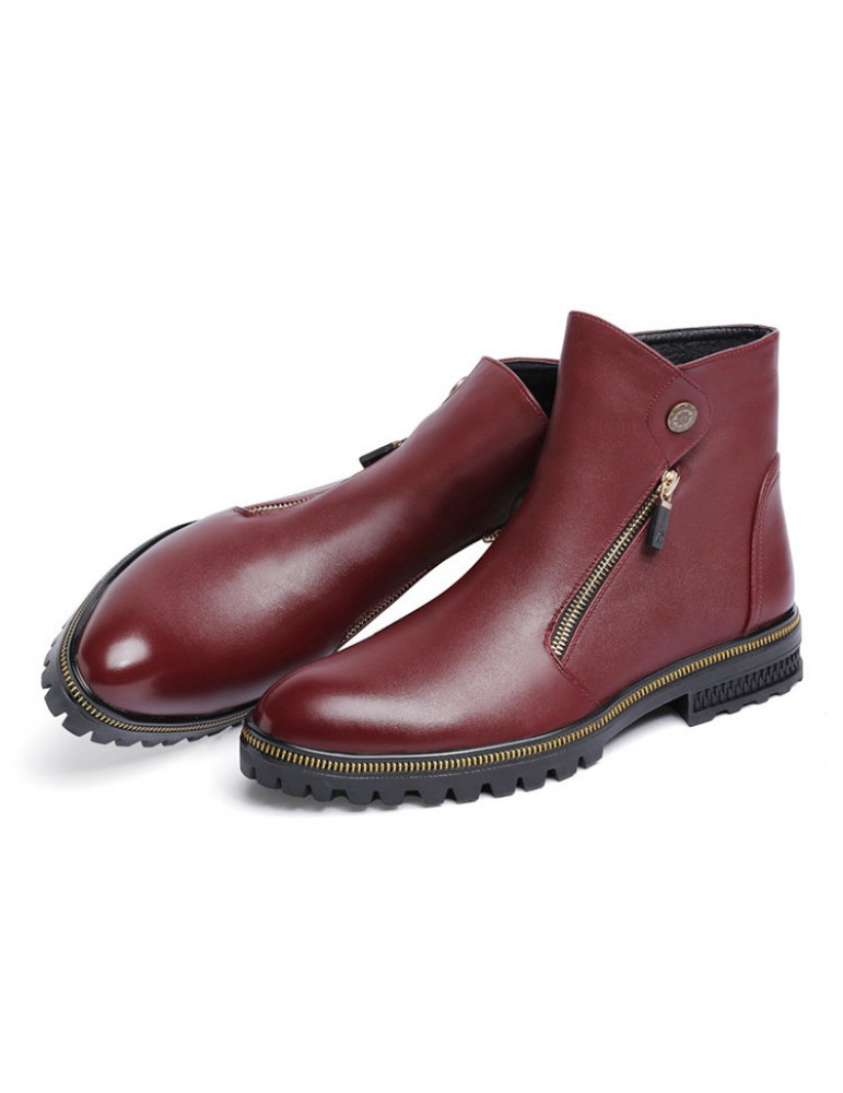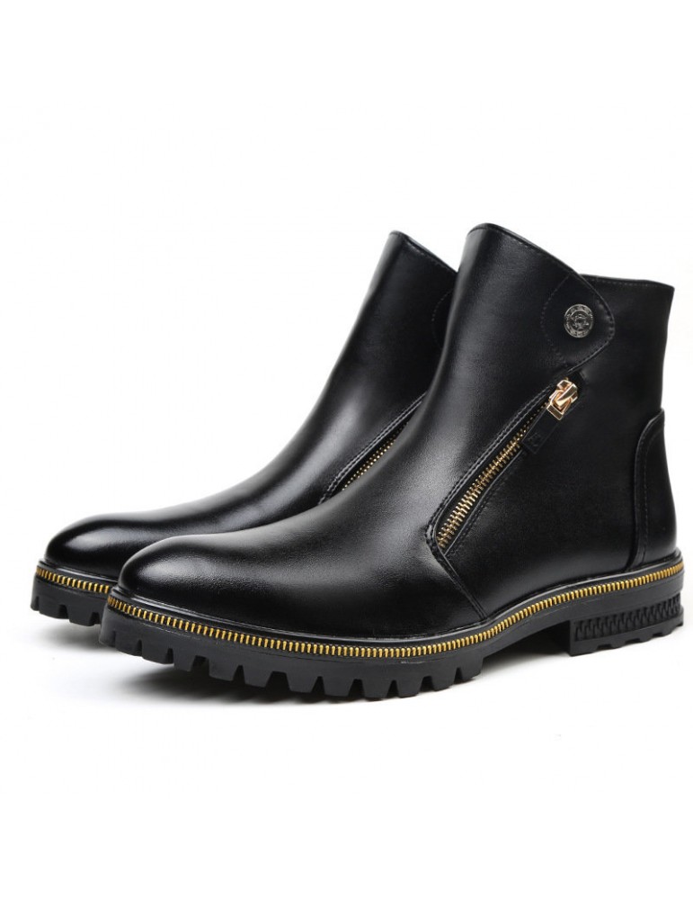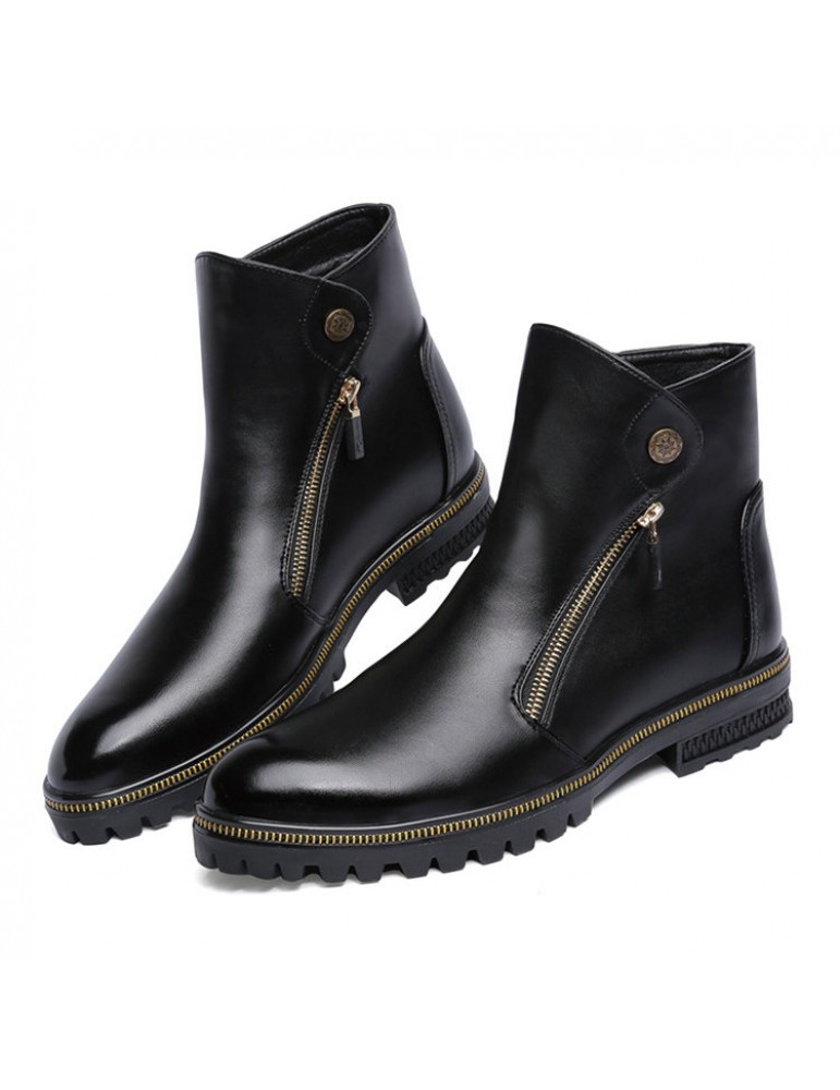 Men Round Toe Side Ziper Outdoor Wearable Leather Work Boots