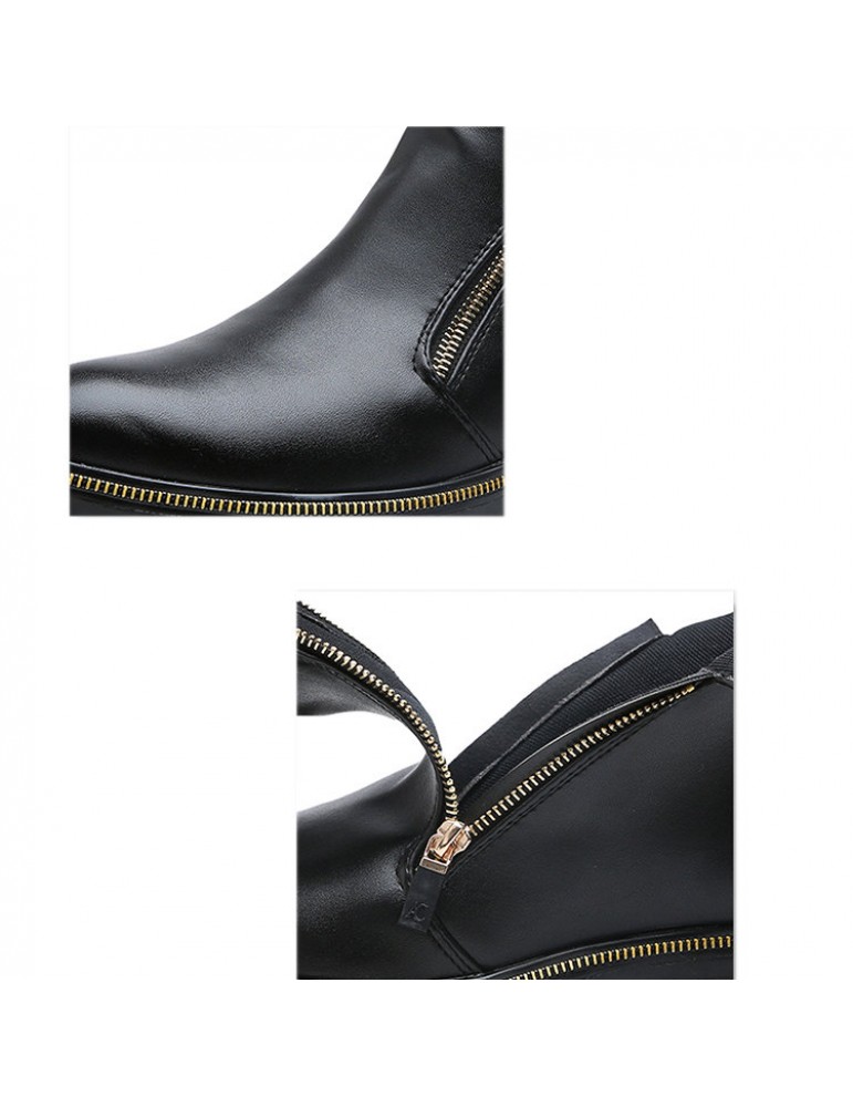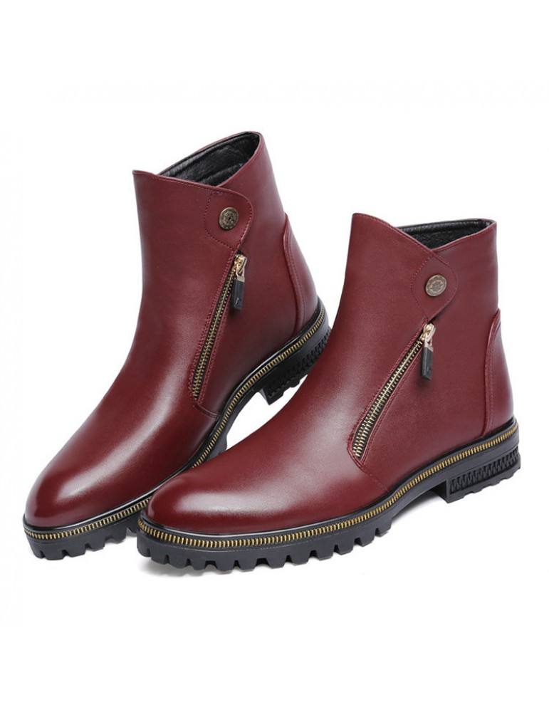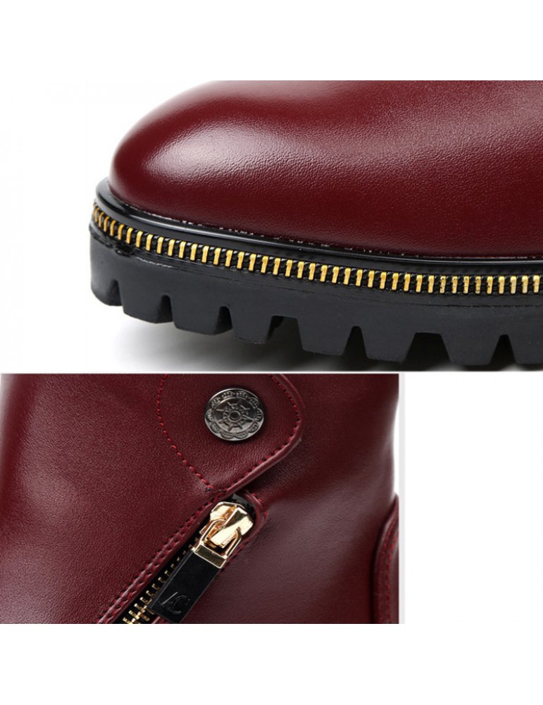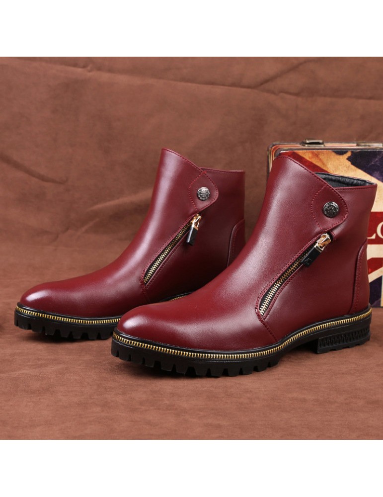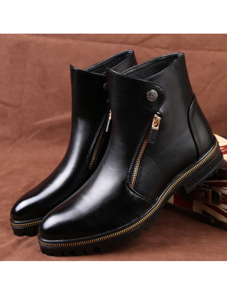 Men Round Toe Side Ziper Outdoor Wearable Leather Work Boots
