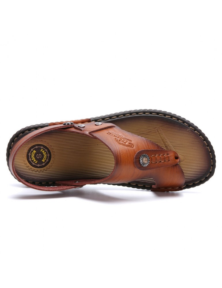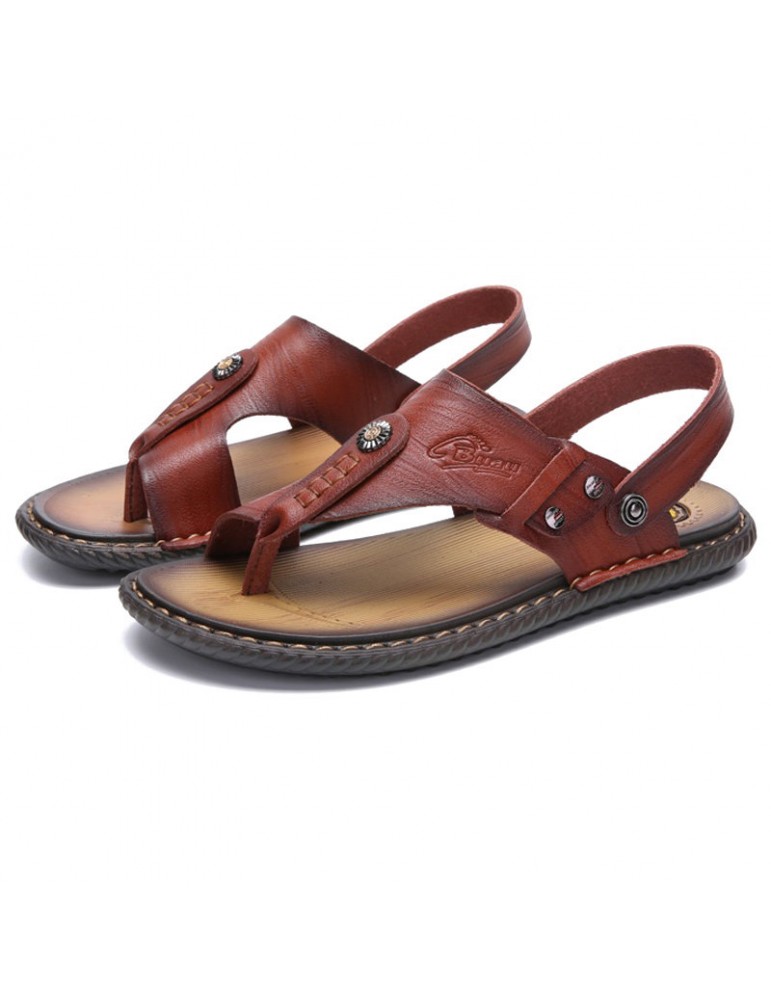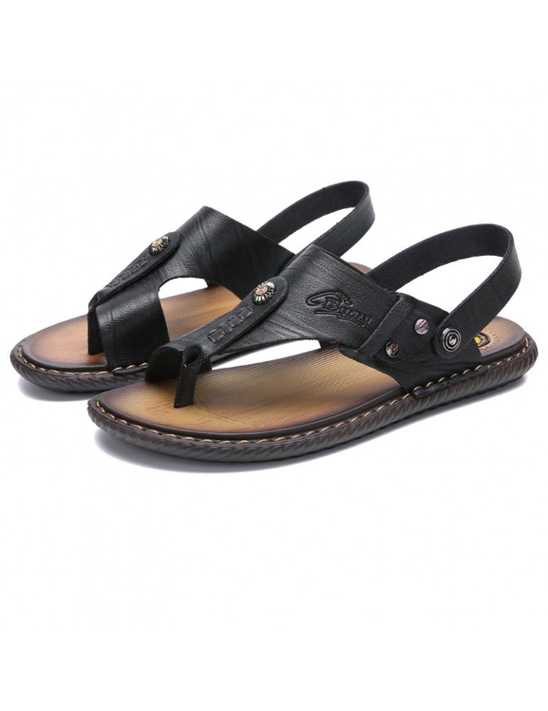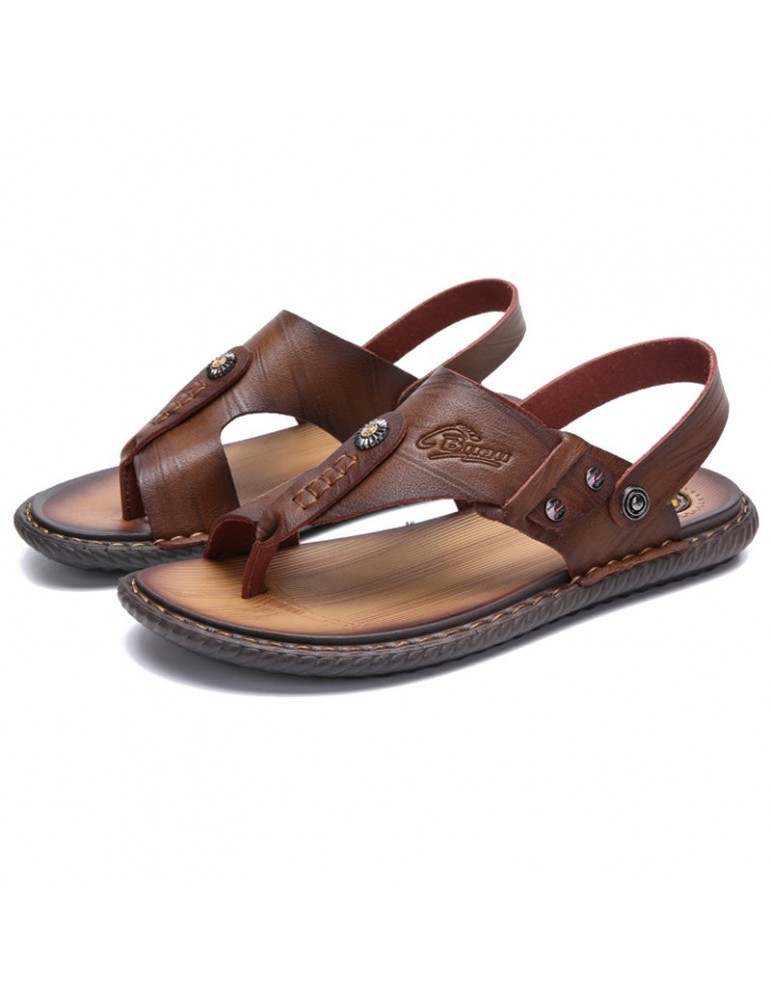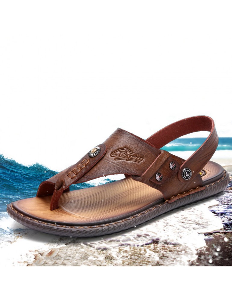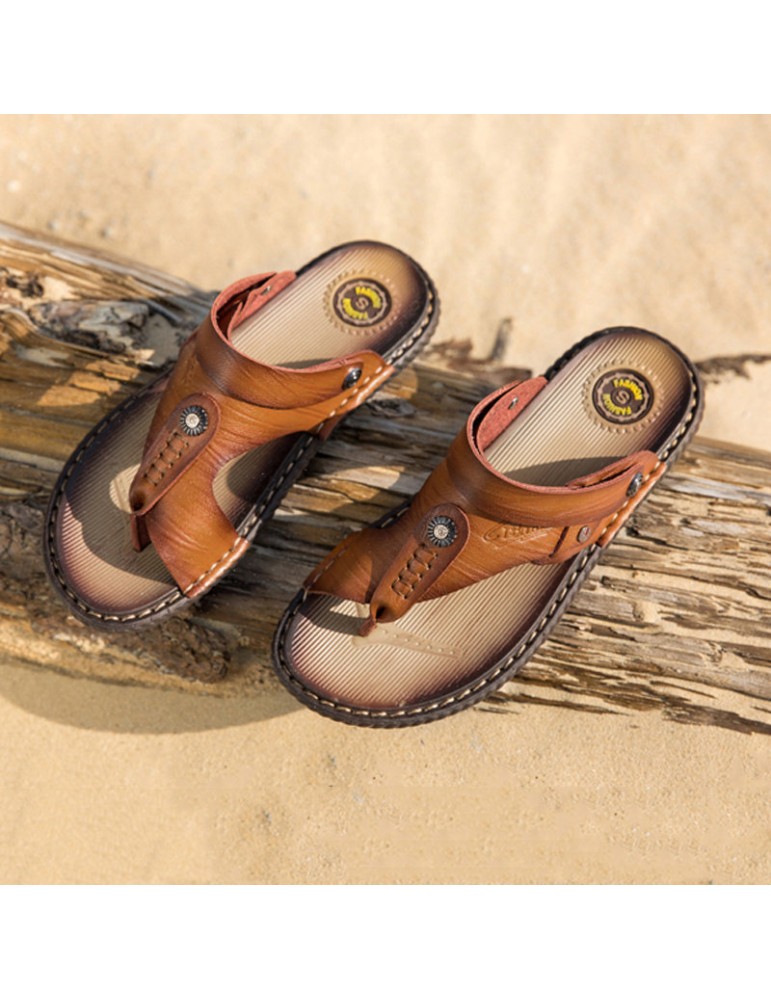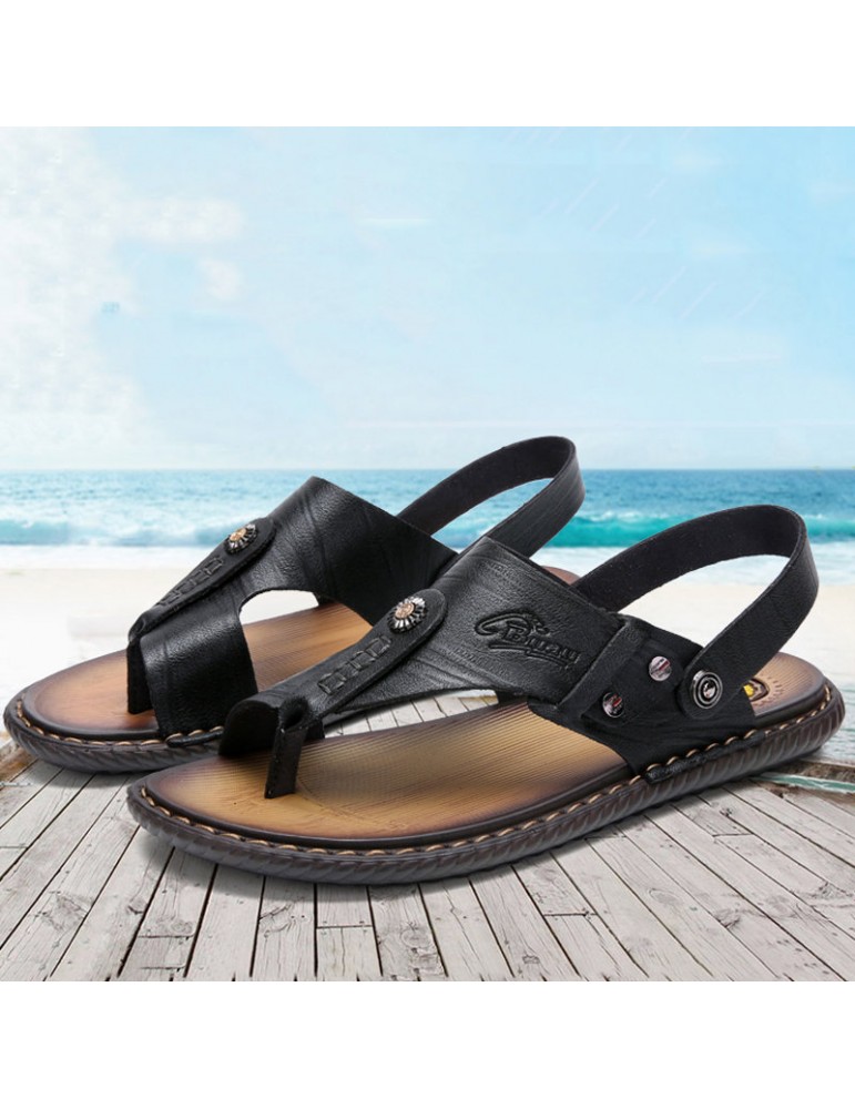 Men Microfiber Leather Clip Toe Non-slip Slippers Casual Beach Sandals