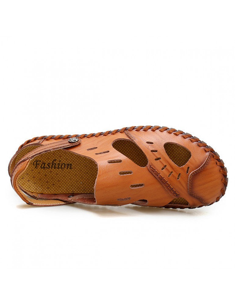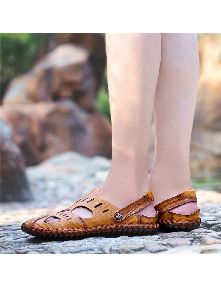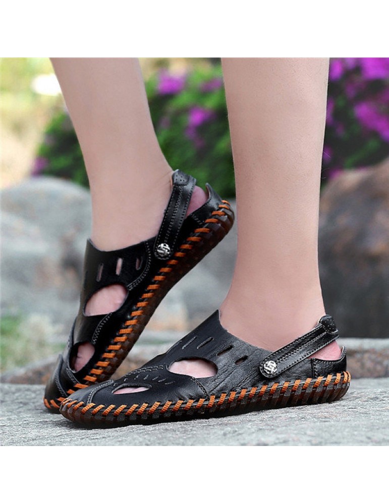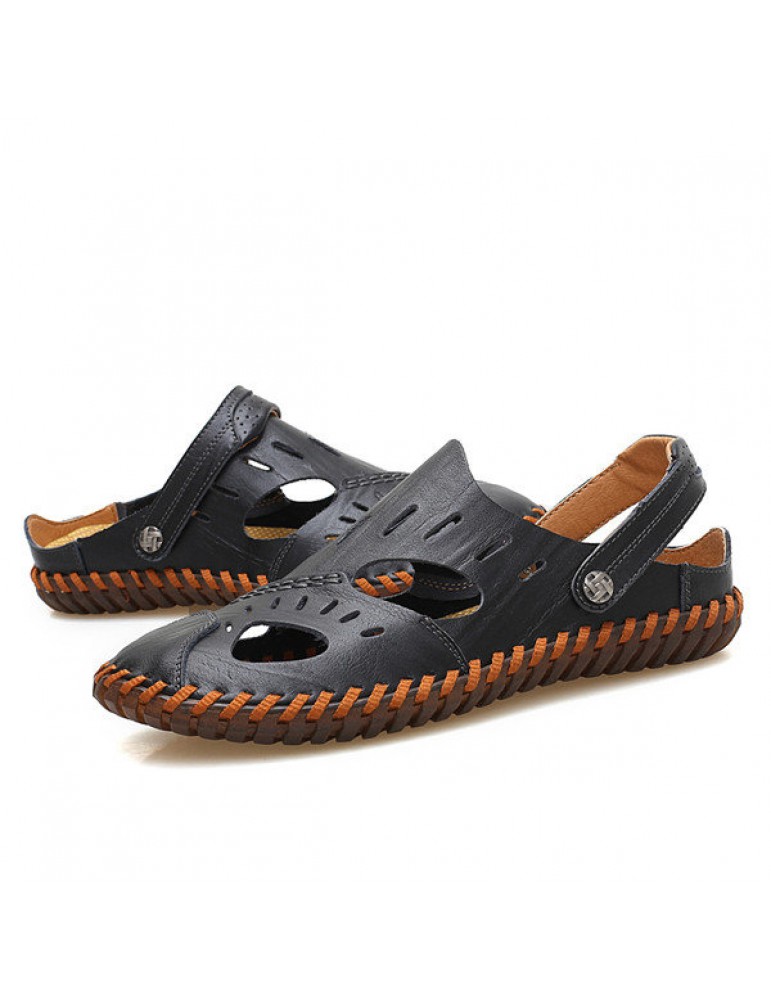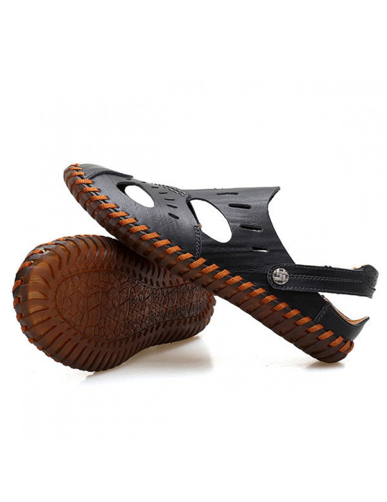 Large Size Men Hand Stitching Water Friendly Lather Sandals