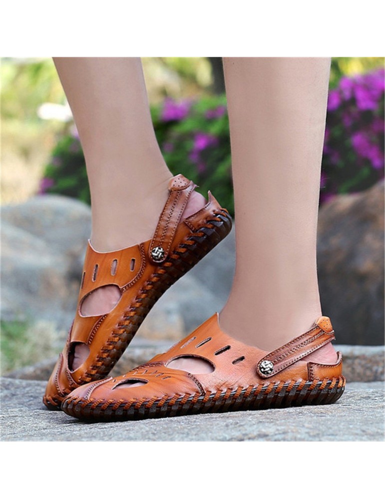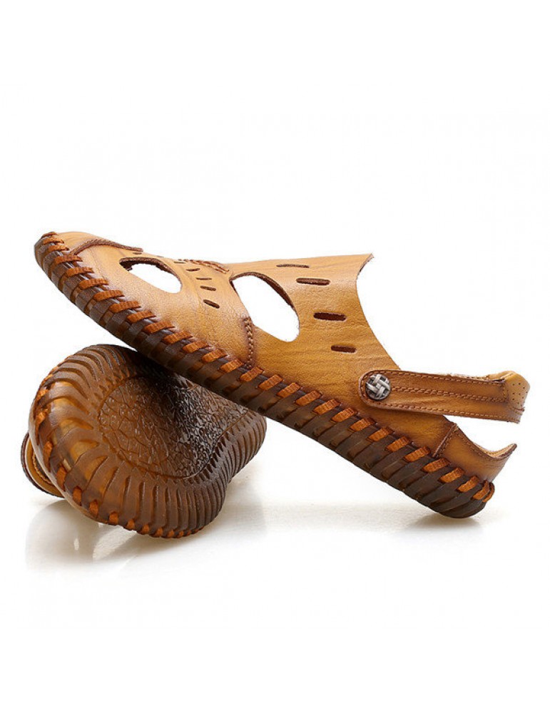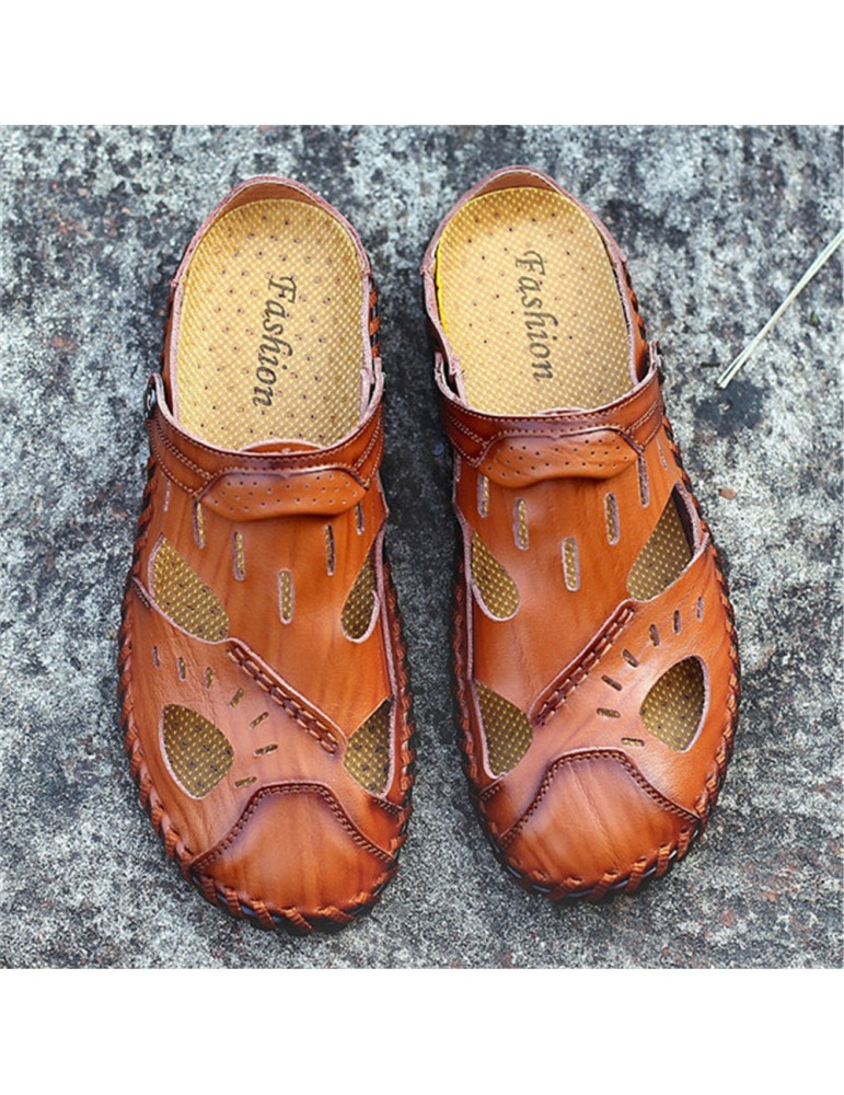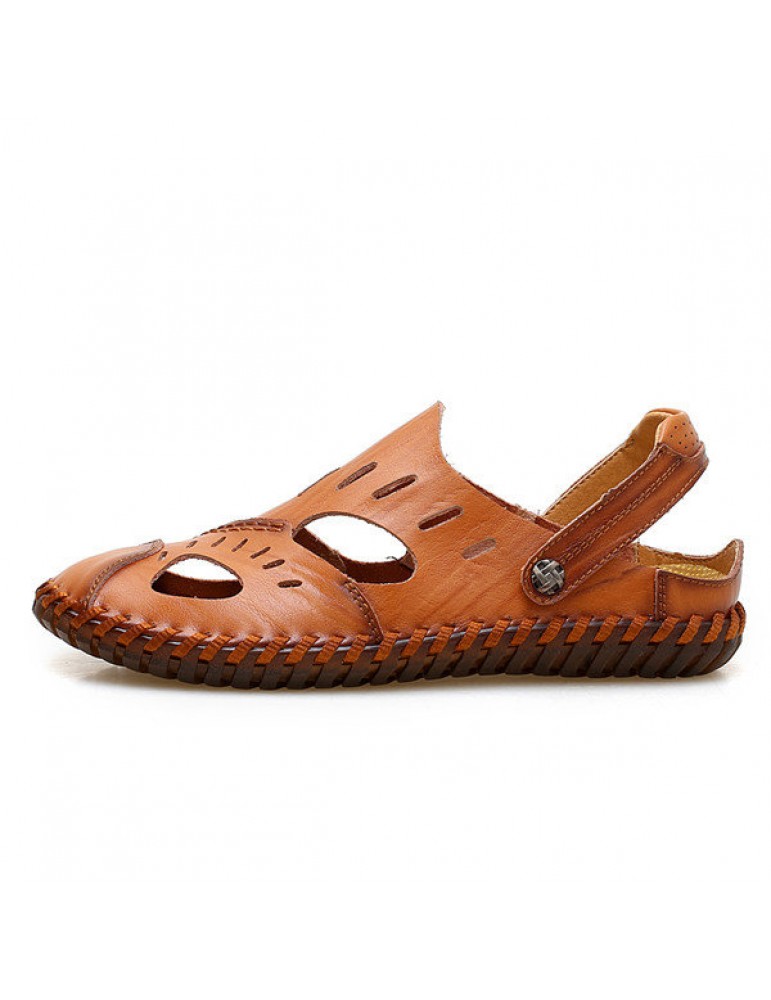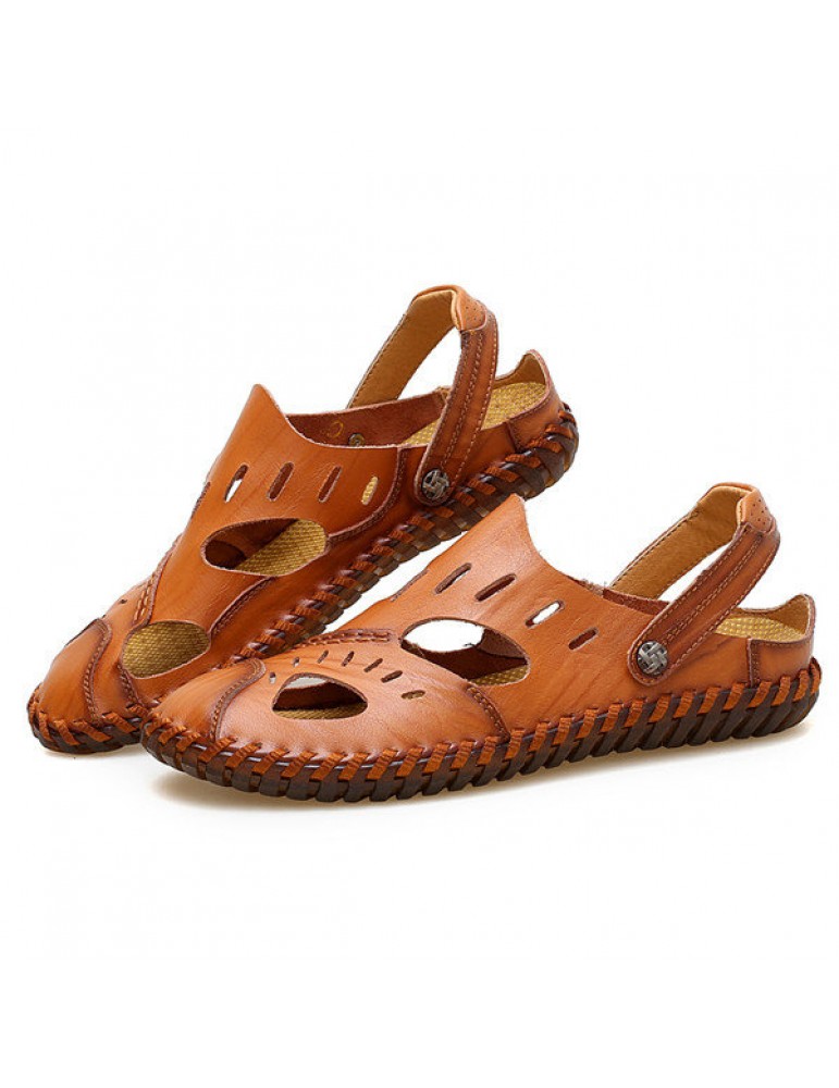 Large Size Men Hand Stitching Water Friendly Lather Sandals