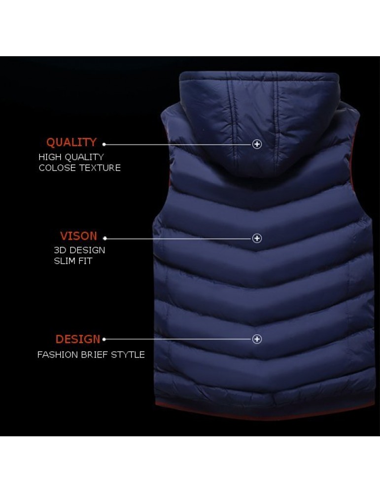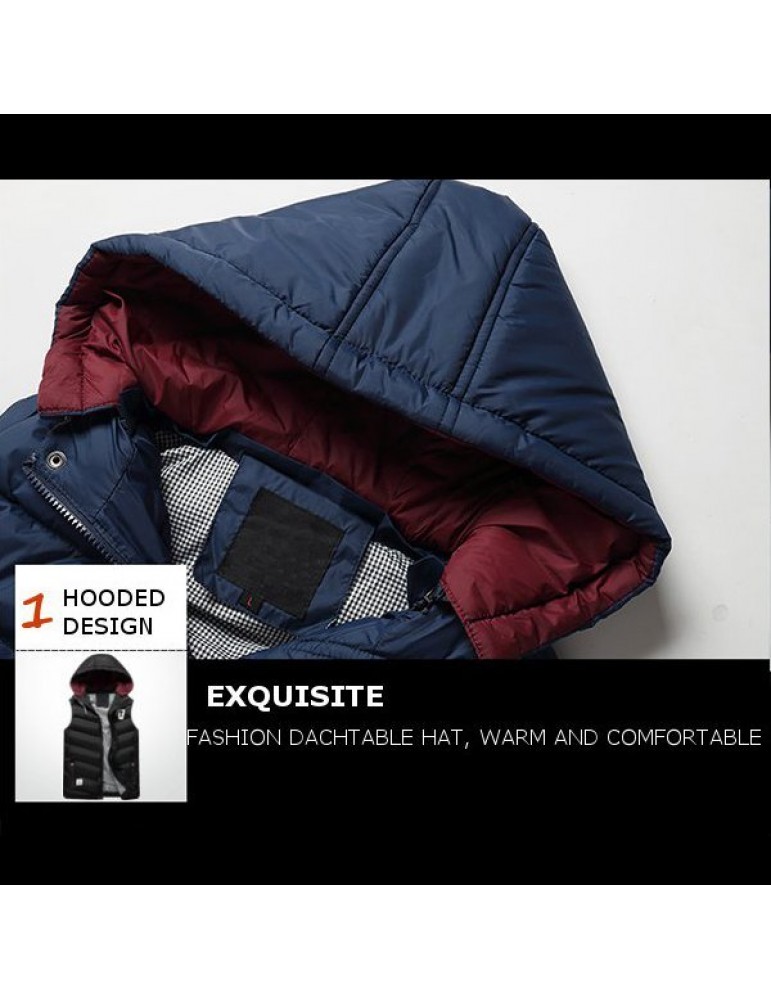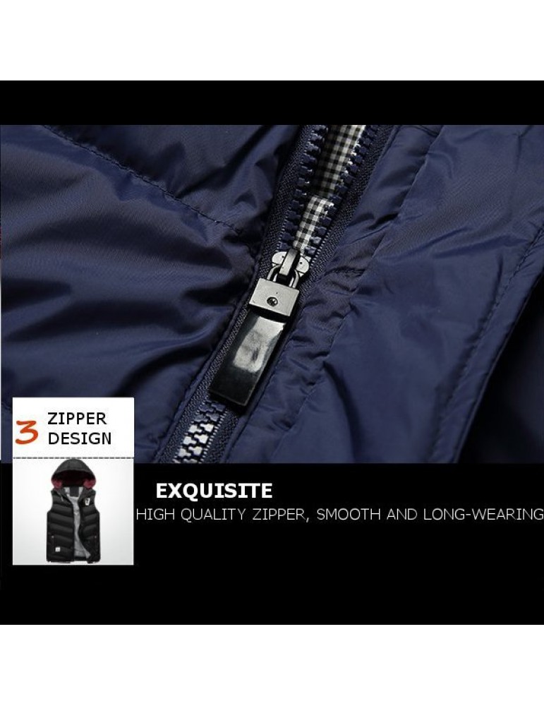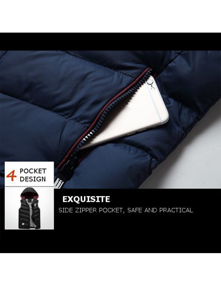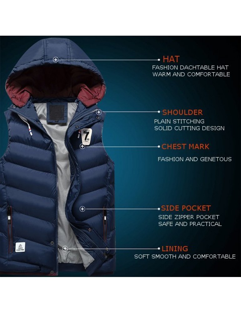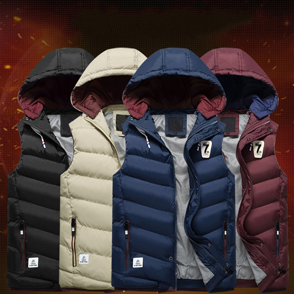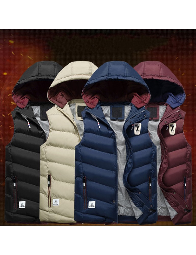 Thick Detachable Hooded Loose Warm Zipper Pockets Vest for Men