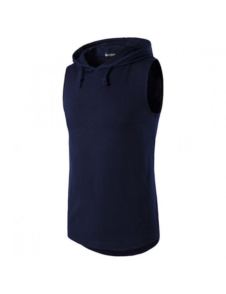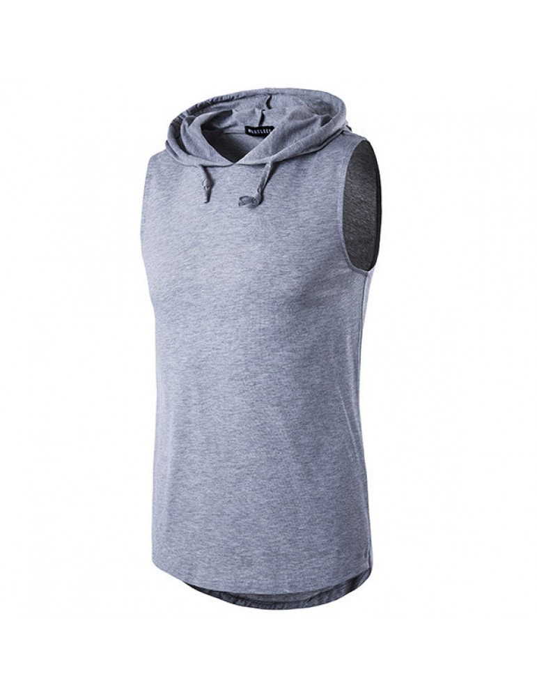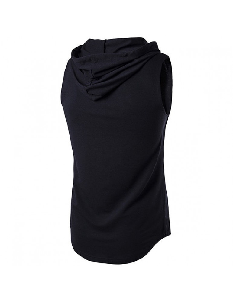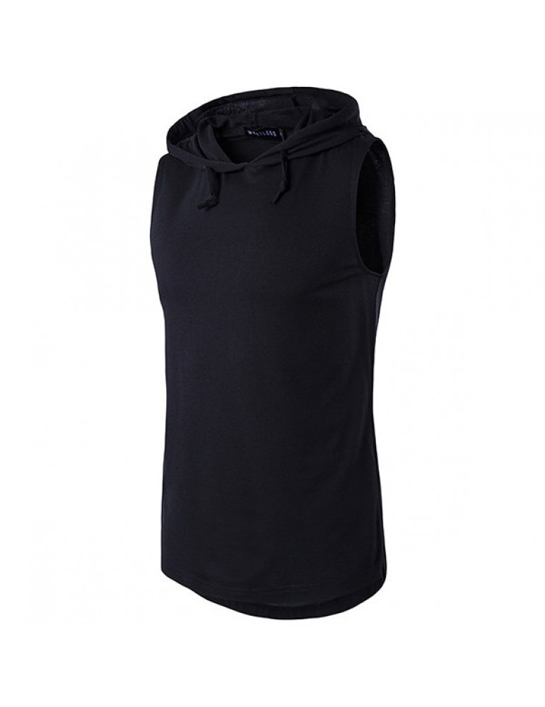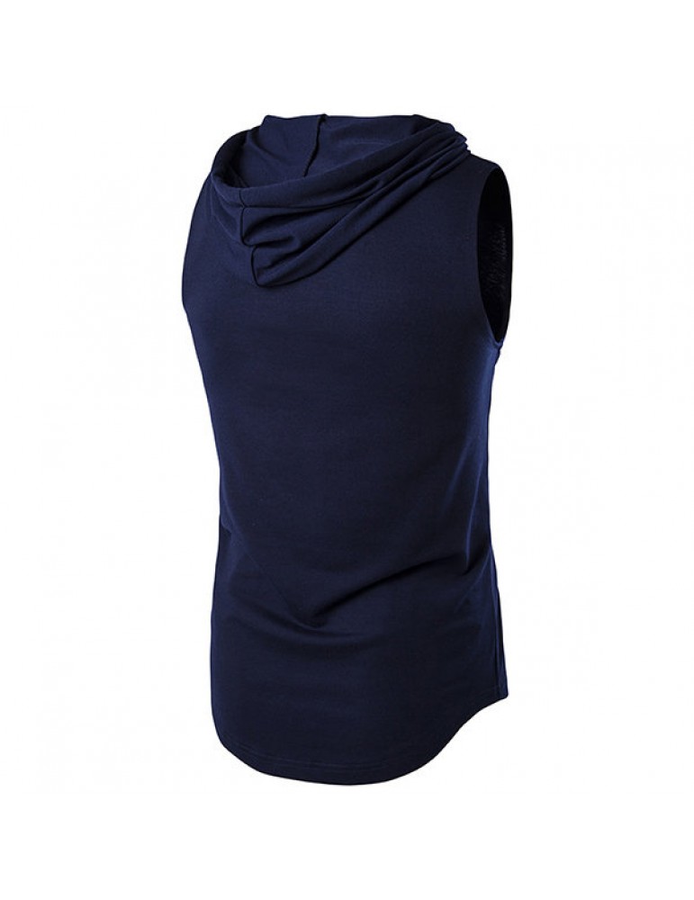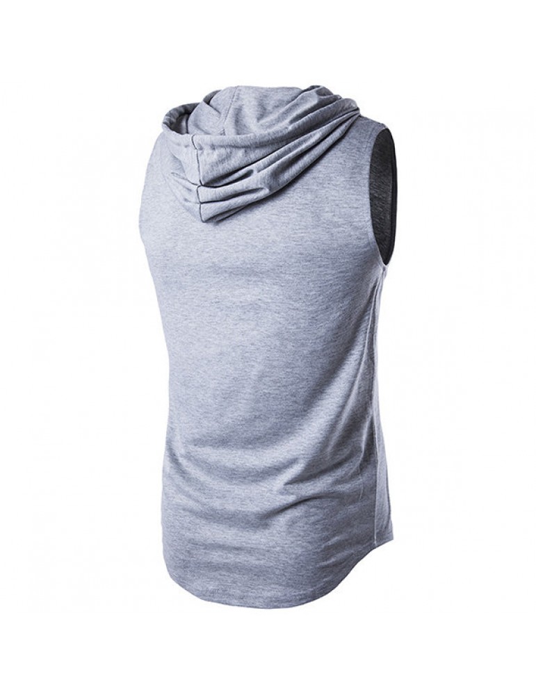 Mens Summer Solid Color Casual Tank Tops Stylish Sleeveless Hooded Vest