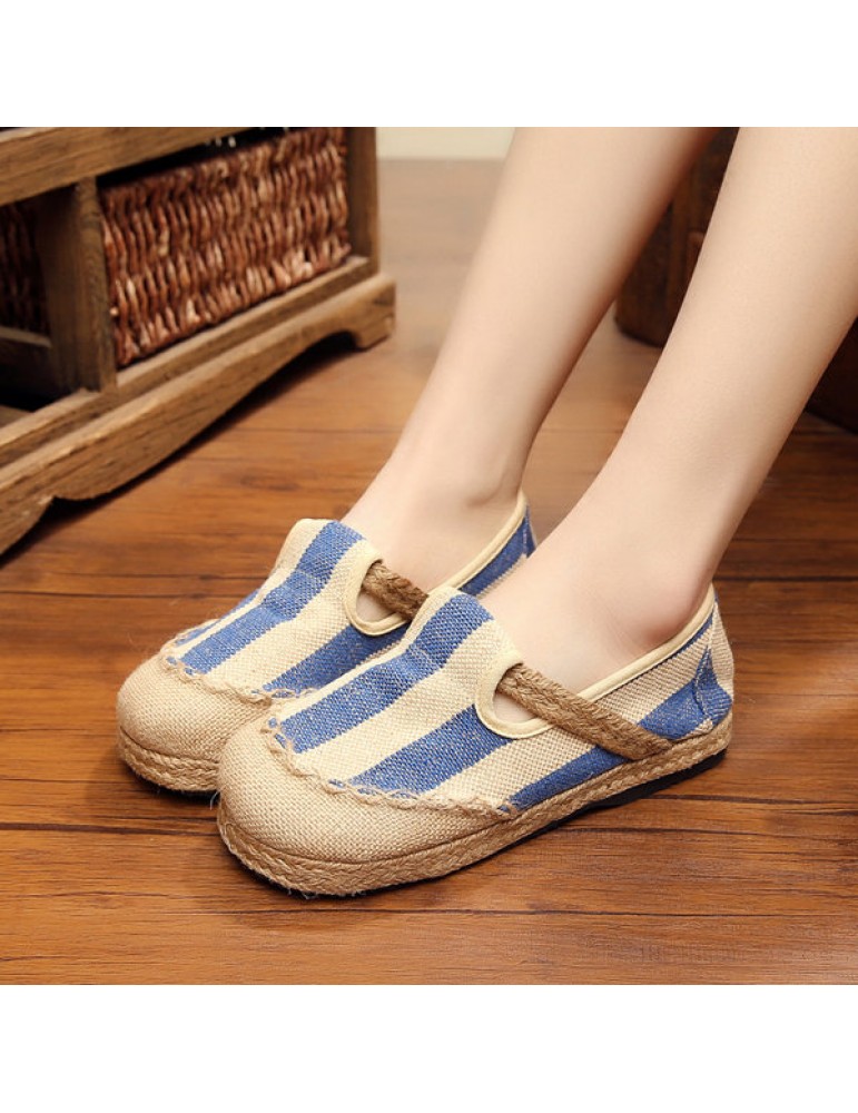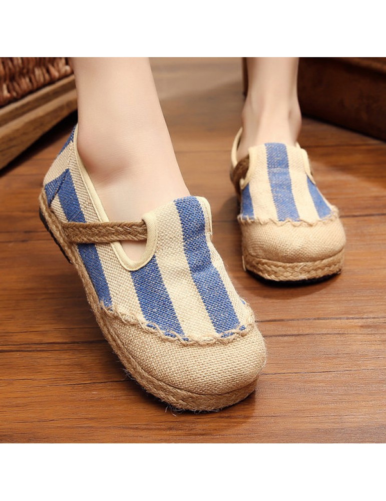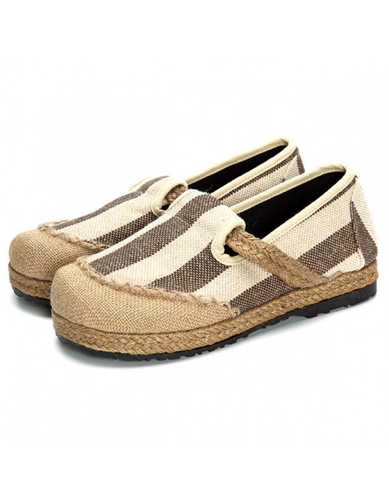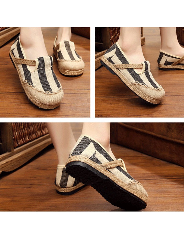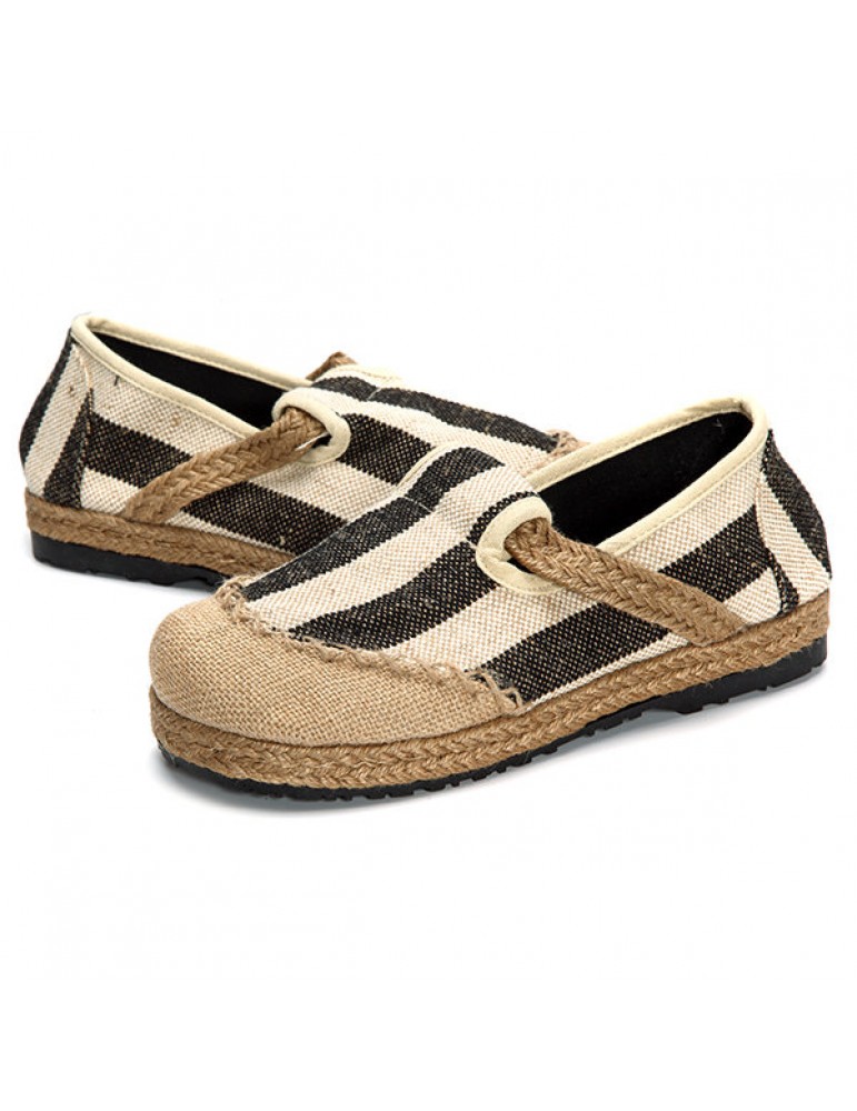 Stripe Pattern Flax Breathable Retro Flat Slip On Women Shoes