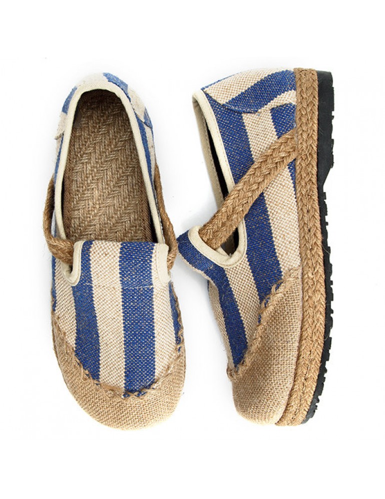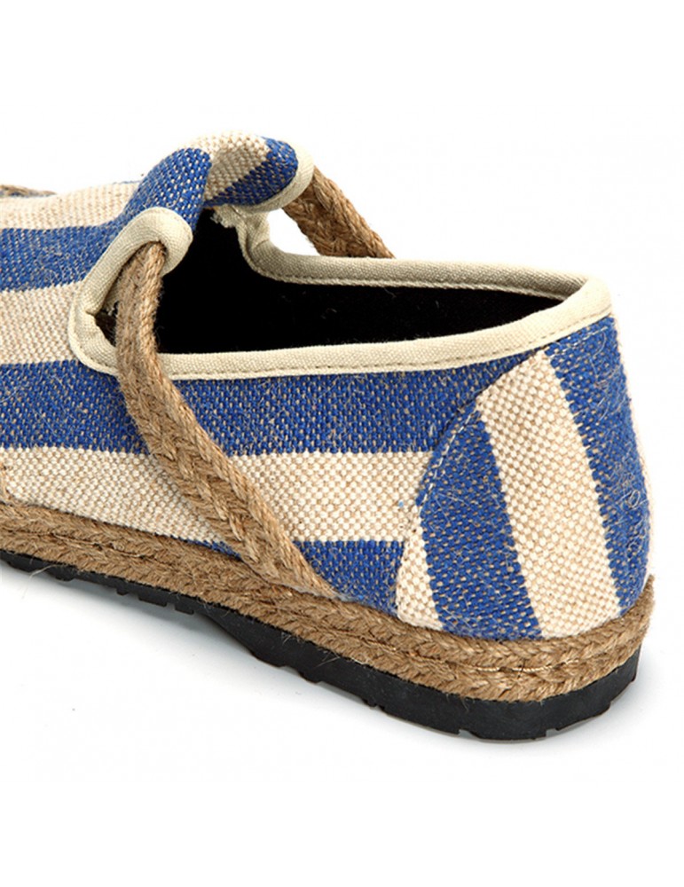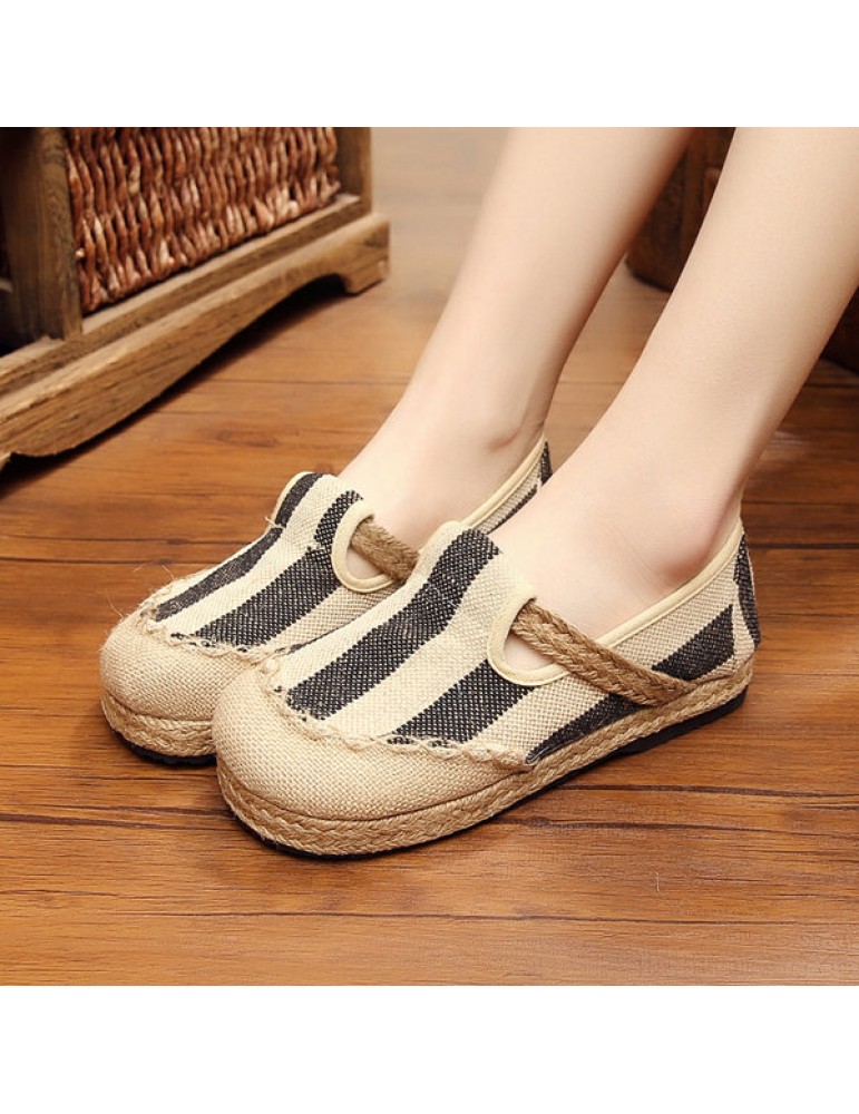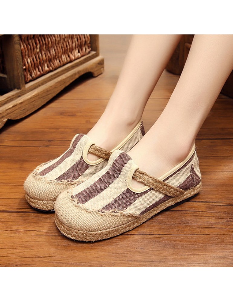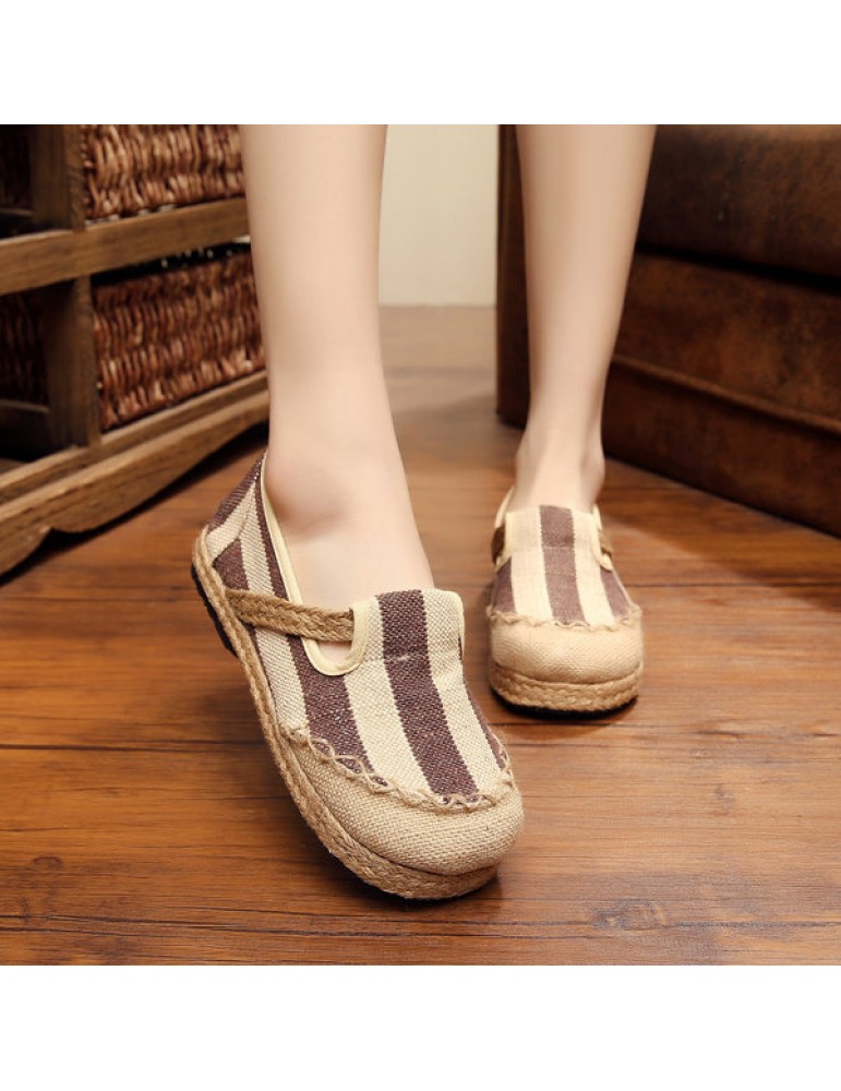 Stripe Pattern Flax Breathable Retro Flat Slip On Women Shoes